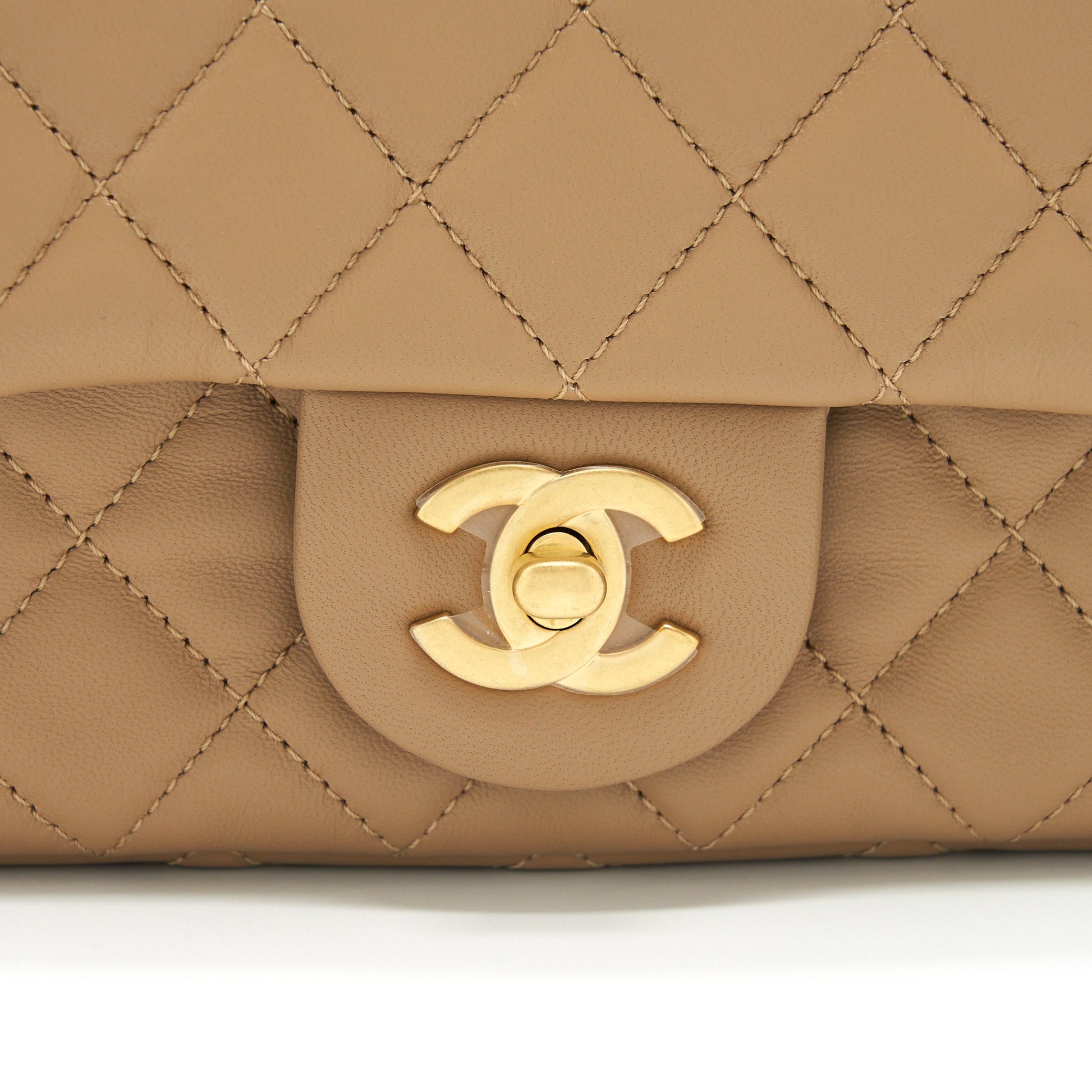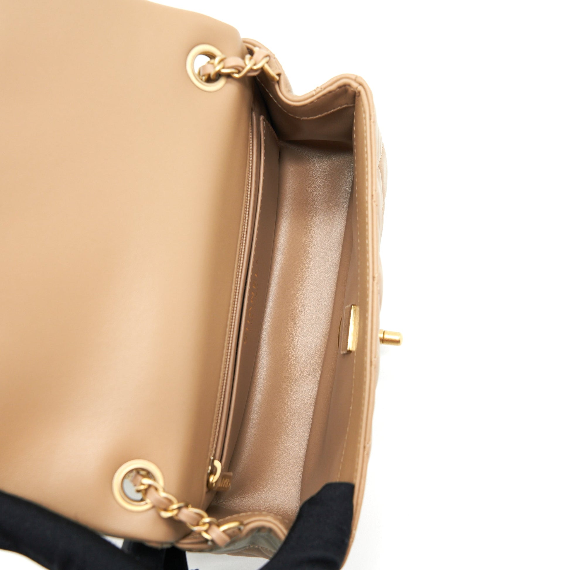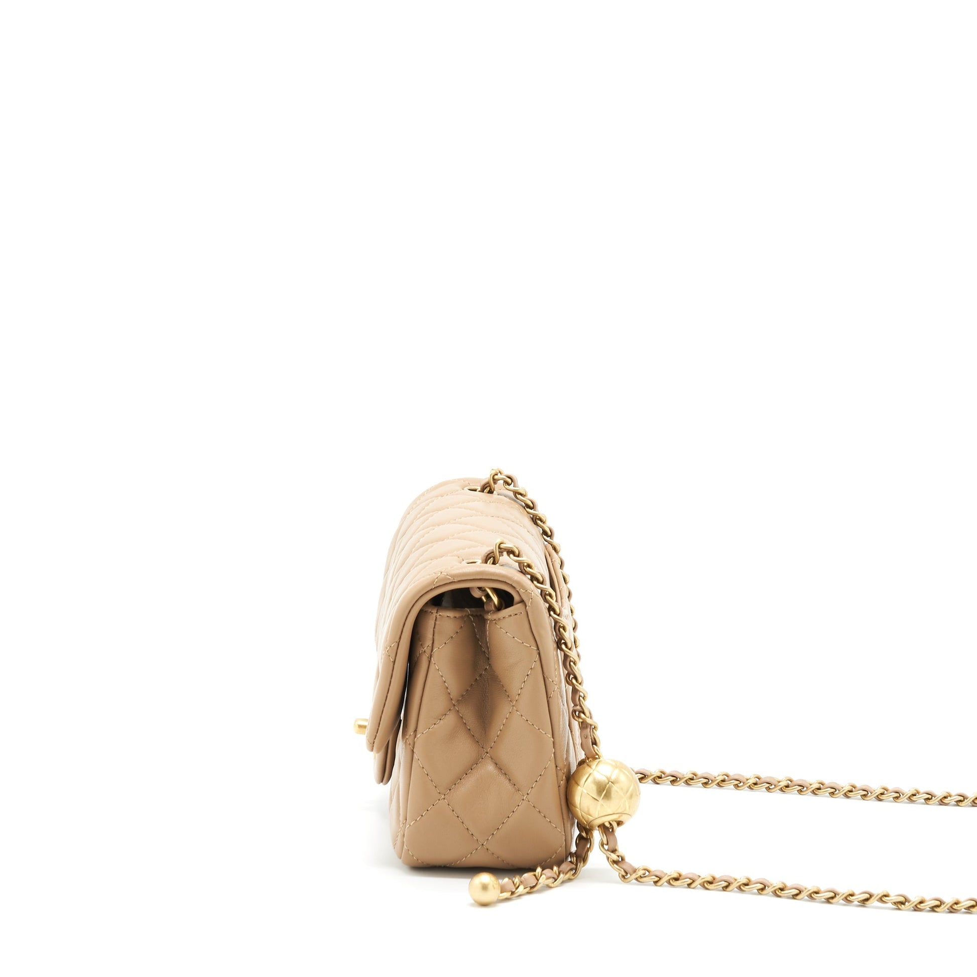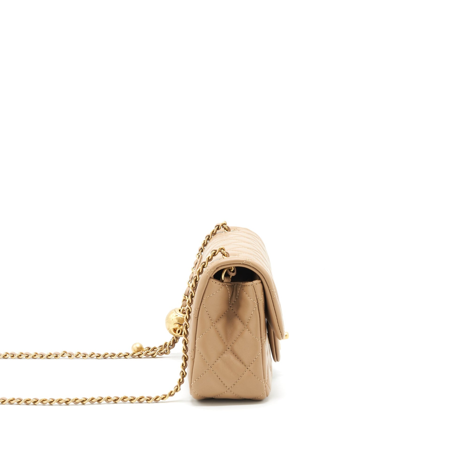 Chanel 22B Pearl Crush Mini Rectangular Flap Bag Lambskin Dark Beige GHW (Microchip)