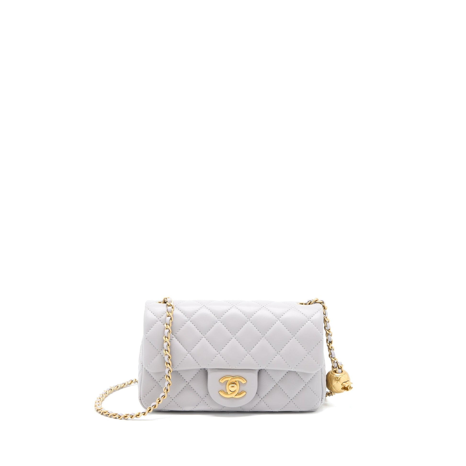 Chanel 22B Pearl Crush Mini Rectangular Flap Bag Lambskin Light Grey GHW(Microchip)