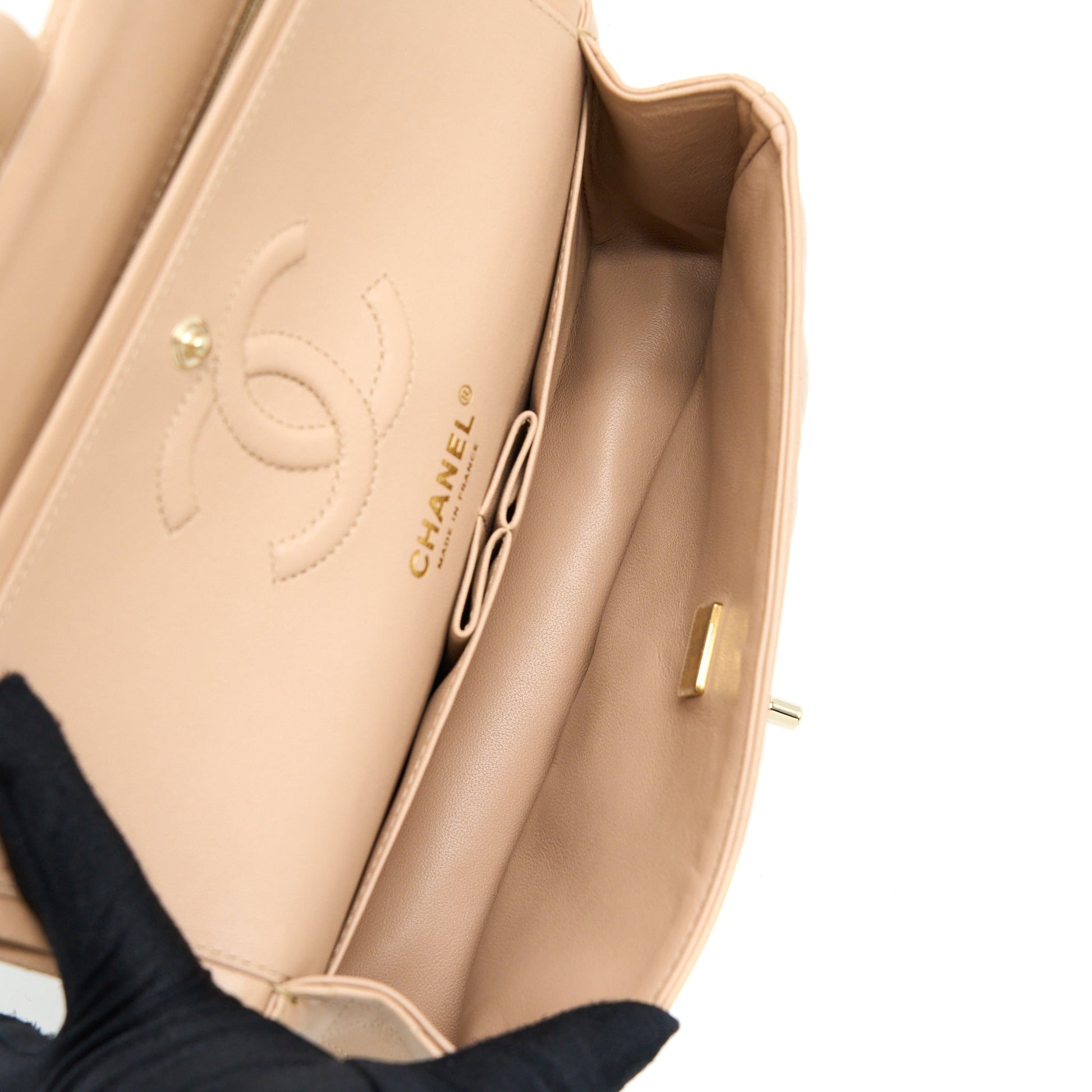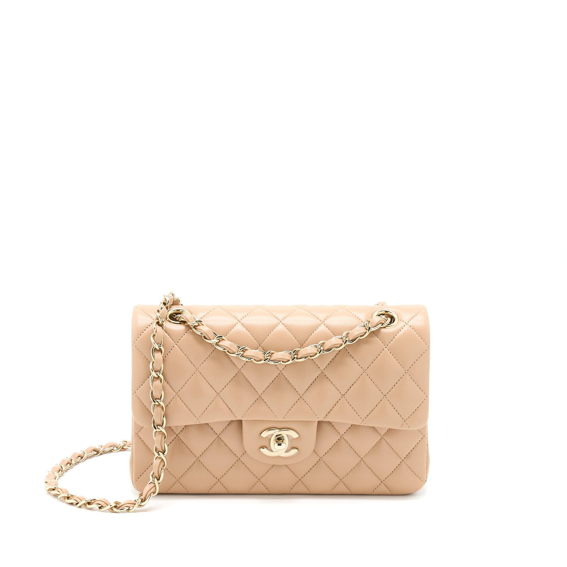 Chanel 22B Small Classic Flap Bag Lambskin Beige LGHW