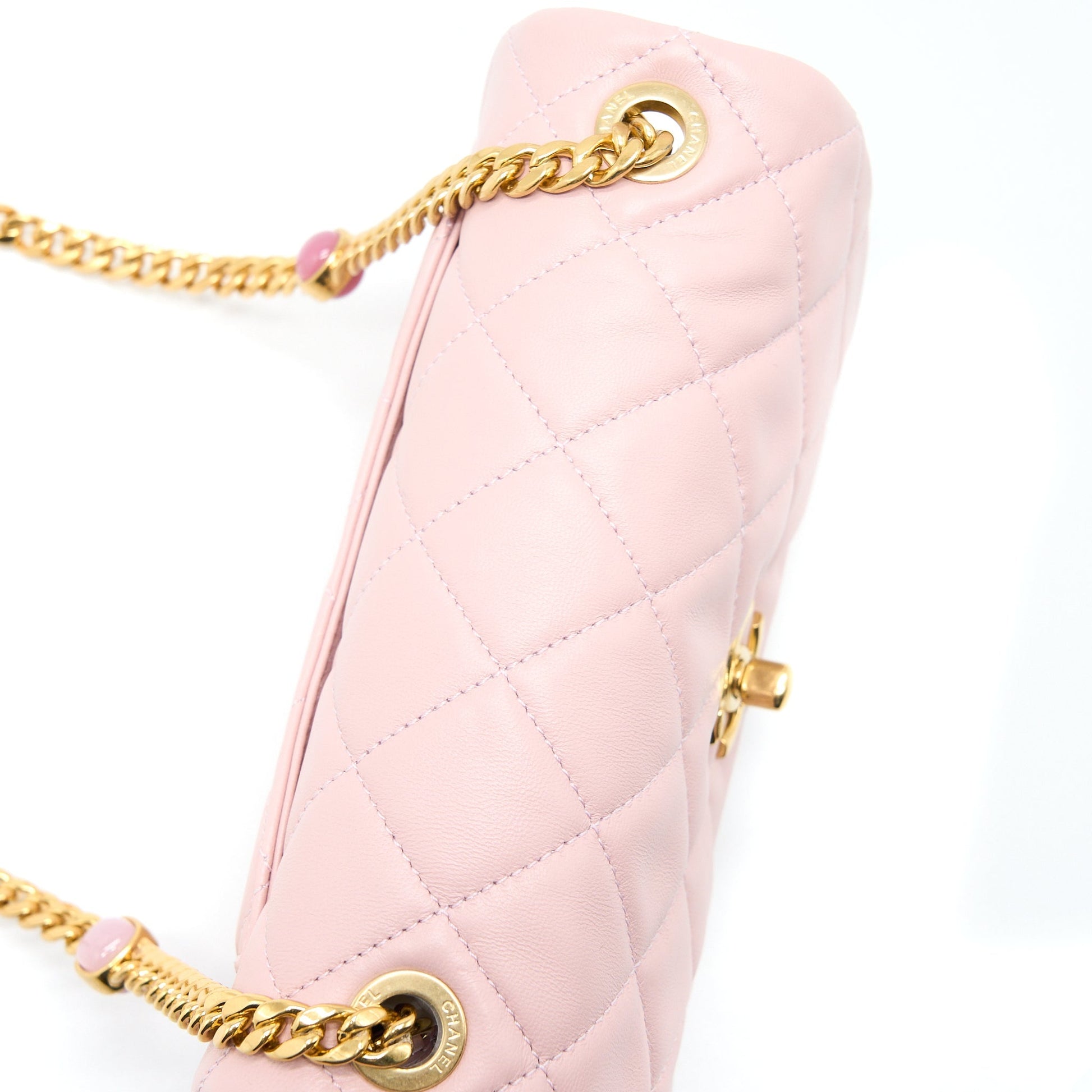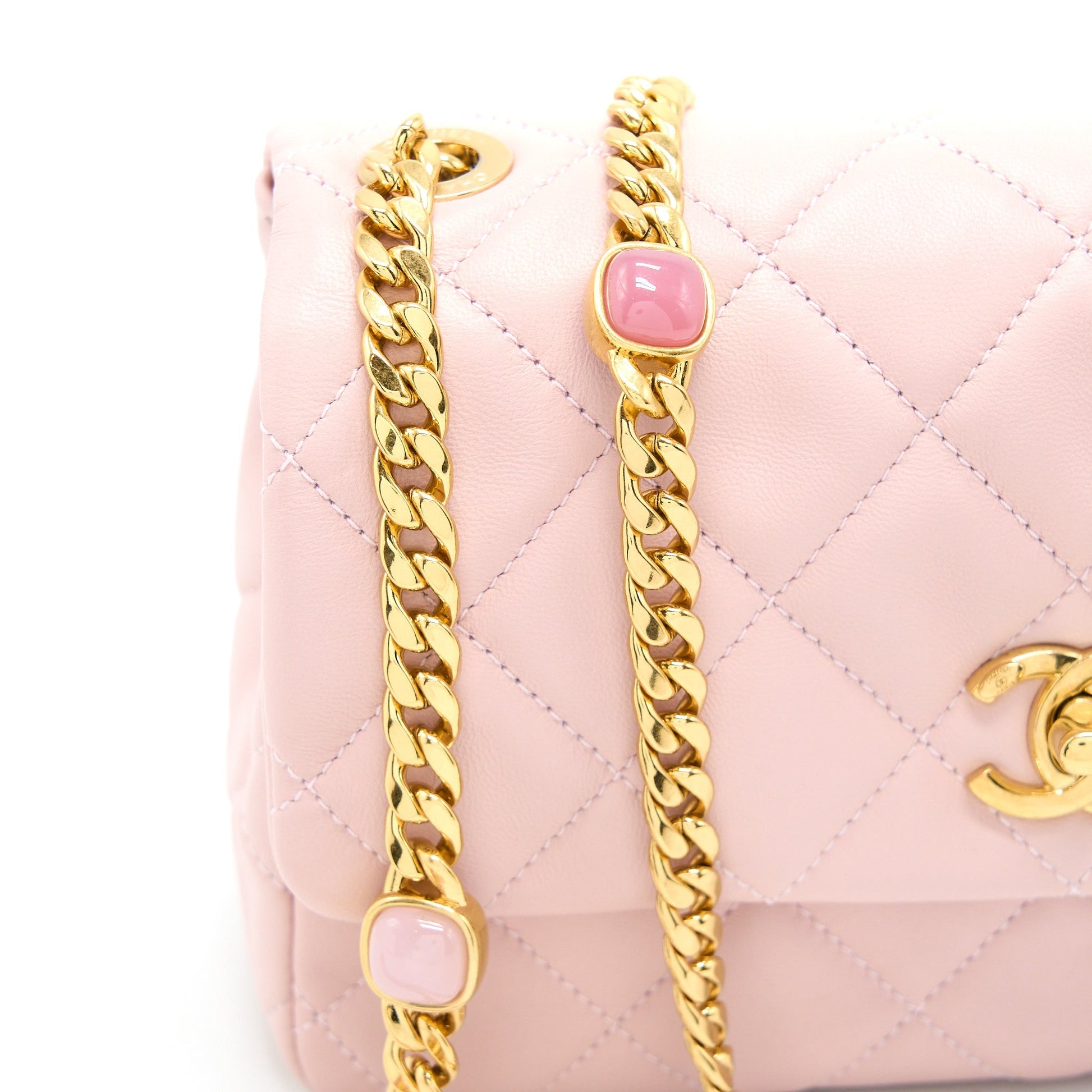 Chanel 22B Small Flap Bag With Gem Chain Lambskin Pink GHW (Microchip)
