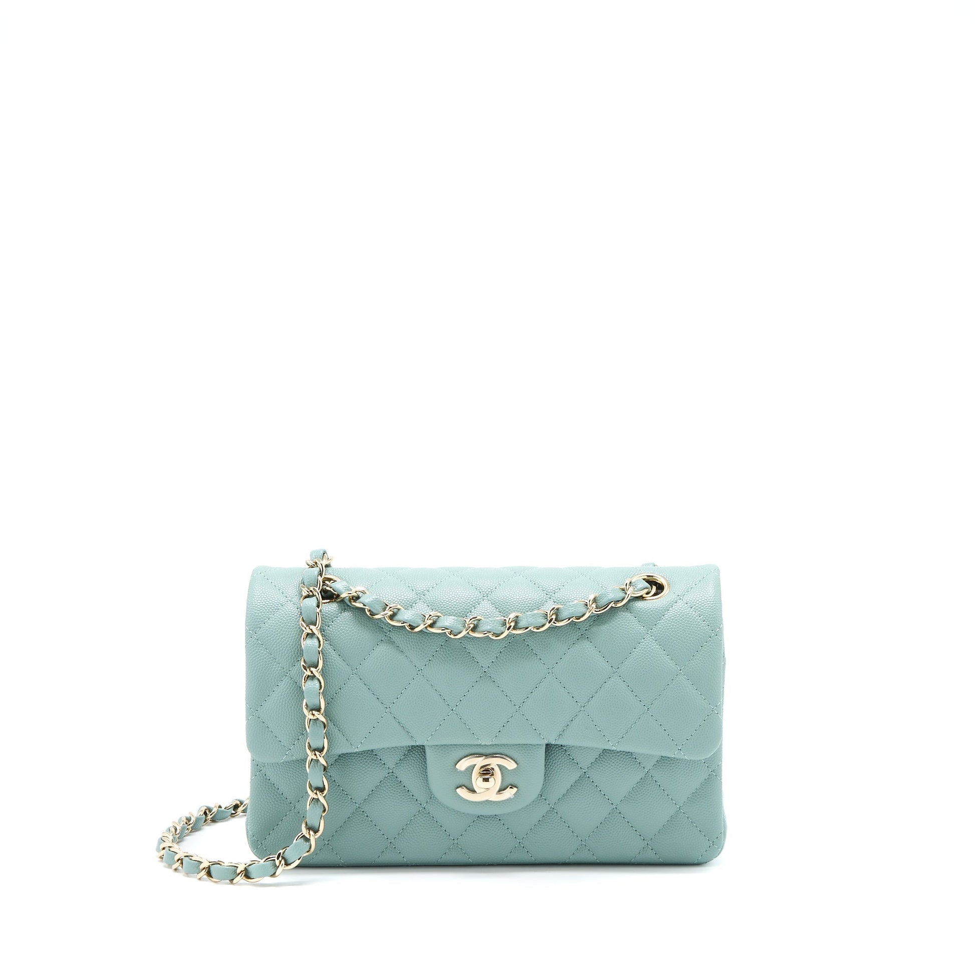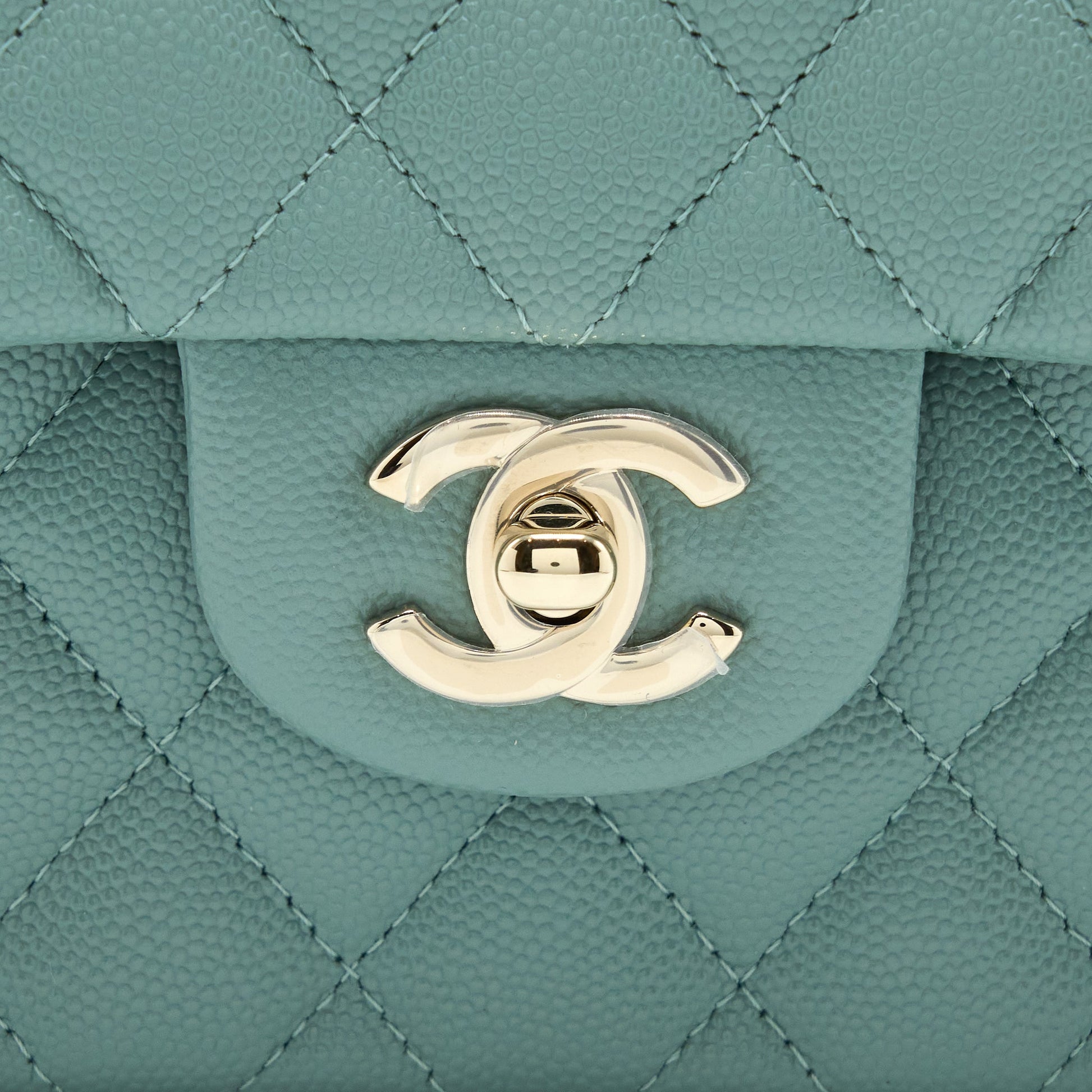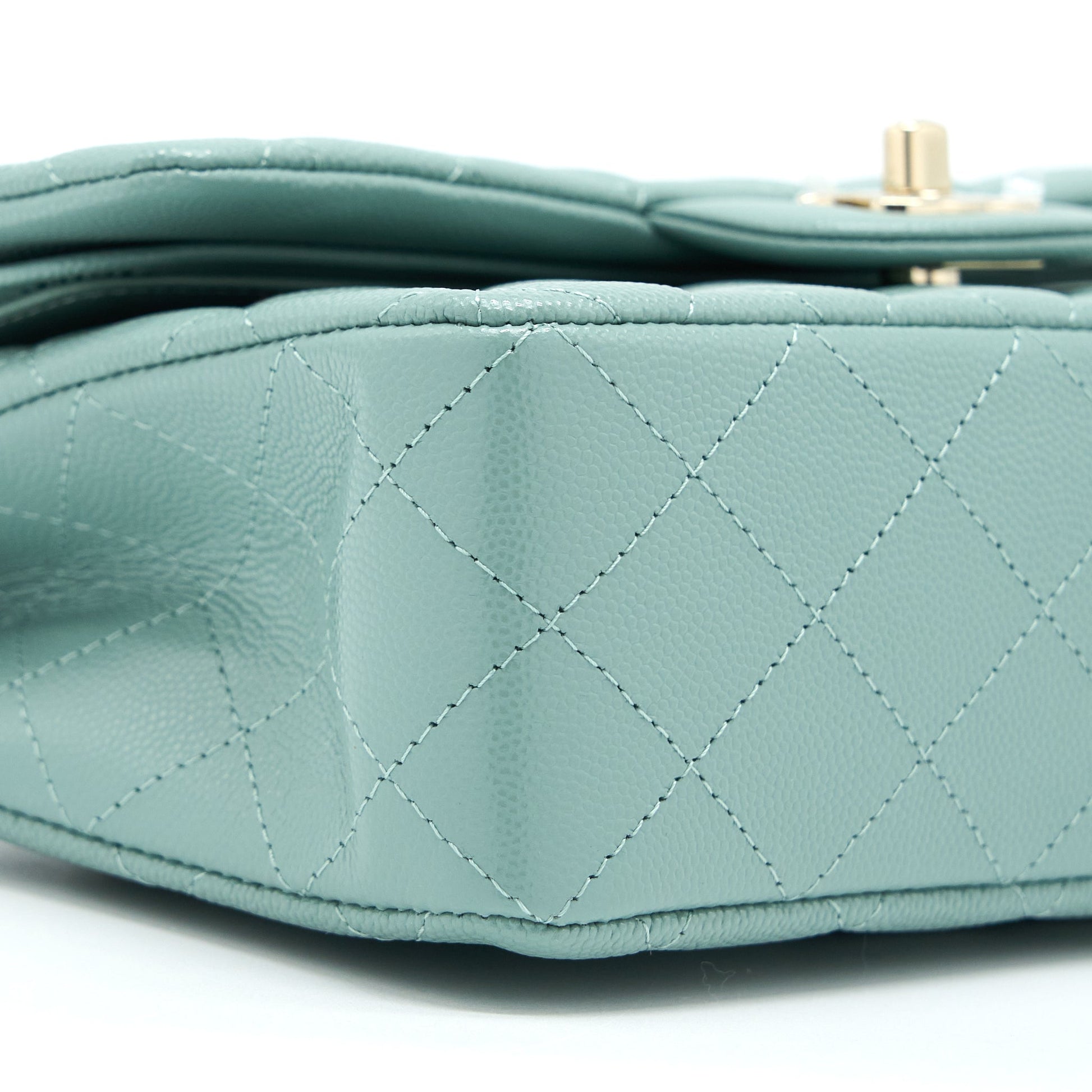 Chanel 22C Small Classic Double Flap Bag Caviar NG124 Greyish Green LGHW (Microchip)