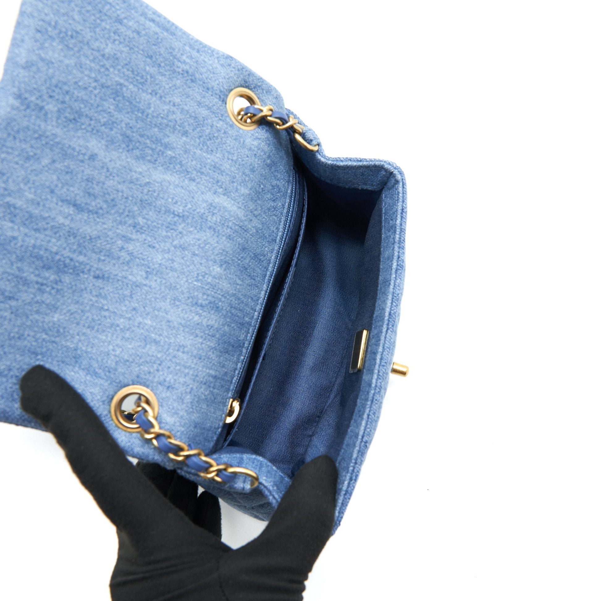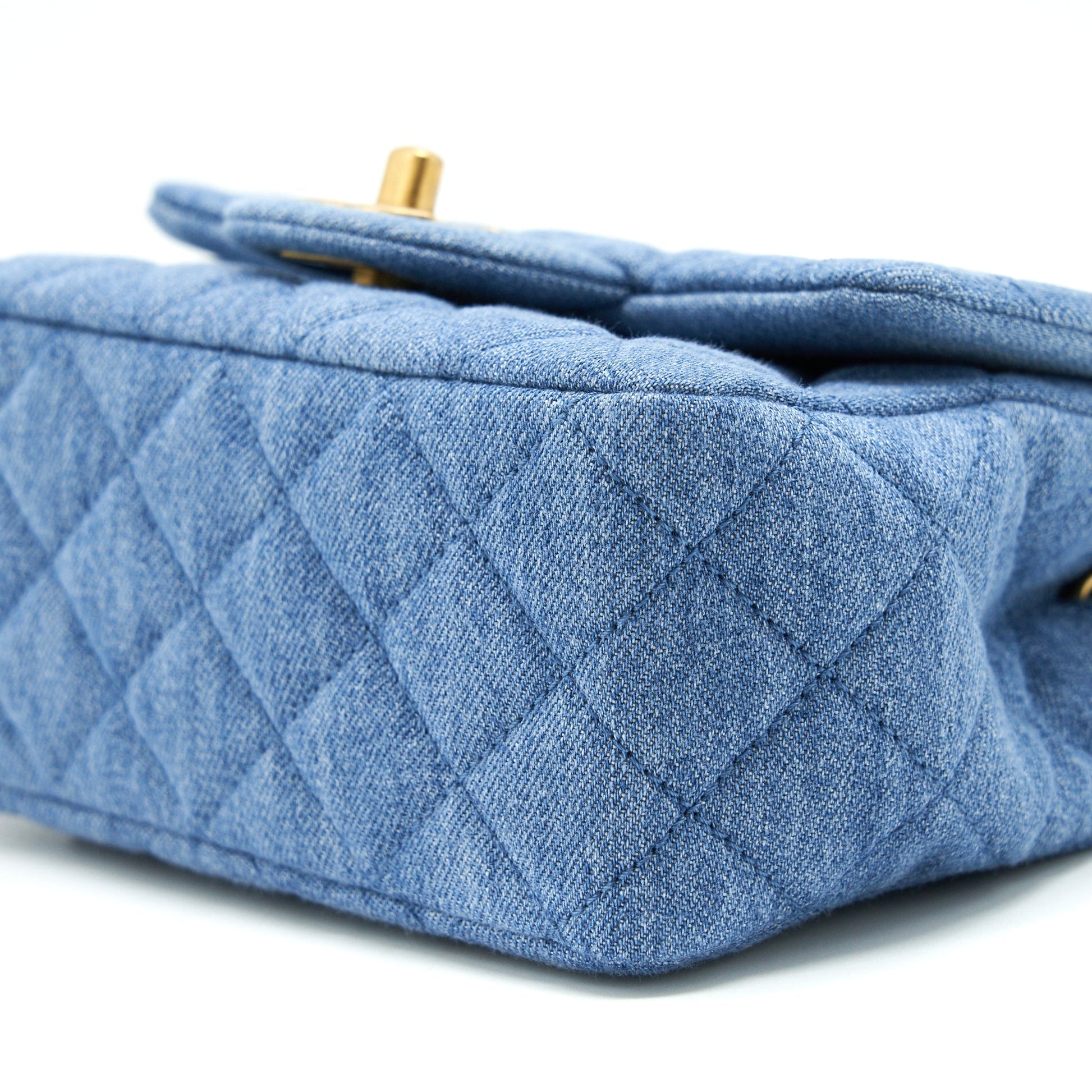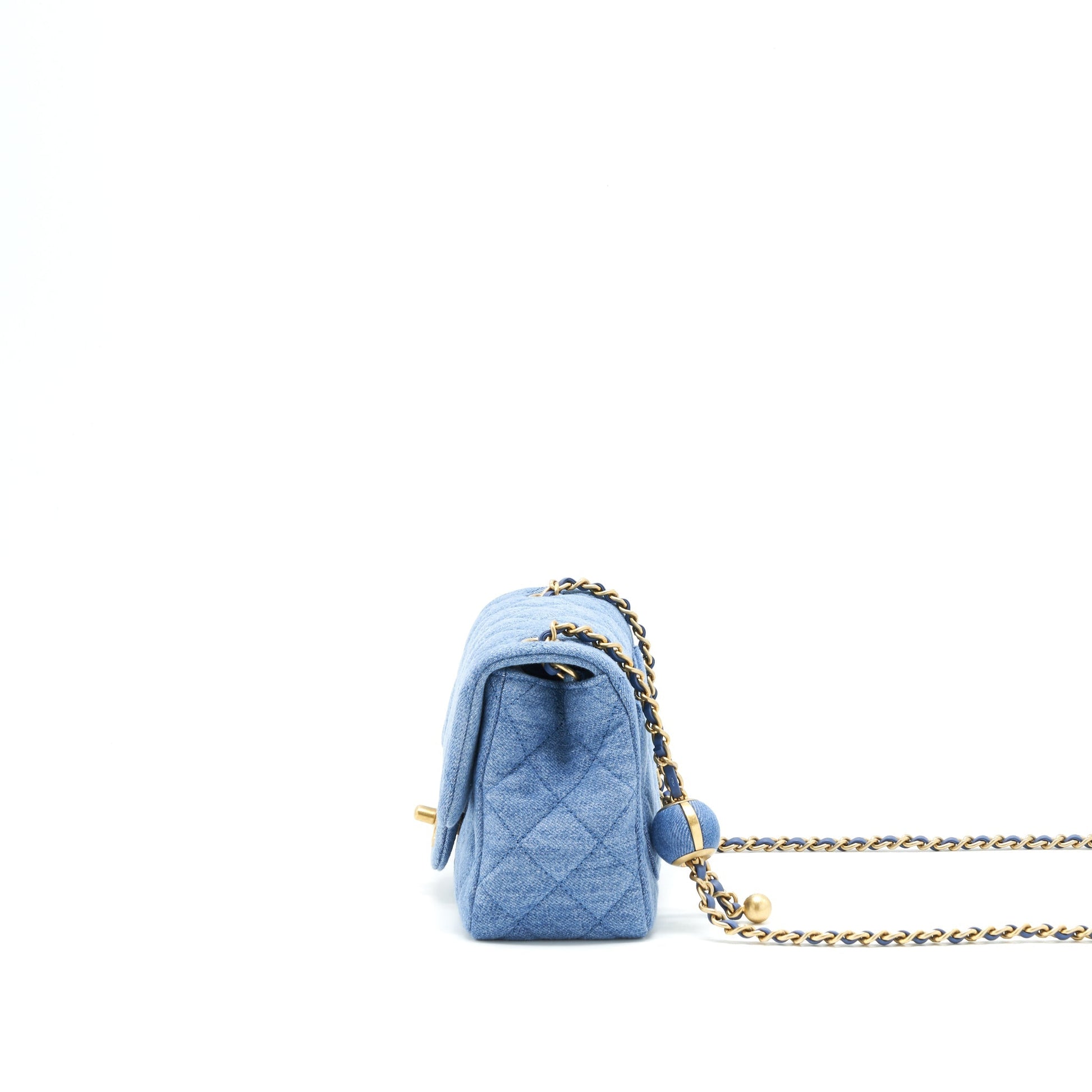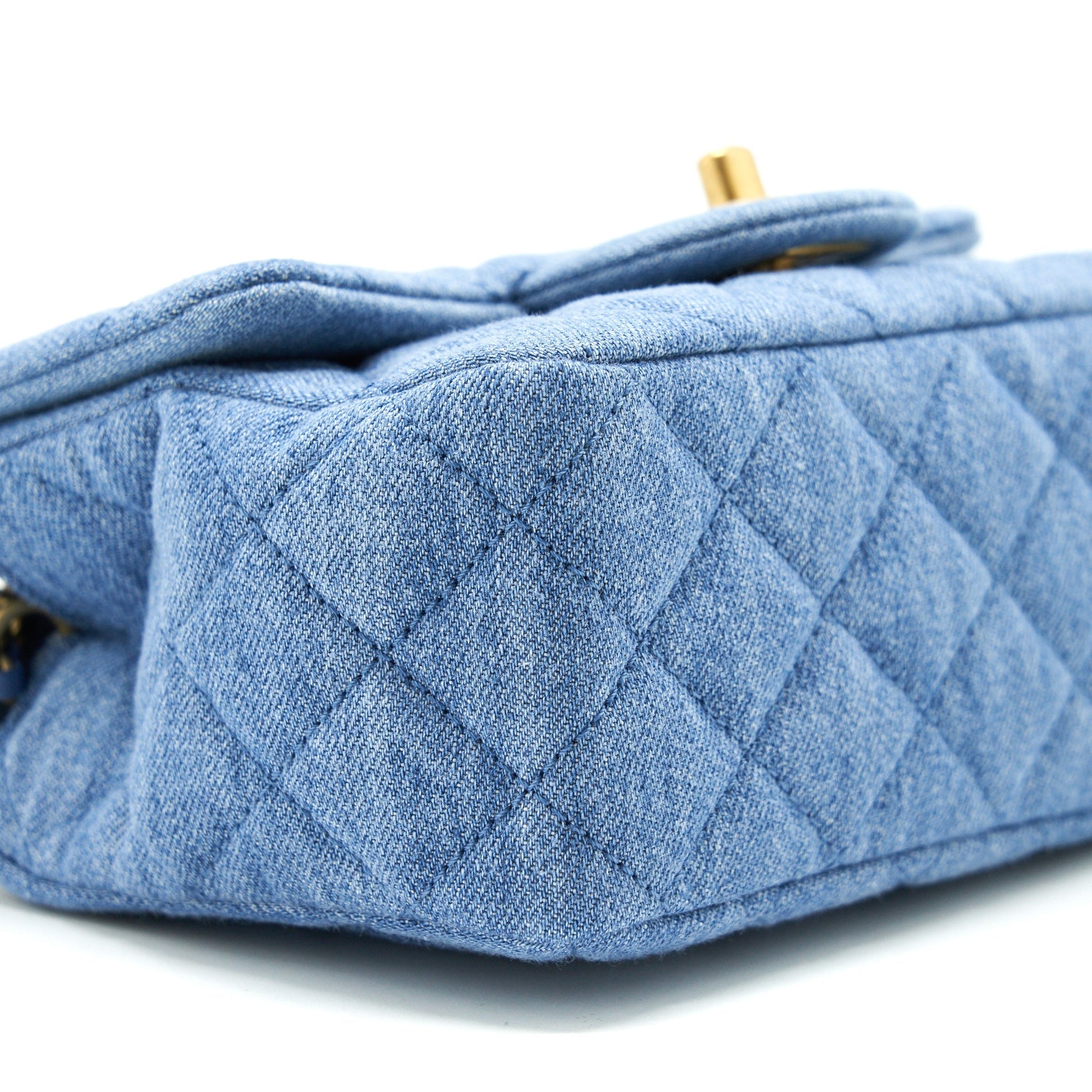Chanel 22C Denim Pearl Crush Mini Square Flap Bag (Microchip)