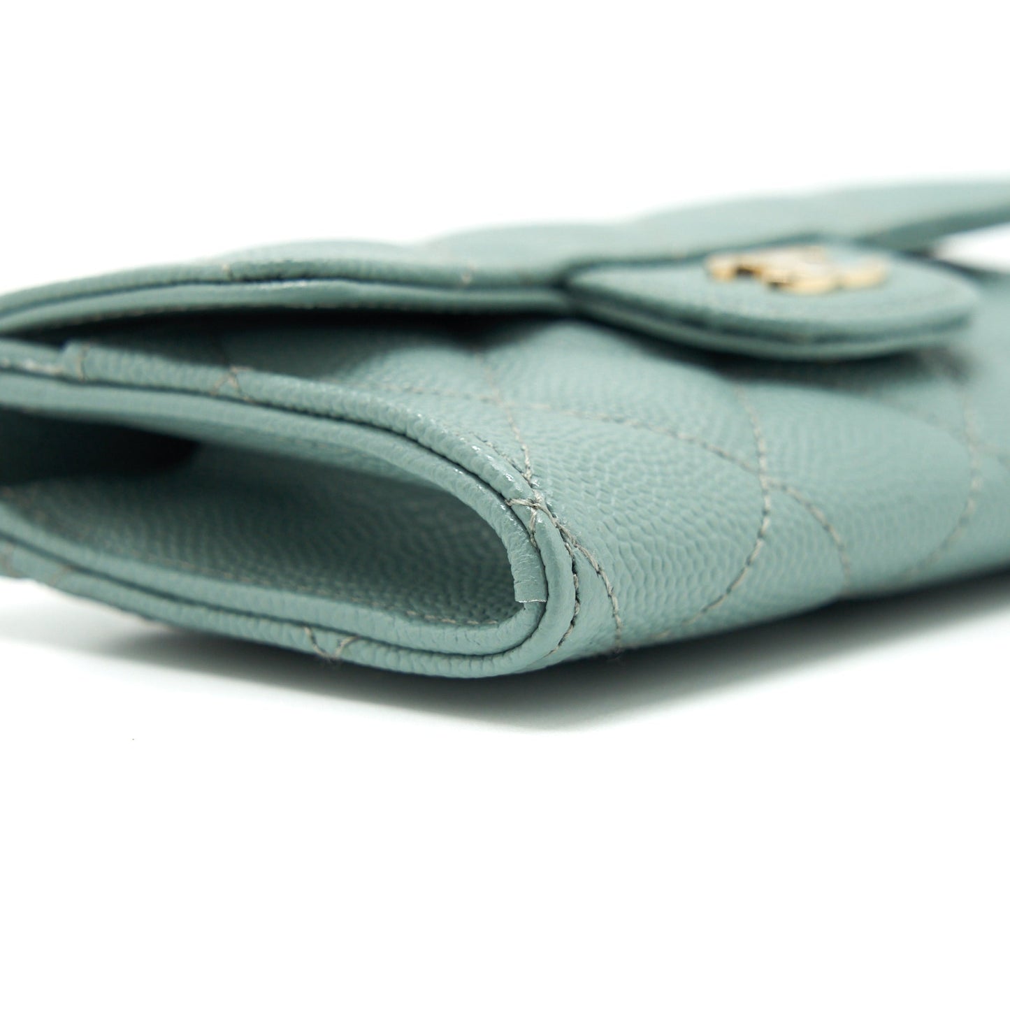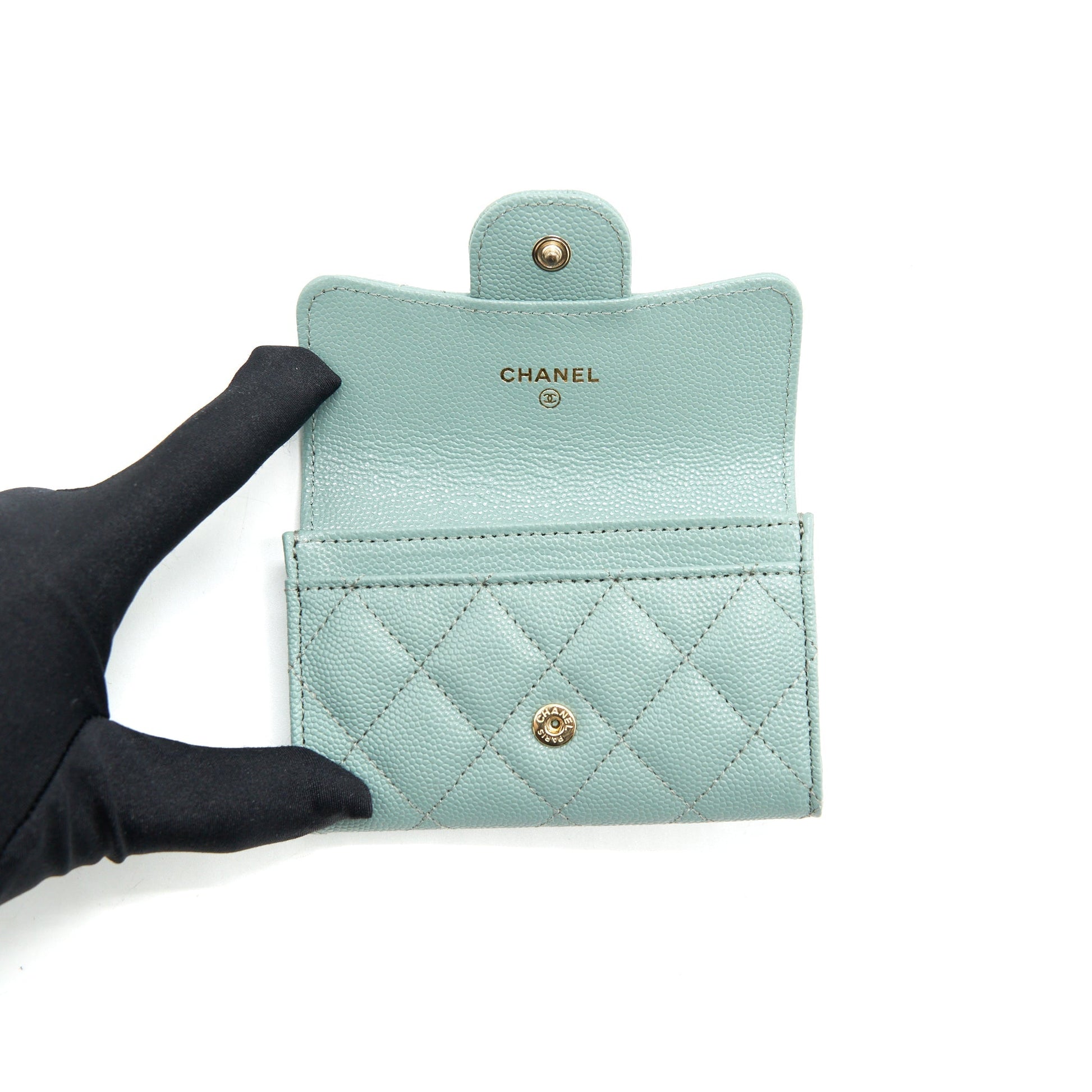 Chanel 22C Flap Card Holder Caviar NG124 Green LGHW