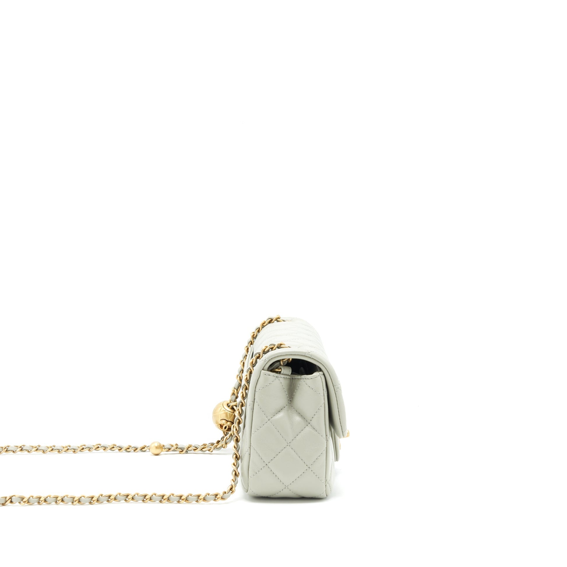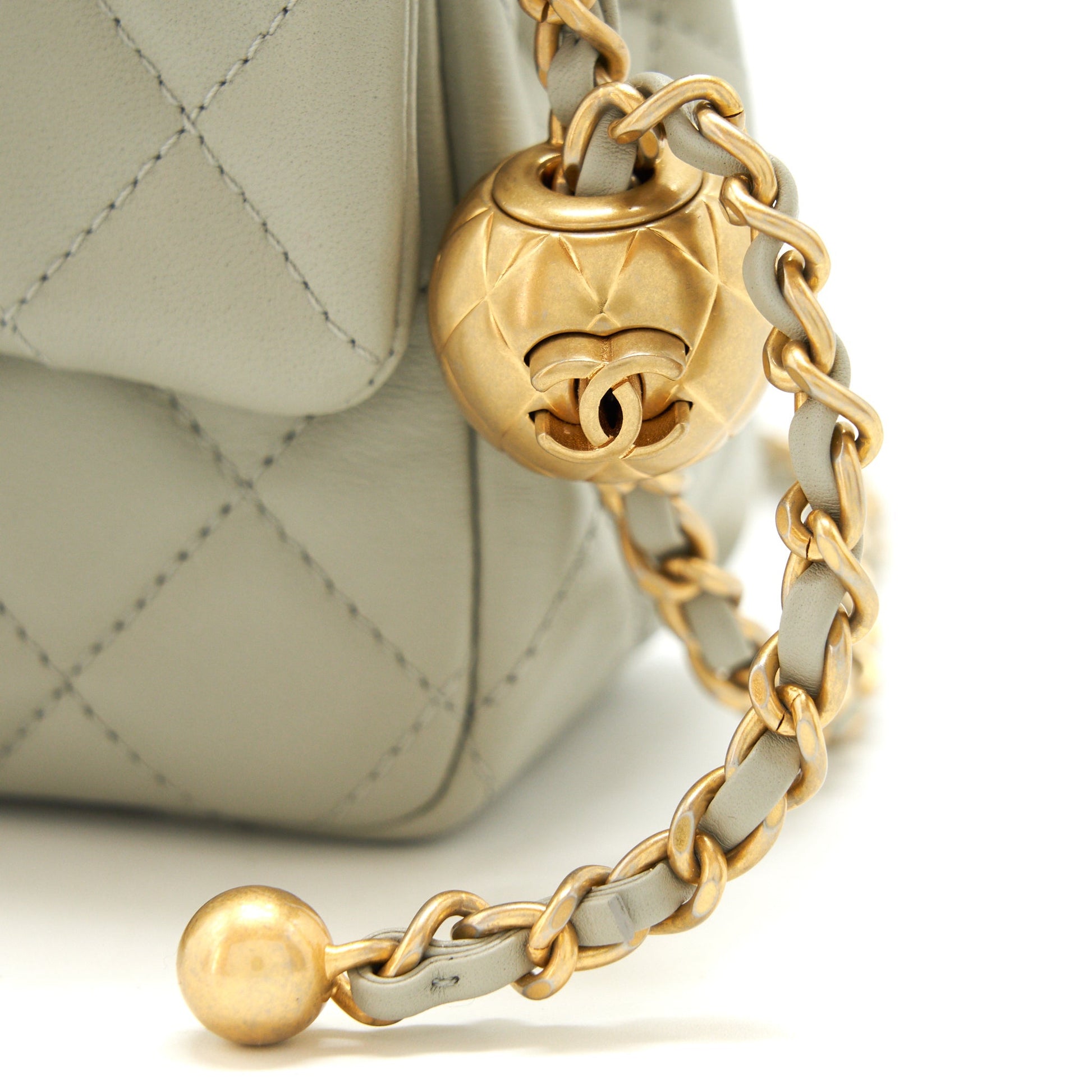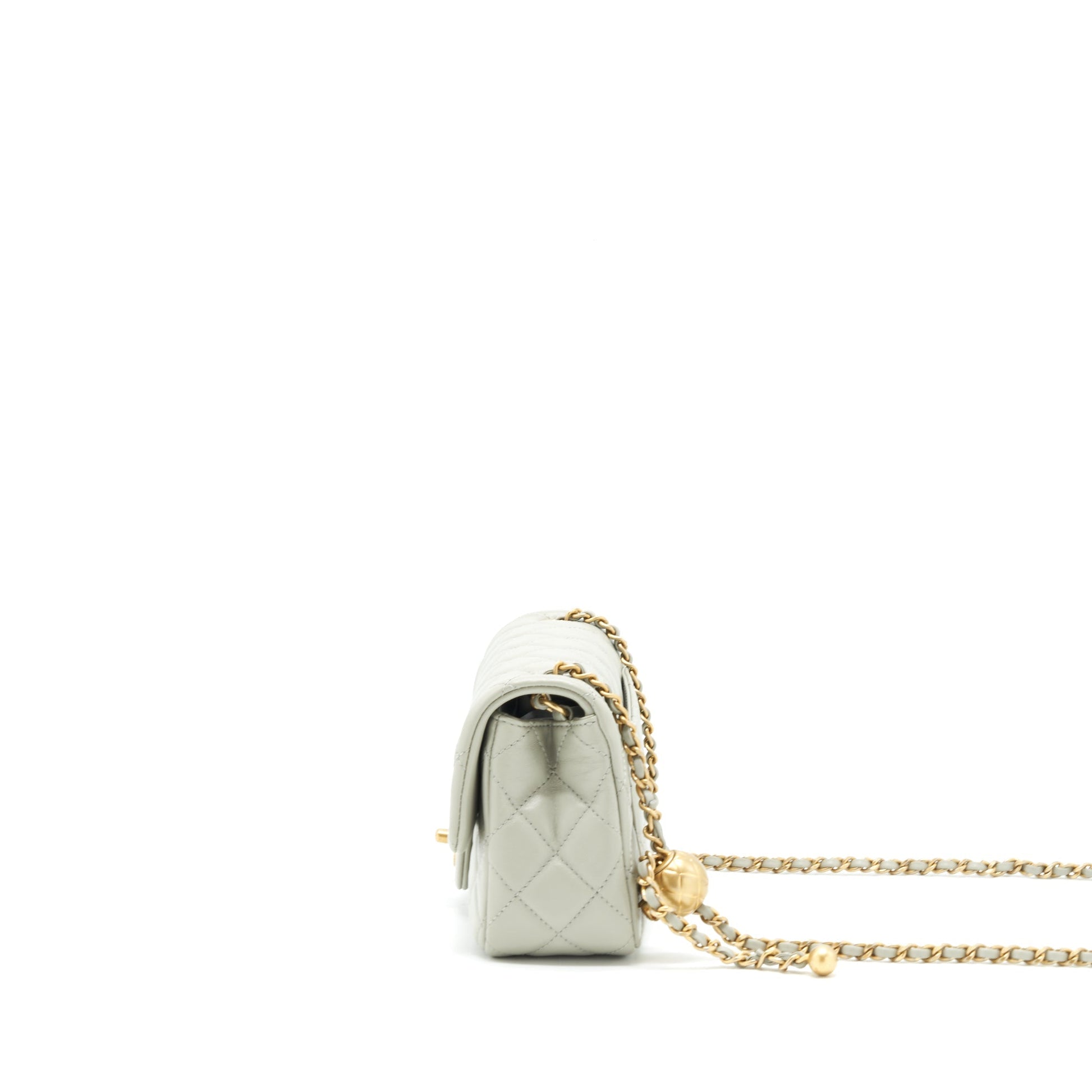Chanel 22C light Pearl Crush mini Flap Bag Lambskin light Grey GHW (microchip)