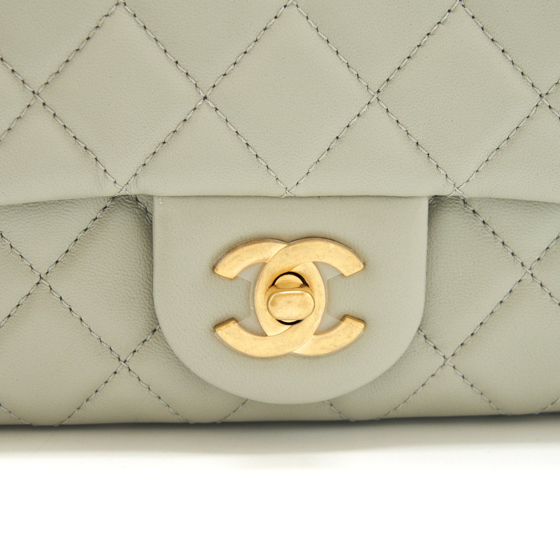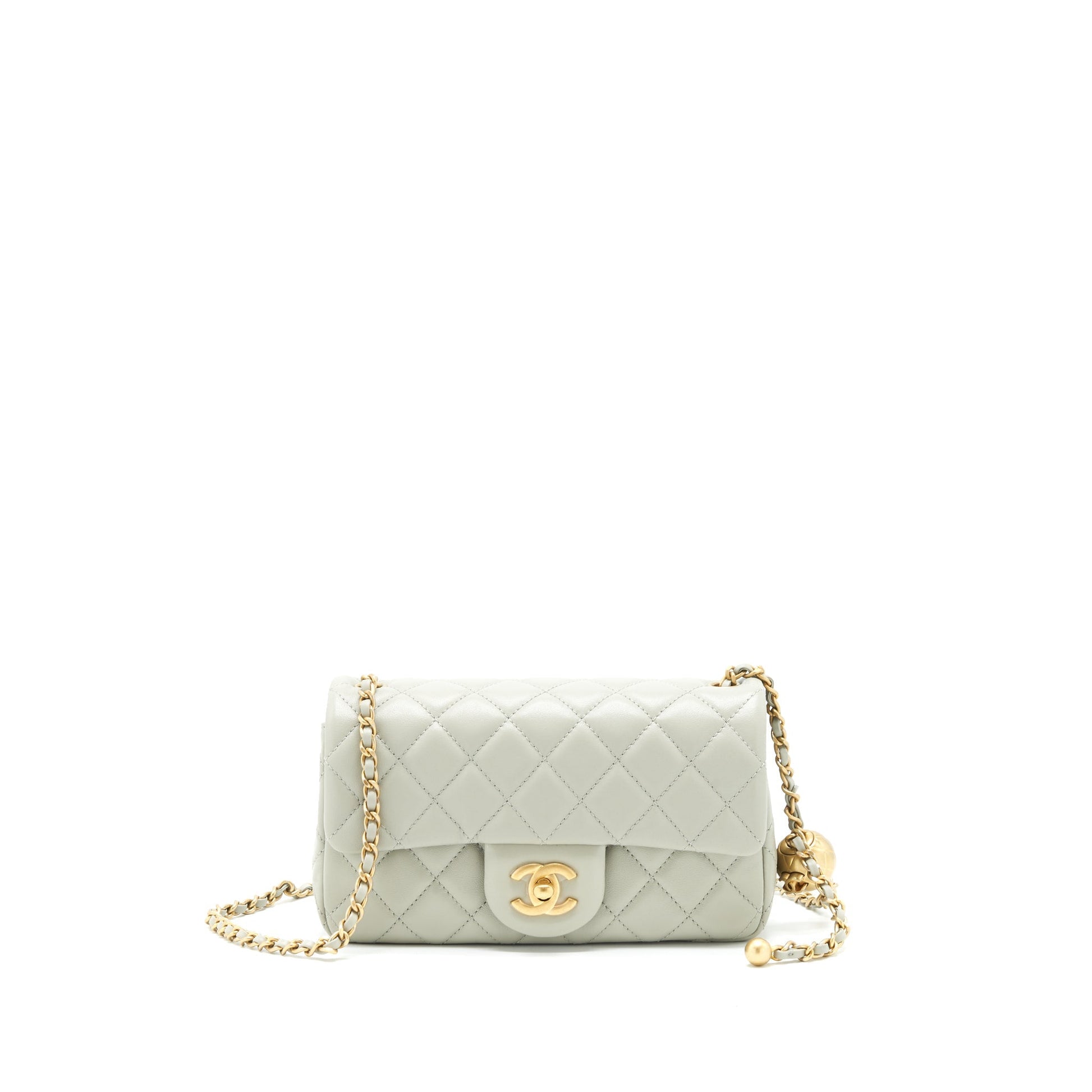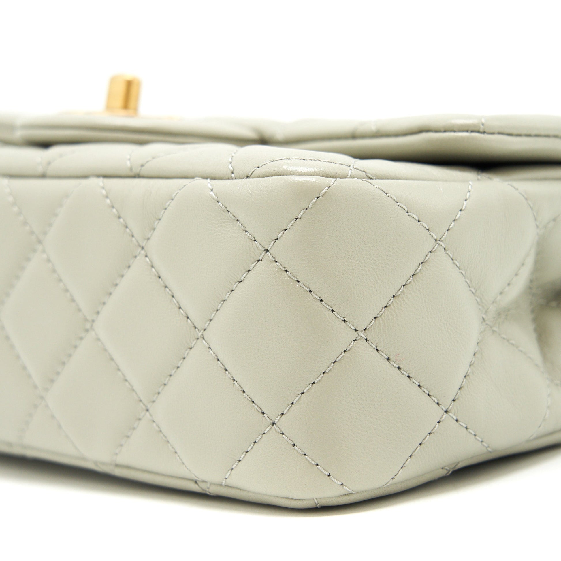 Chanel 22C light Pearl Crush mini Flap Bag Lambskin light Grey GHW (microchip)