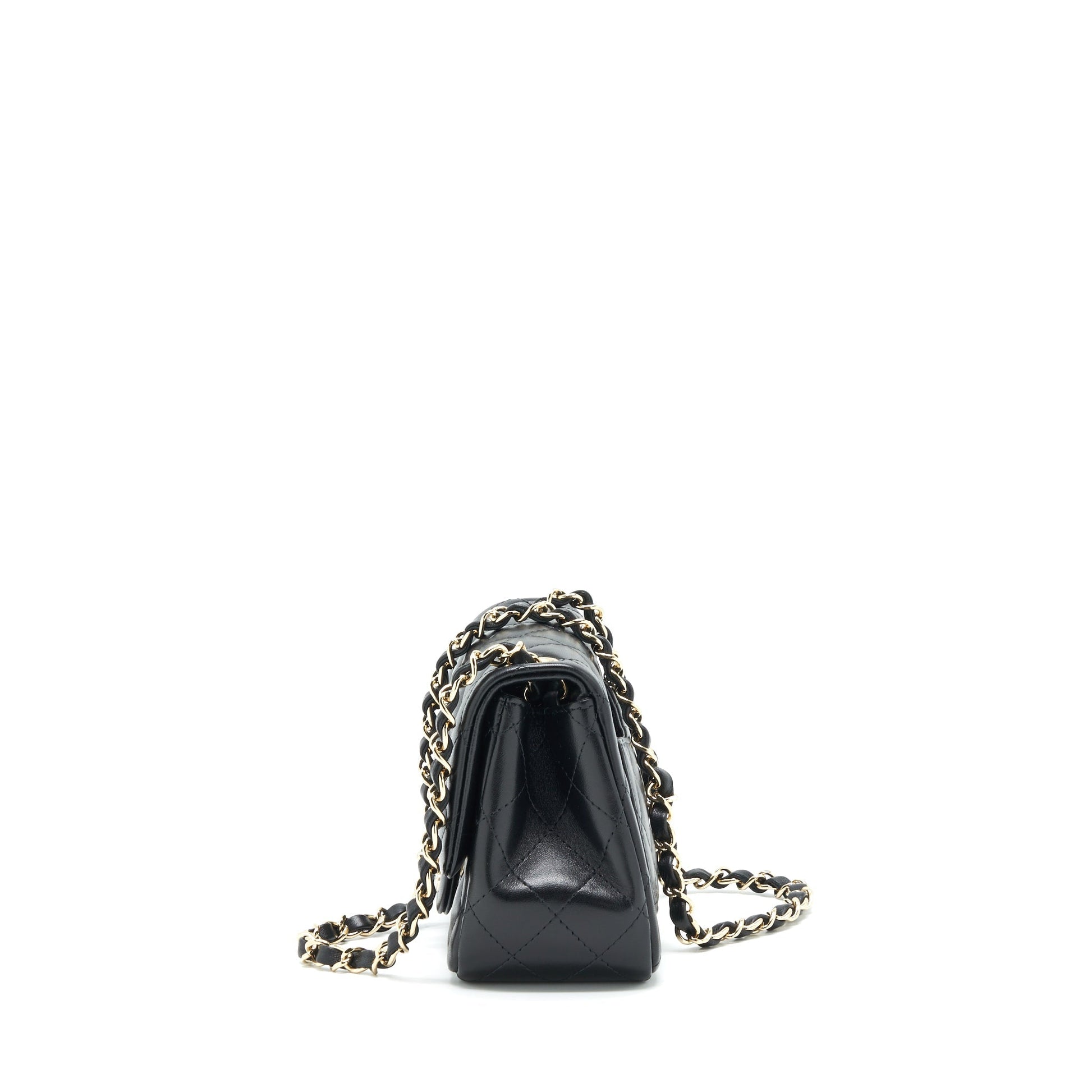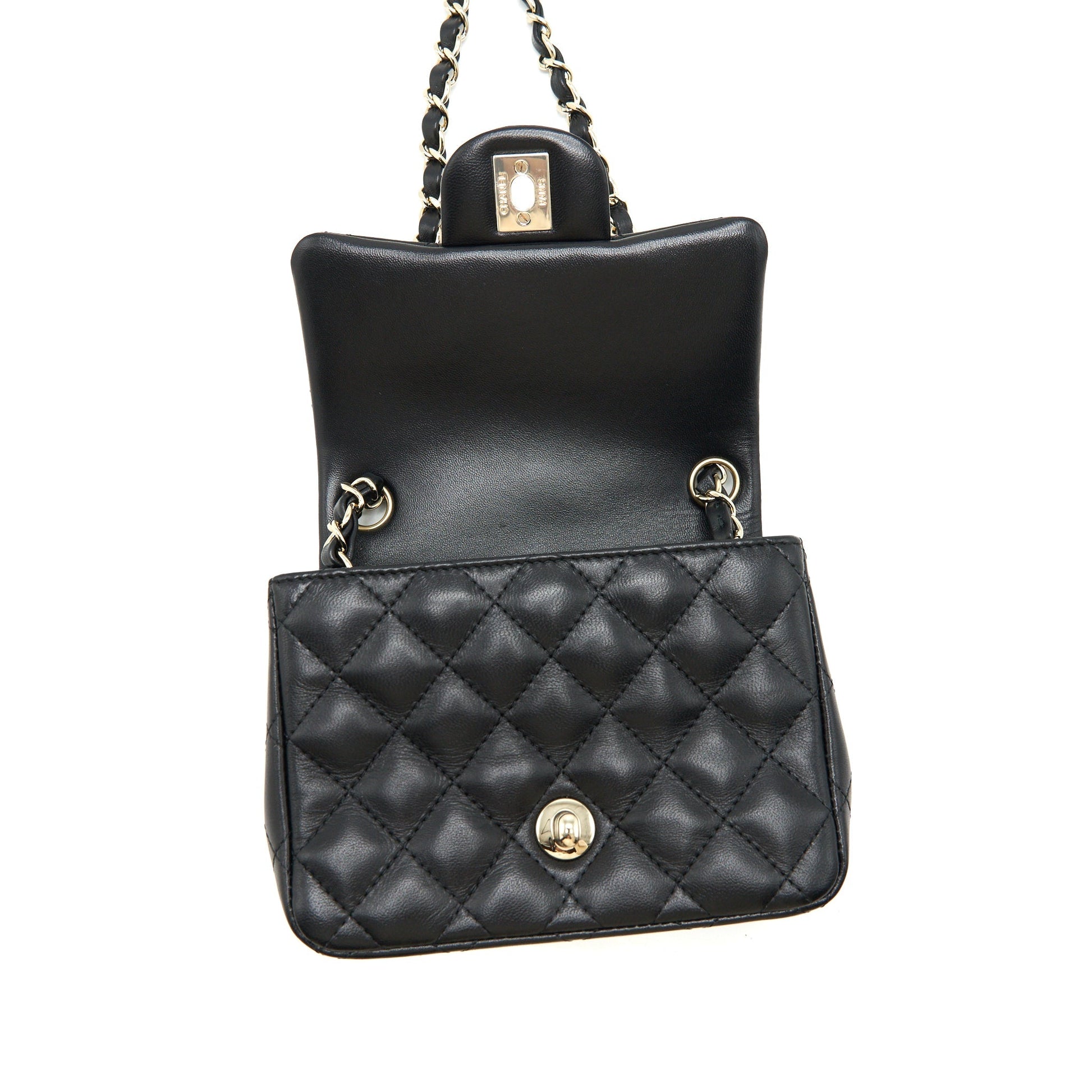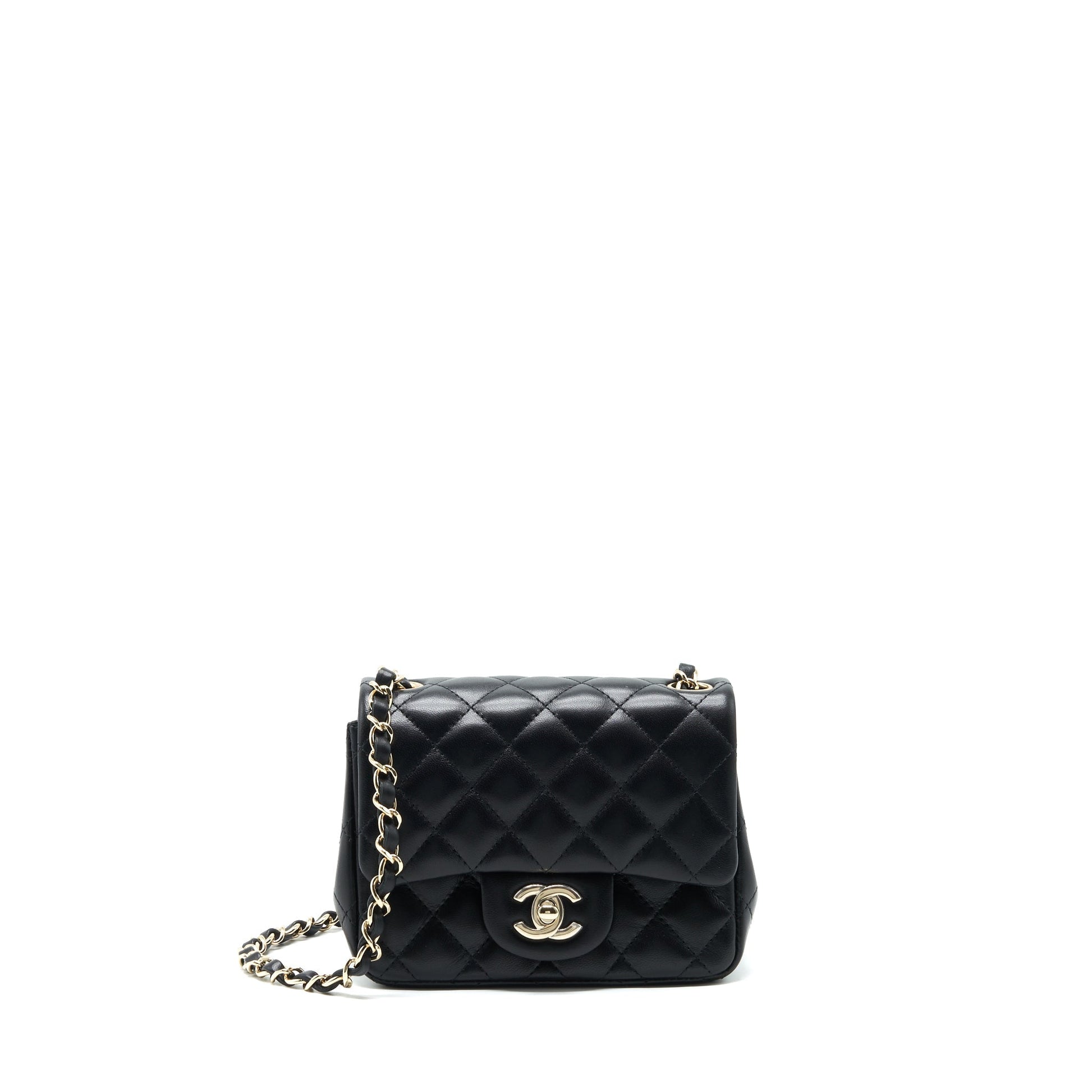 Chanel 22C Mini Square Flap Bag Lambskin Black LGHW(Microchip)