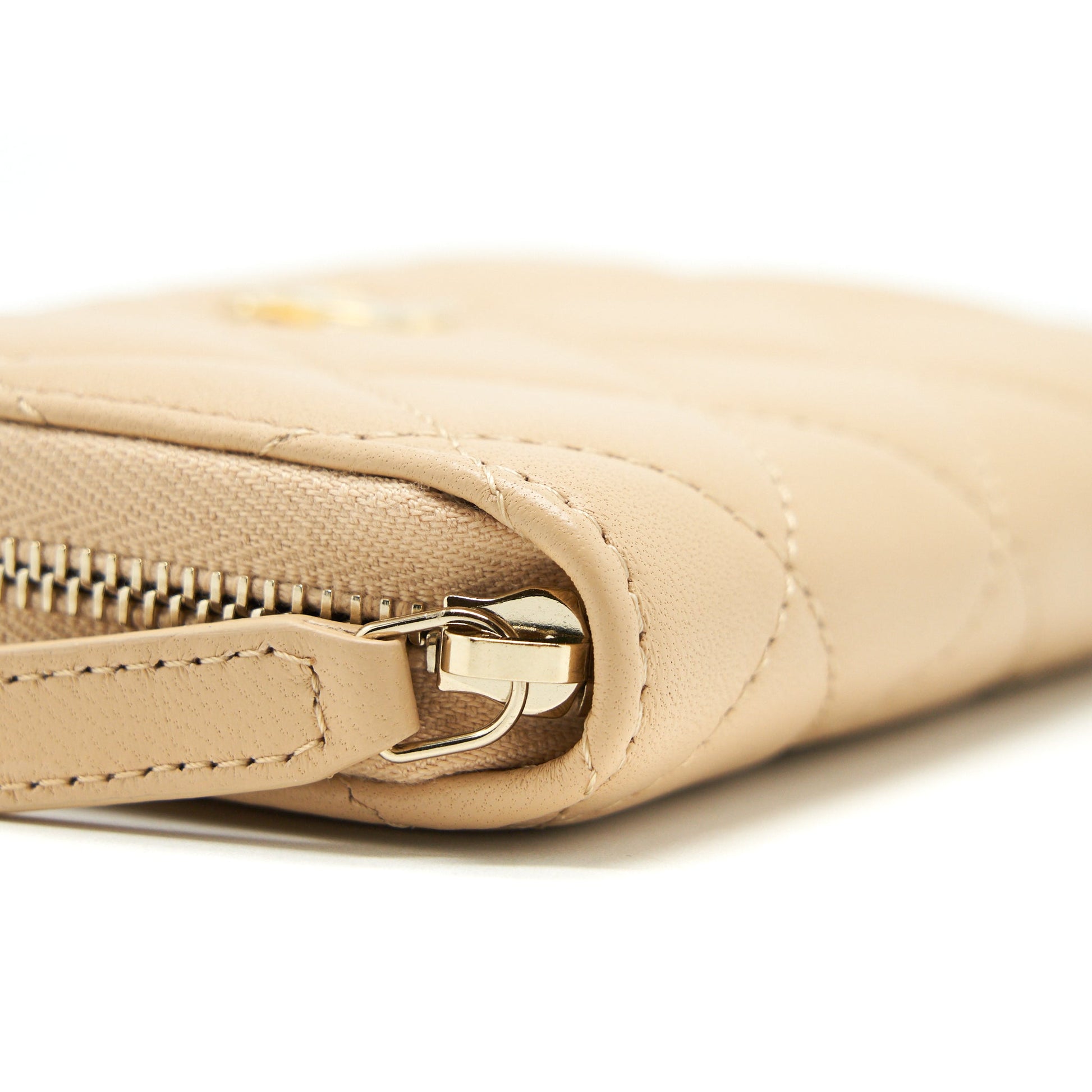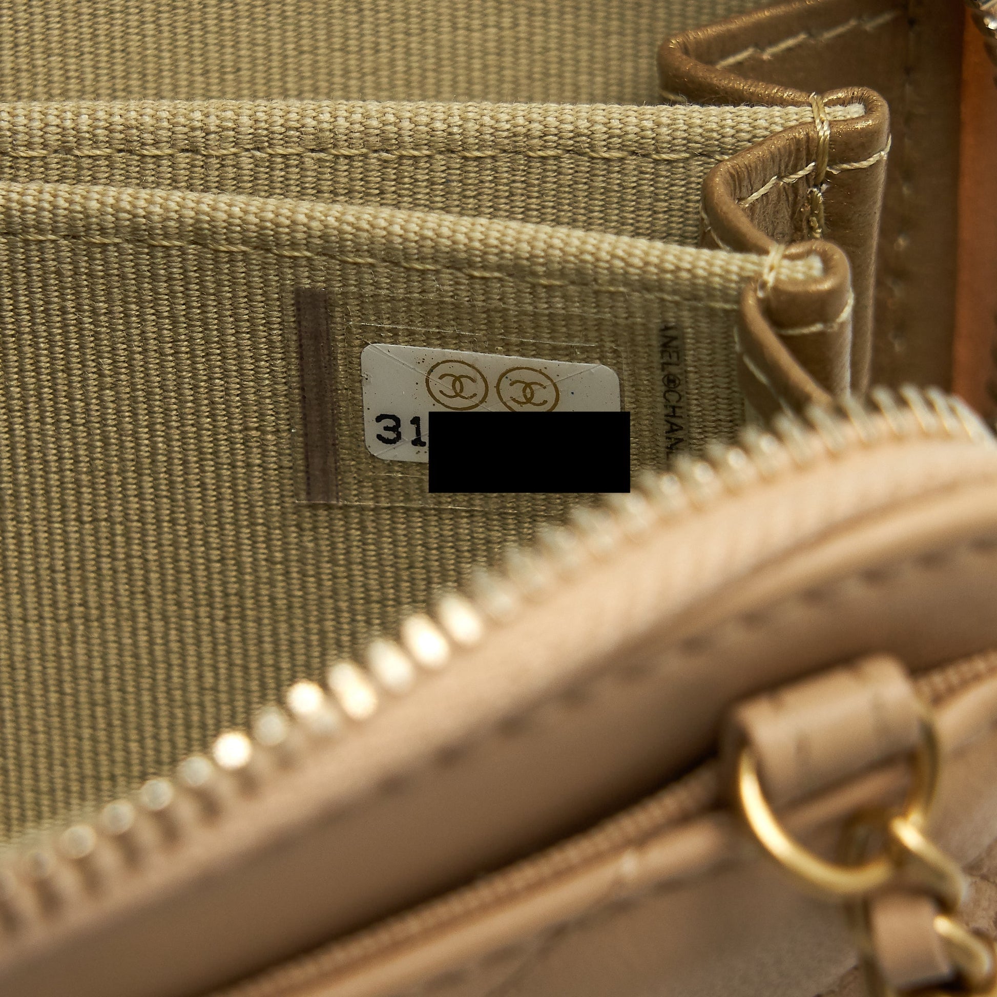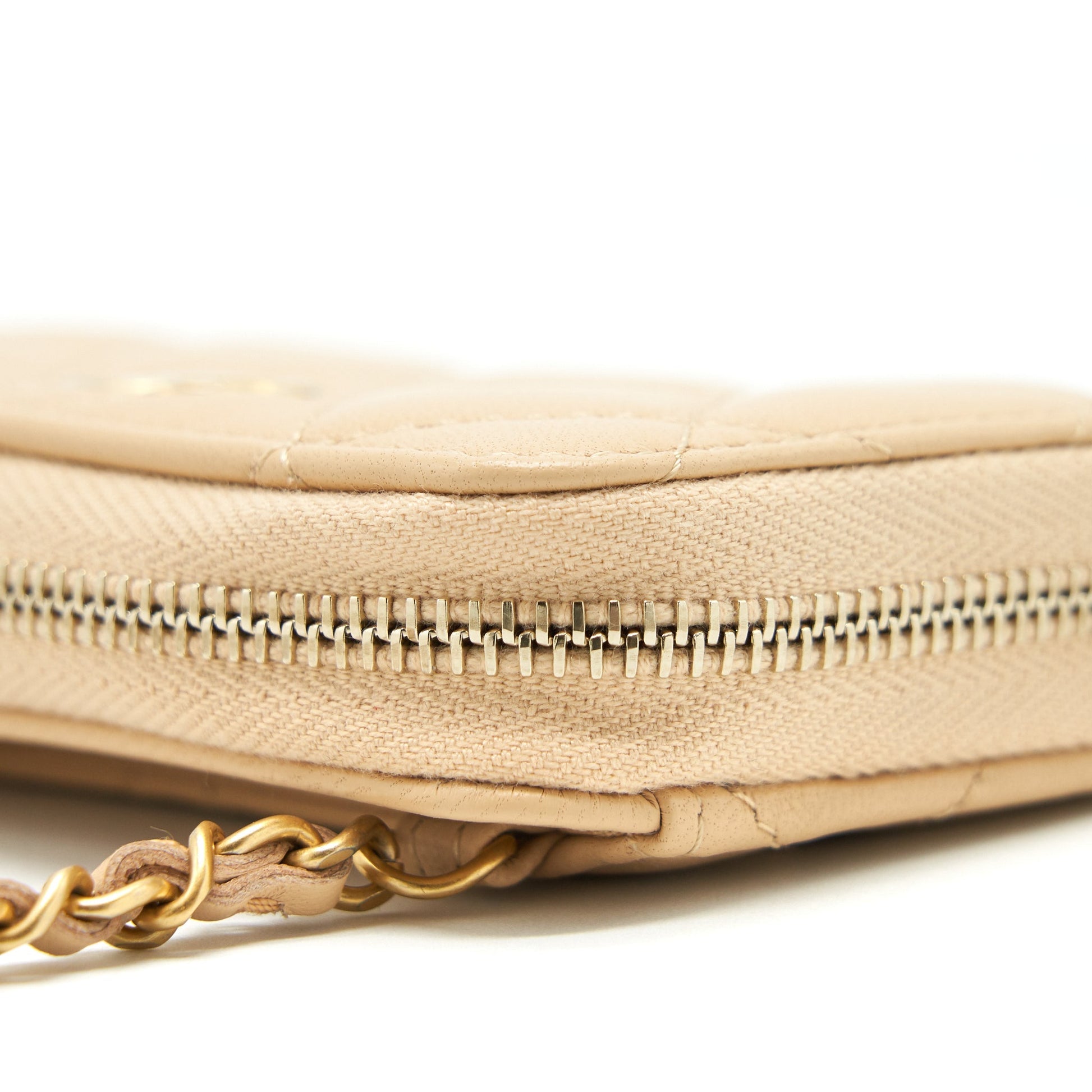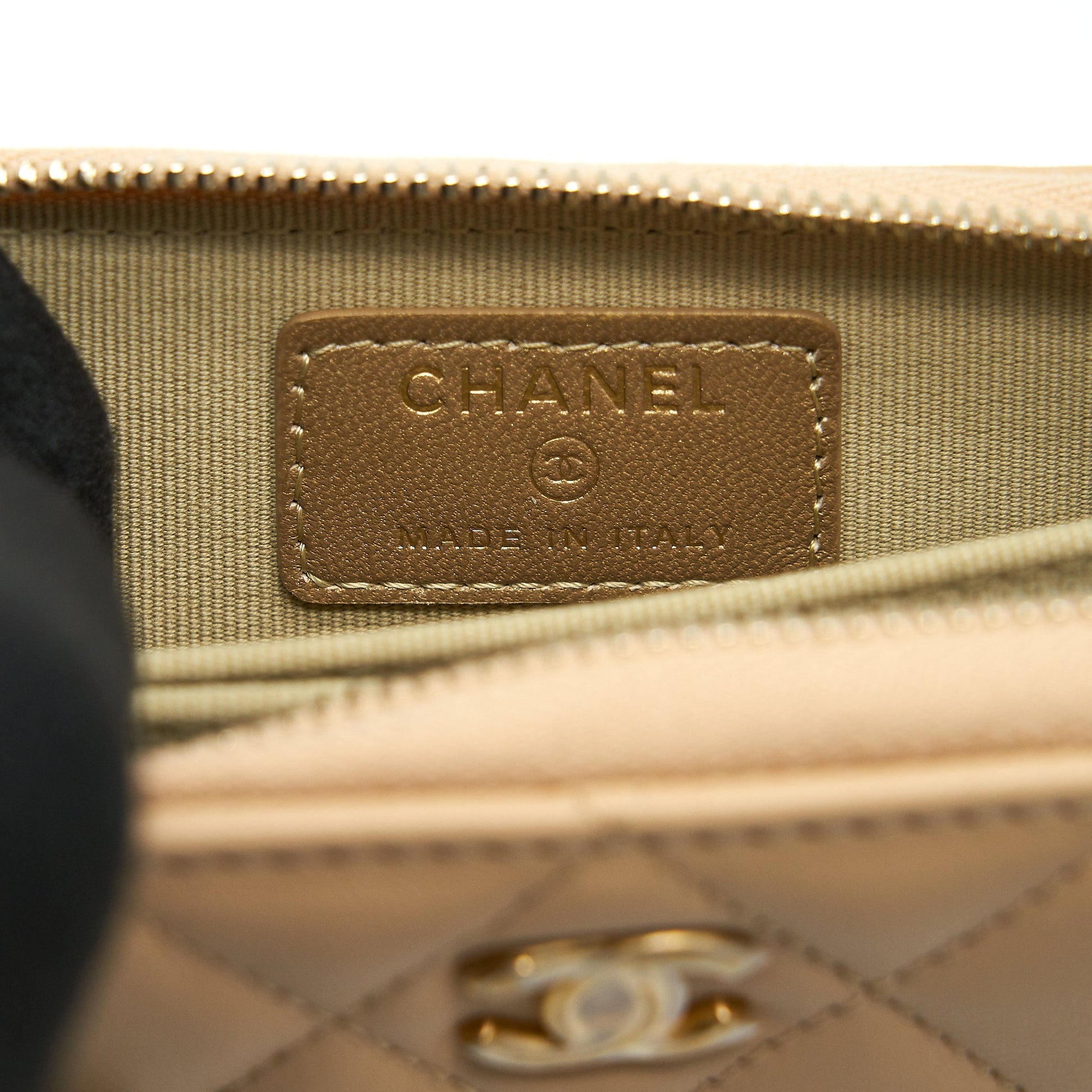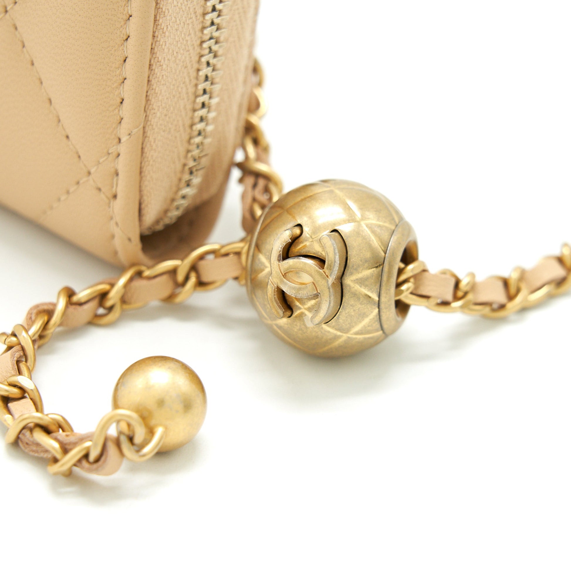 Chanel 22C Pearl Crush Card Holder With Chain Beige GHW