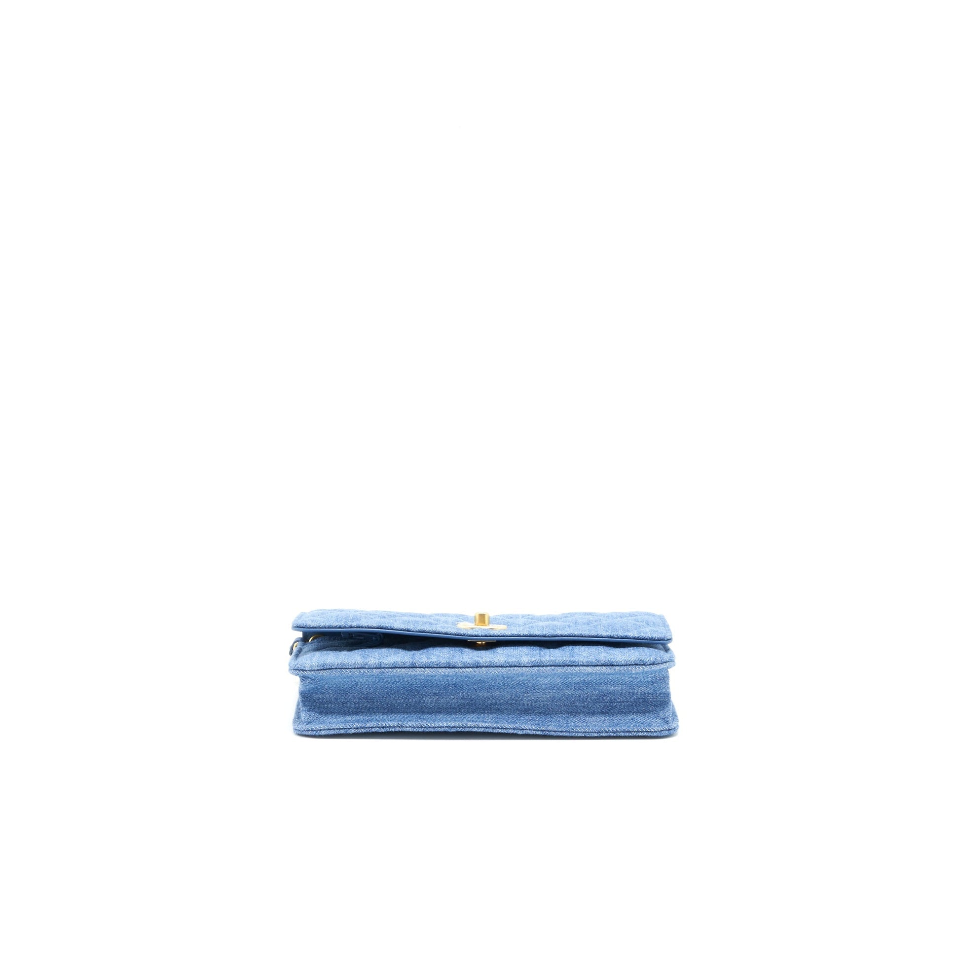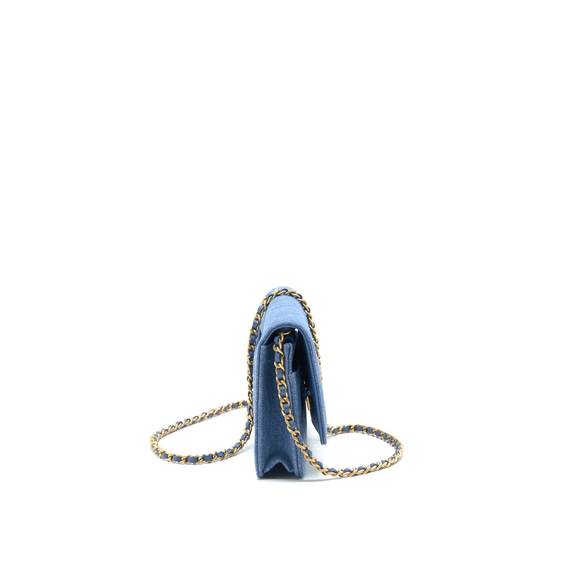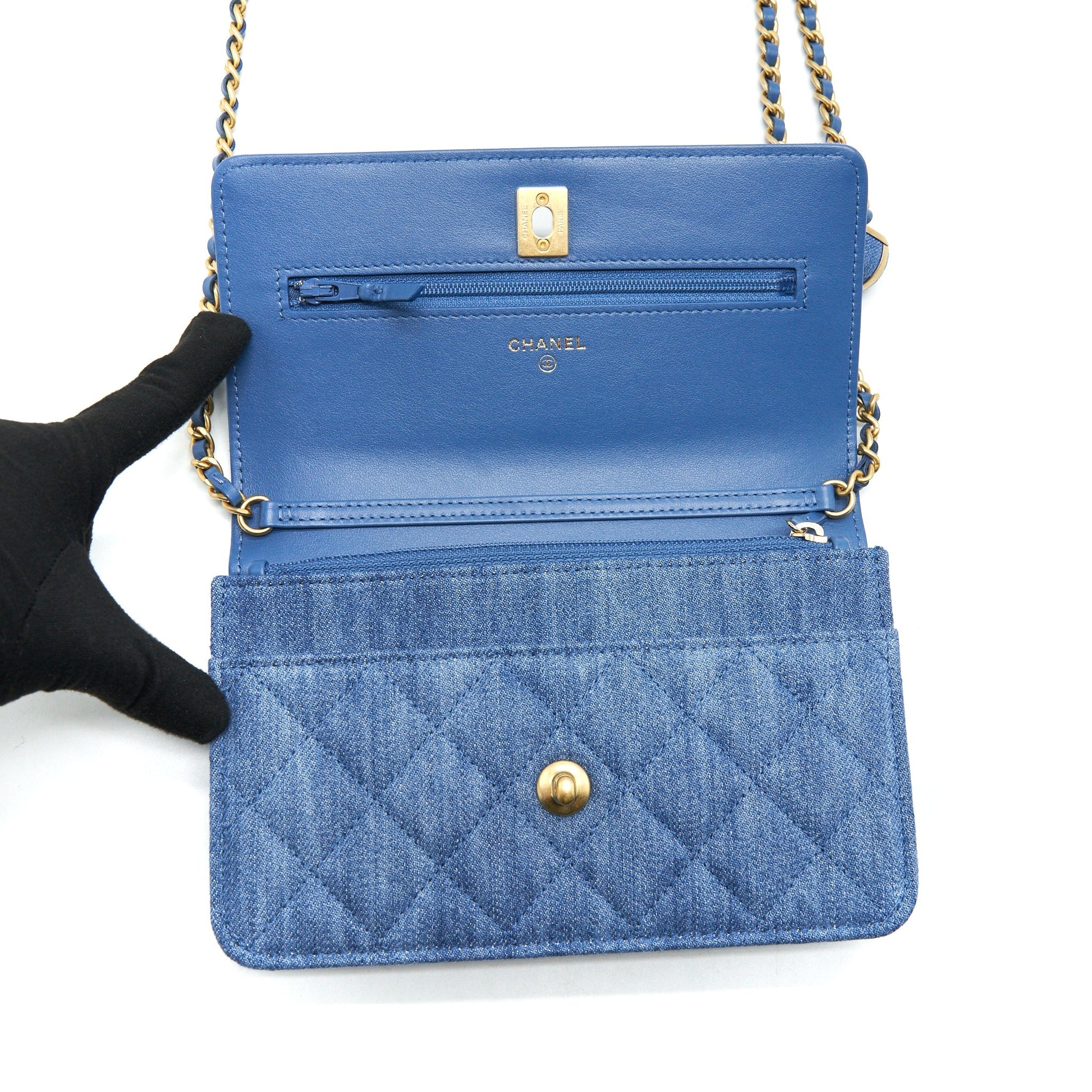 Chanel 22C Pearl Crush Wallet On Chain Denim GHW