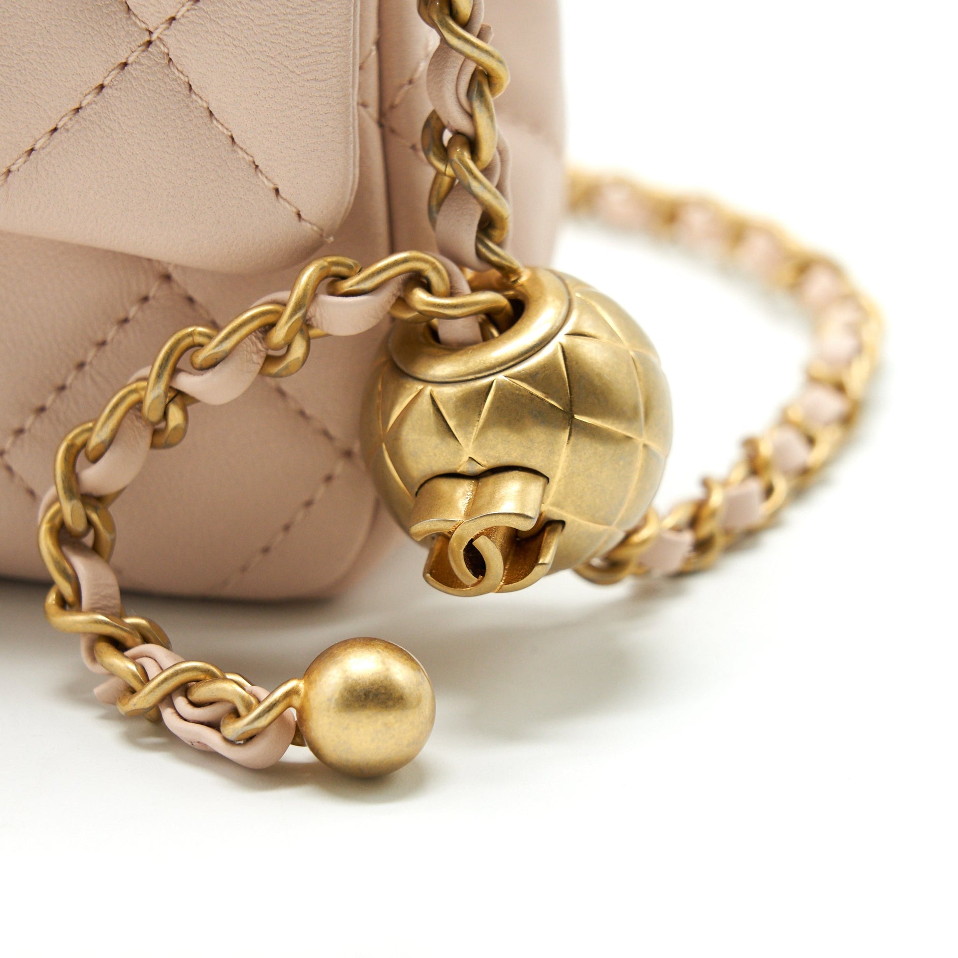 Chanel 22C Pearl Crush Mini Rectangular Flap Bag Lambskin Light Berge GHW (Microchip)