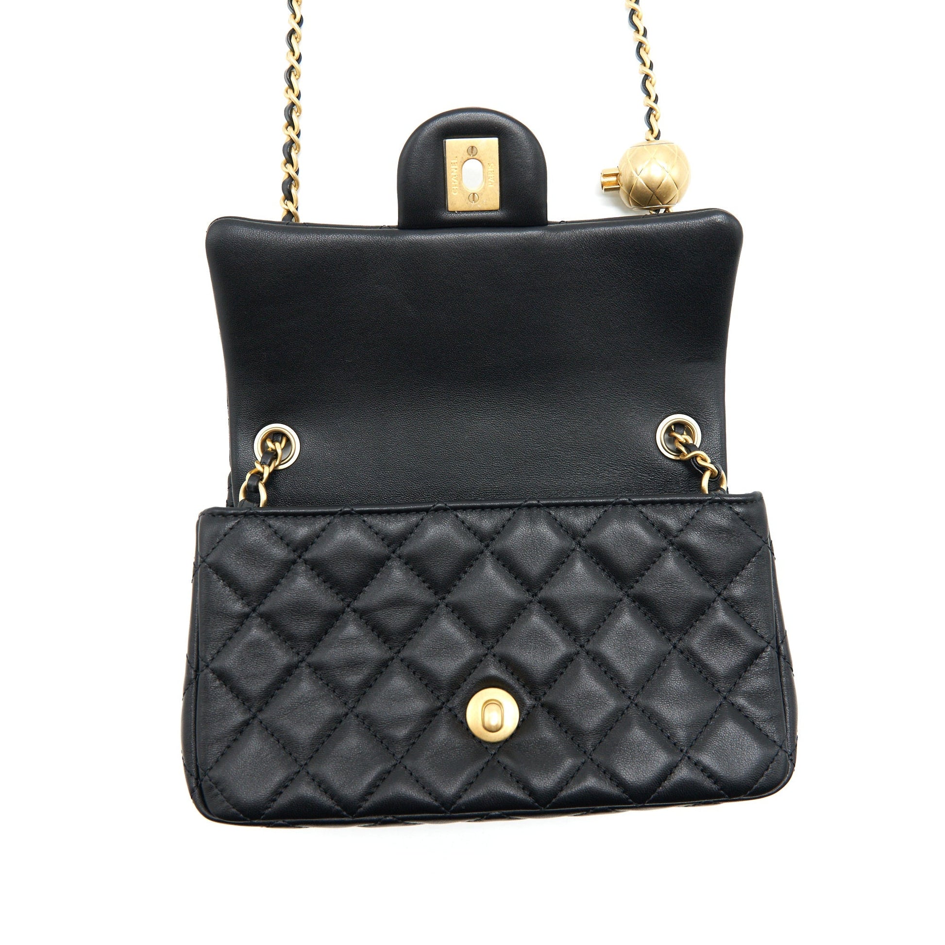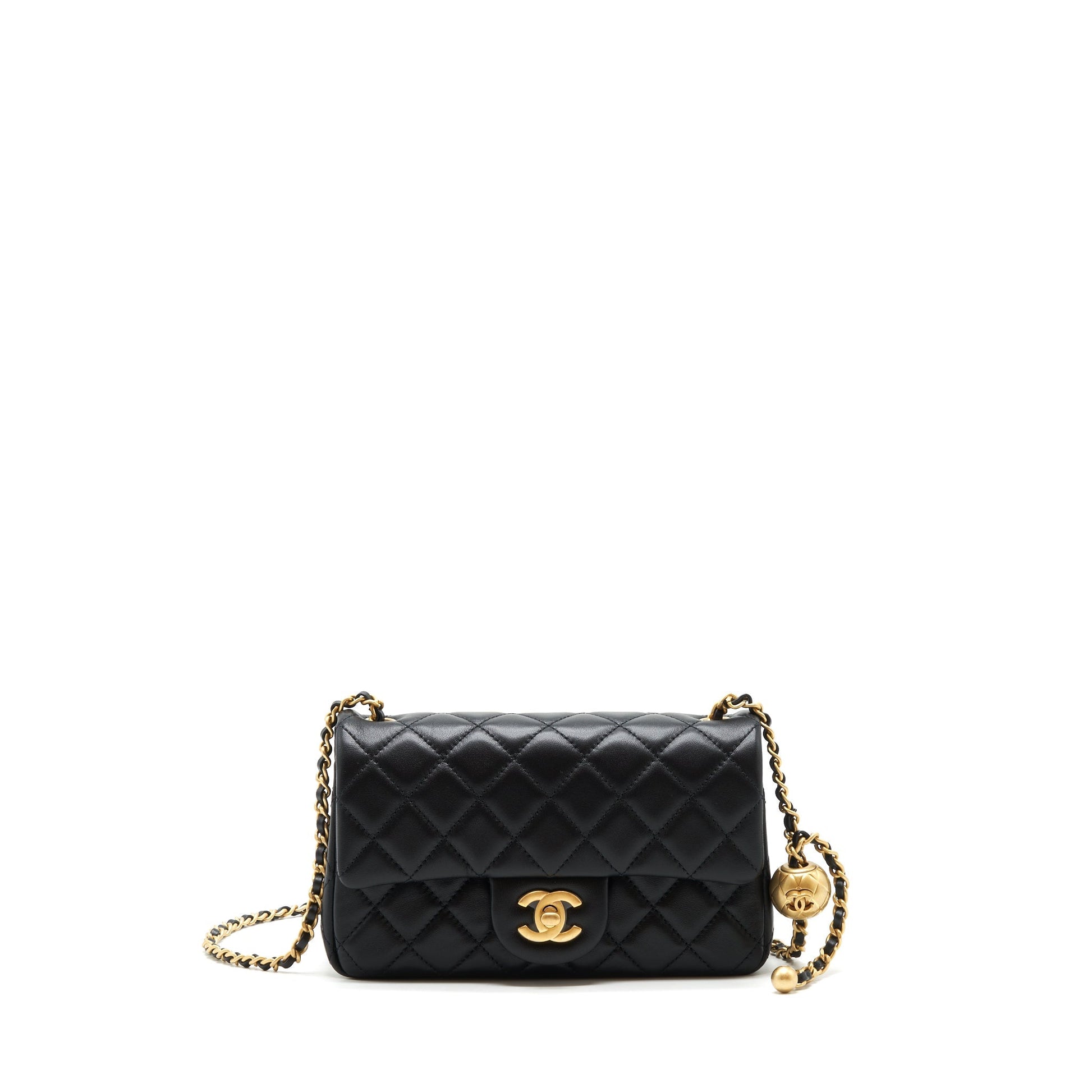 Chanel 22C pearl crush mini Rectangular Lambskin Black GHW (microchip)