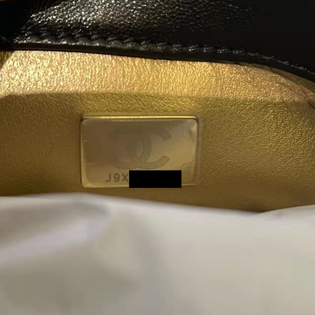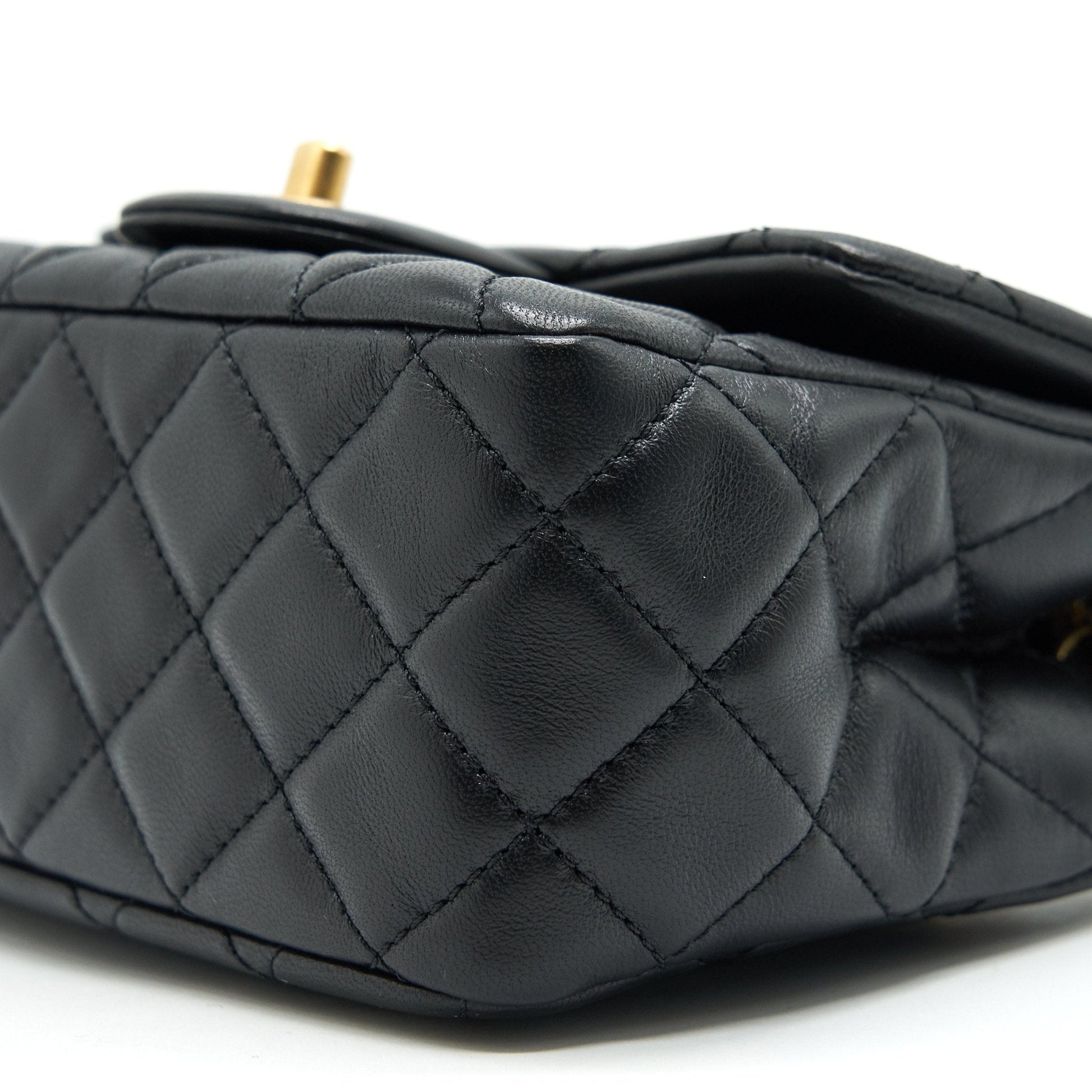 Chanel 22C Pearl Crush Mini Square Flap Bag Black Lambskin GHW (Microchip)