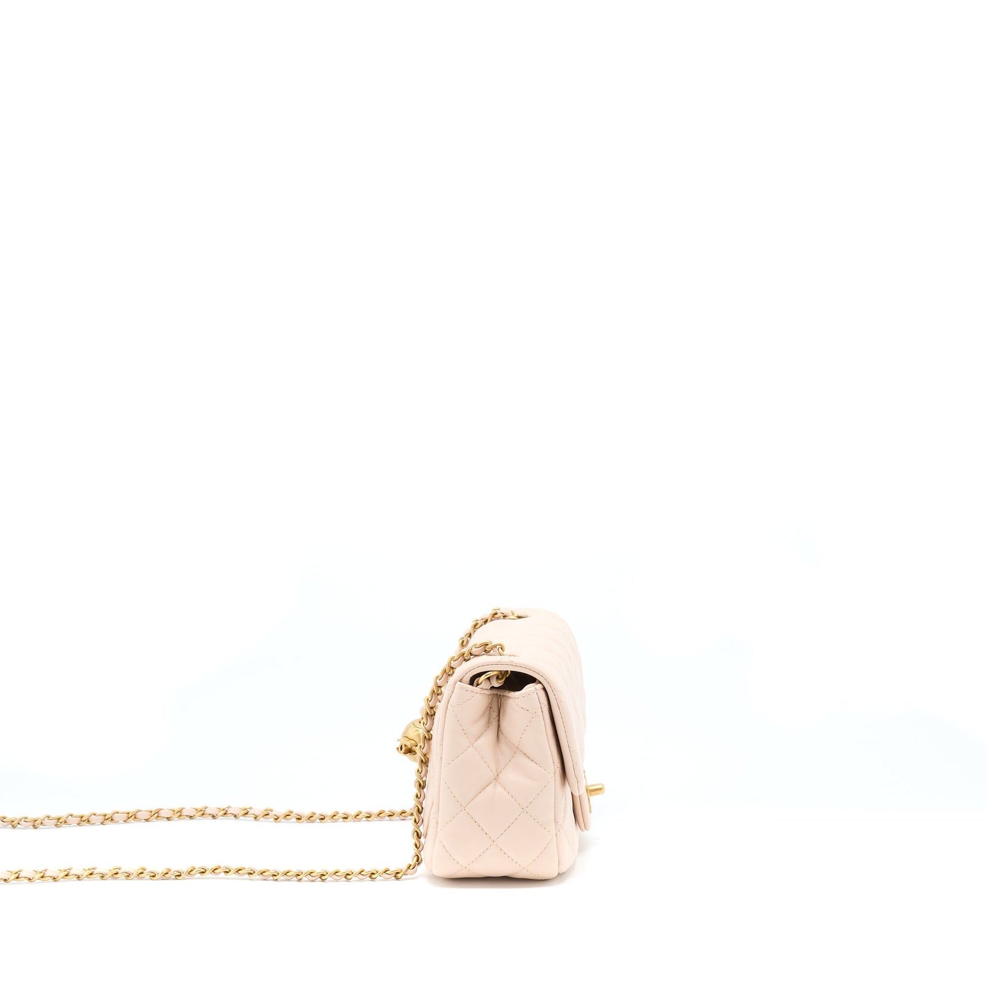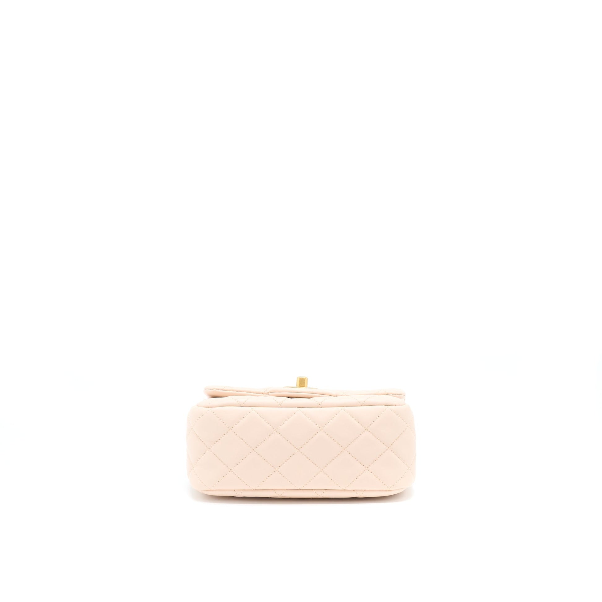 Chanel 22C Pearl Crush Mini Square Flap Bag Lambskin Light Beige GHW