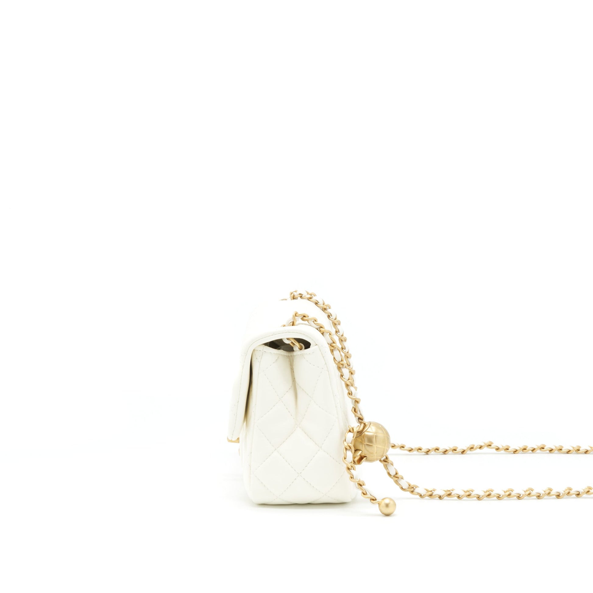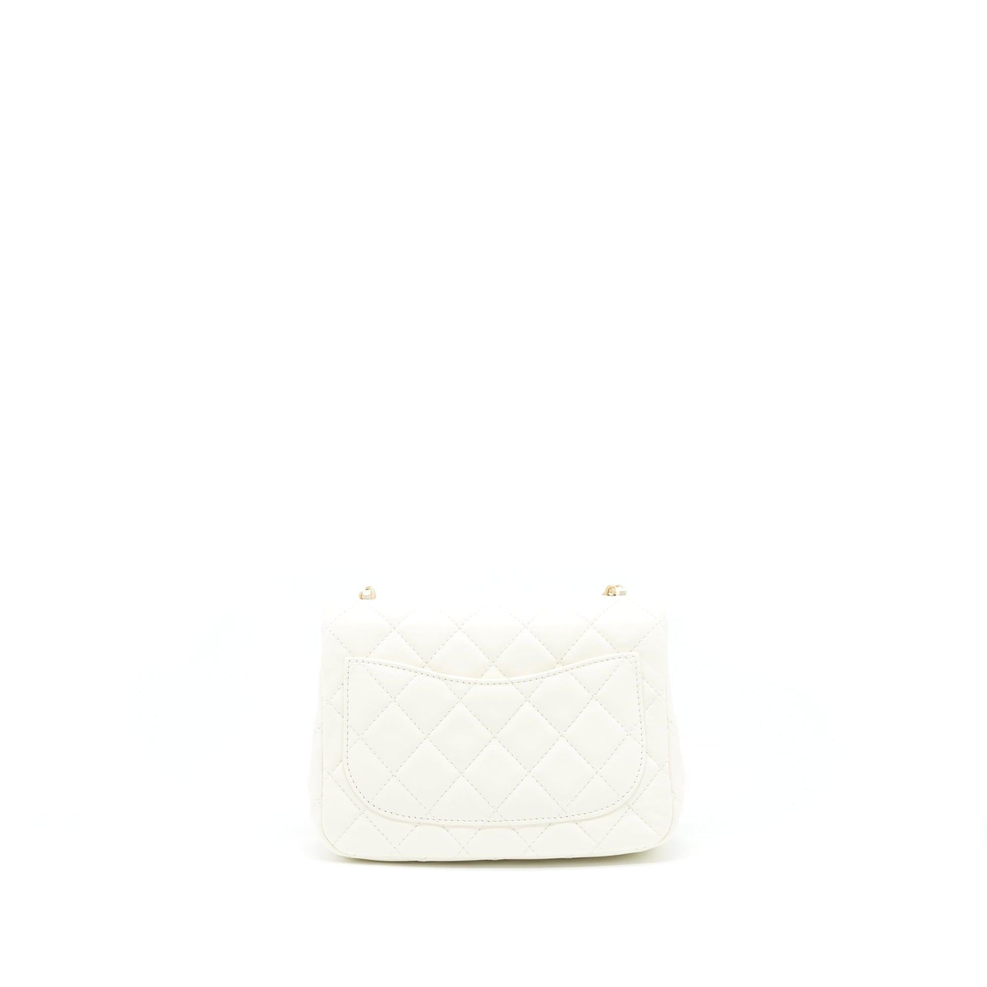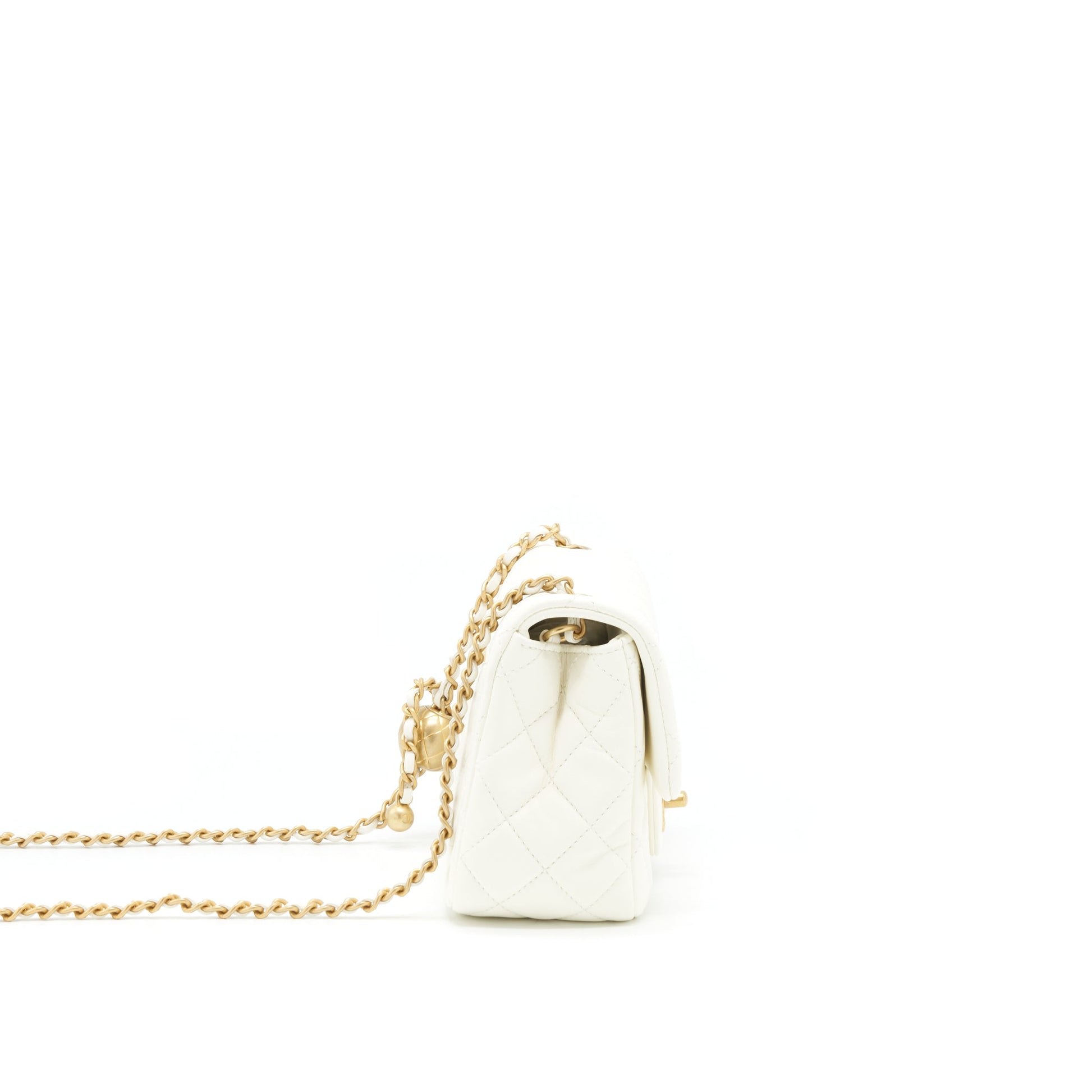Chanel 22C Pearl Crush Mini Square Flap Bag Lambskin White GHW (Microchip)