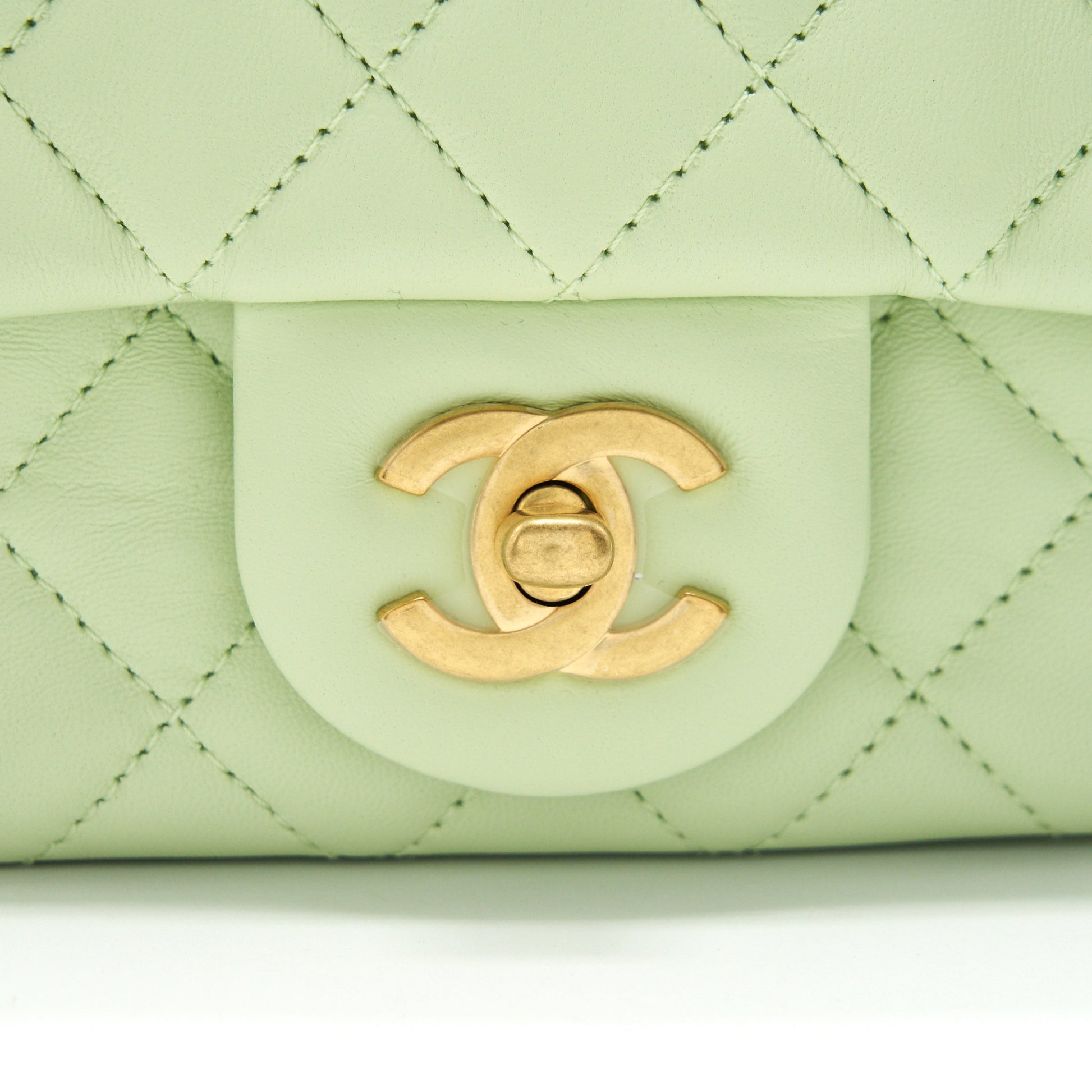 Chanel 22C Pearl Crush Mini Square Flap Bag Light Green
