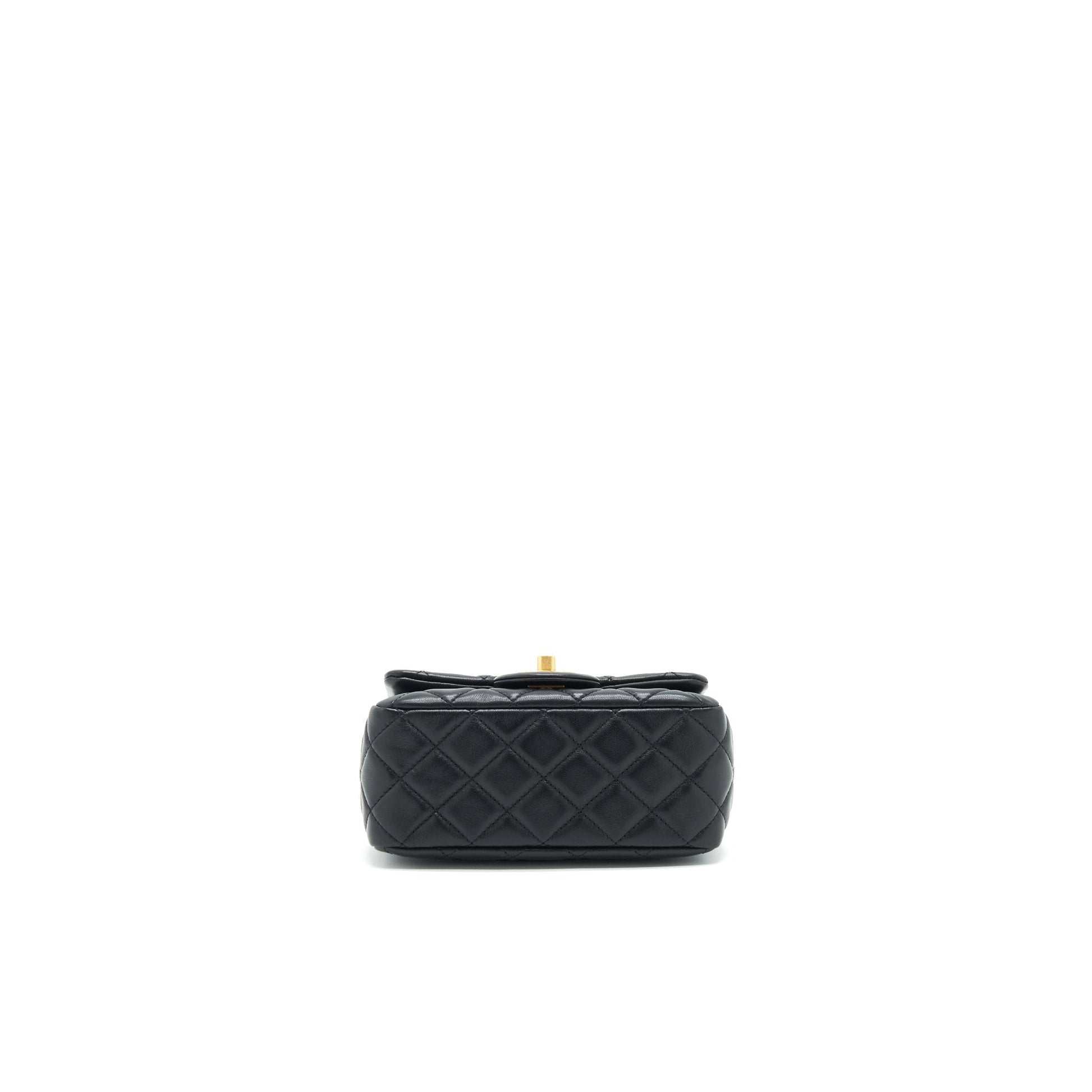 Chanel 22C Pearl Crush Mini Square Rectangular Flap Bag Black GHWMicrochip)