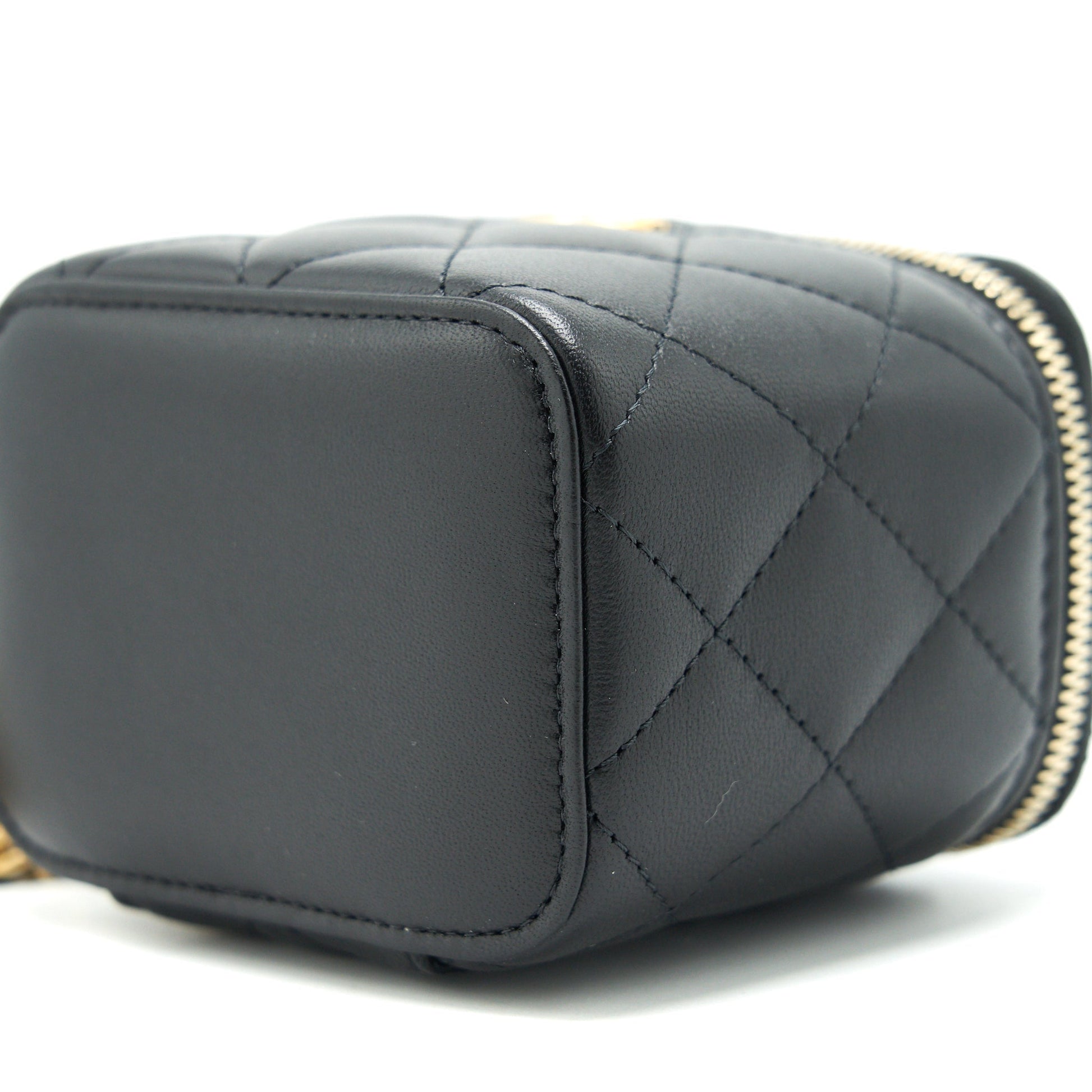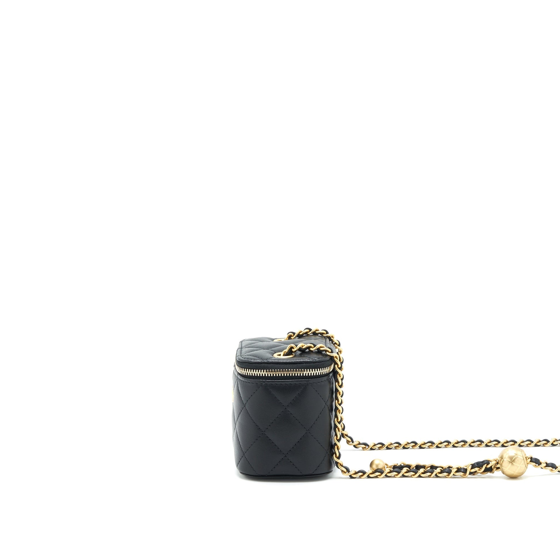 Chanel 22C Pearl Crush Mini Vanity With Chain Lambskin Black GHW