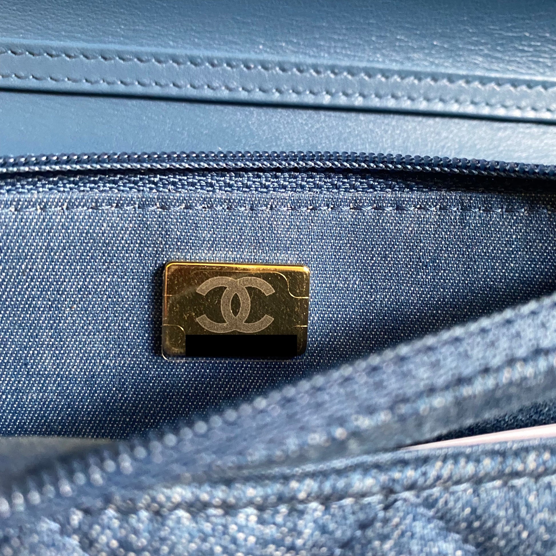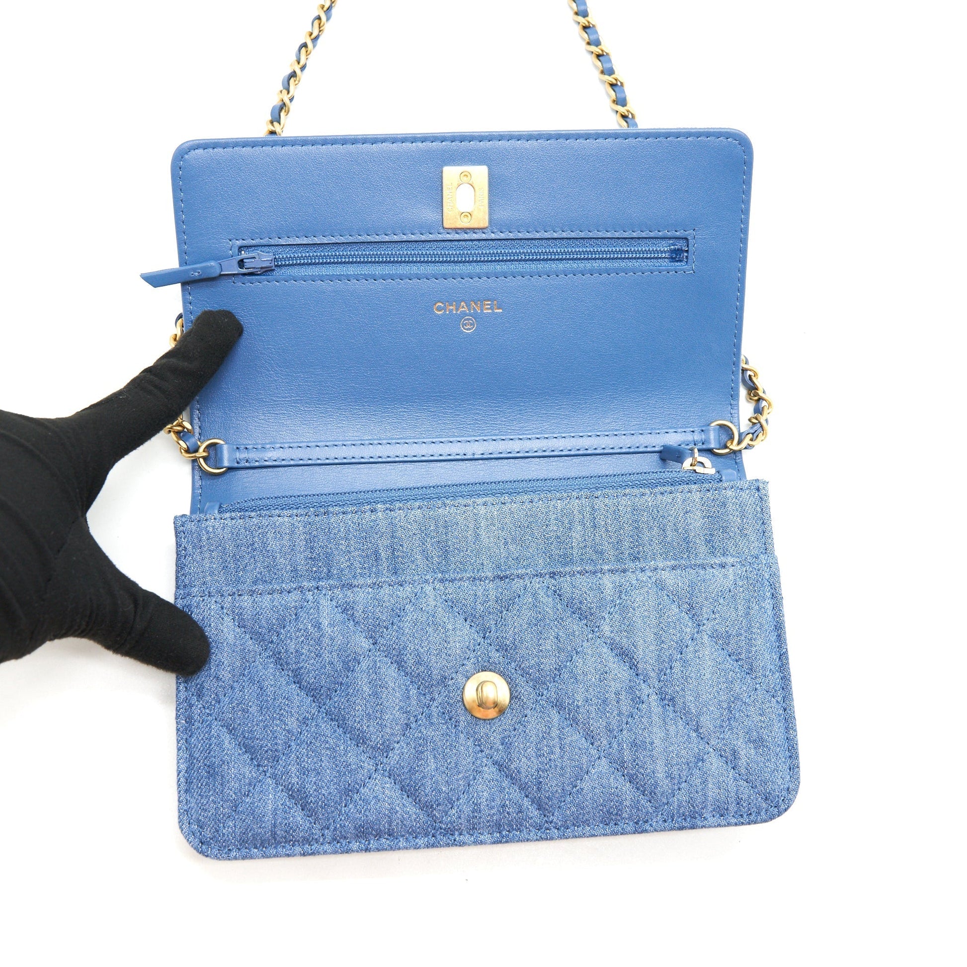 Chanel 22C Pearl Crush Wallet On Chain Denim GHW