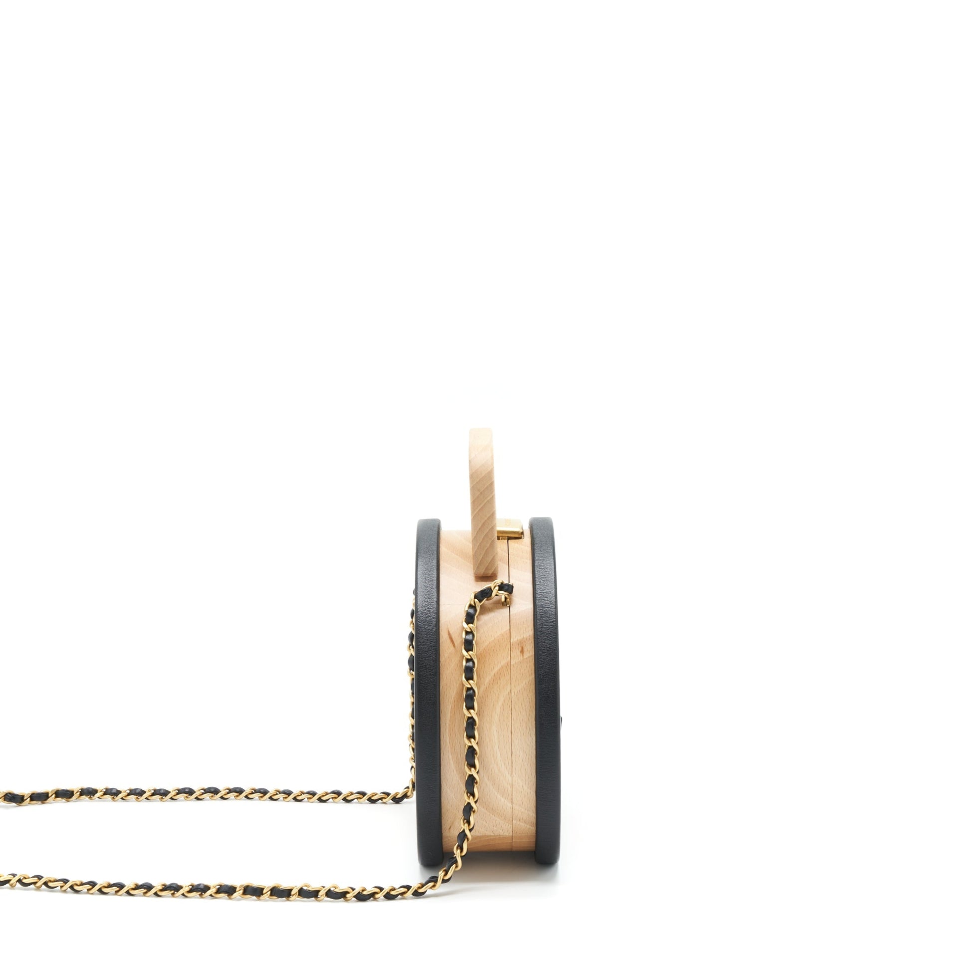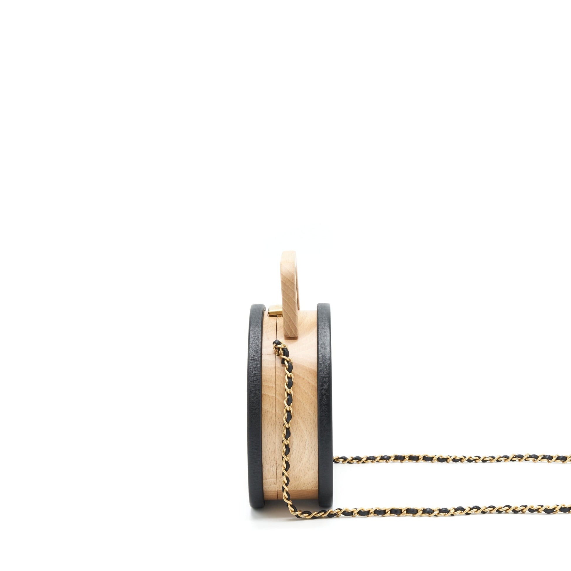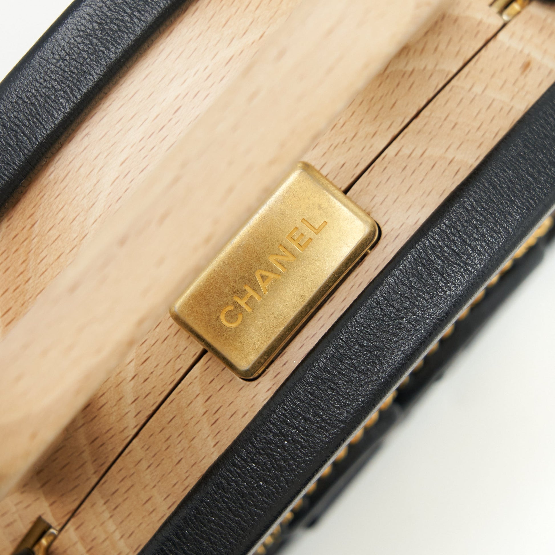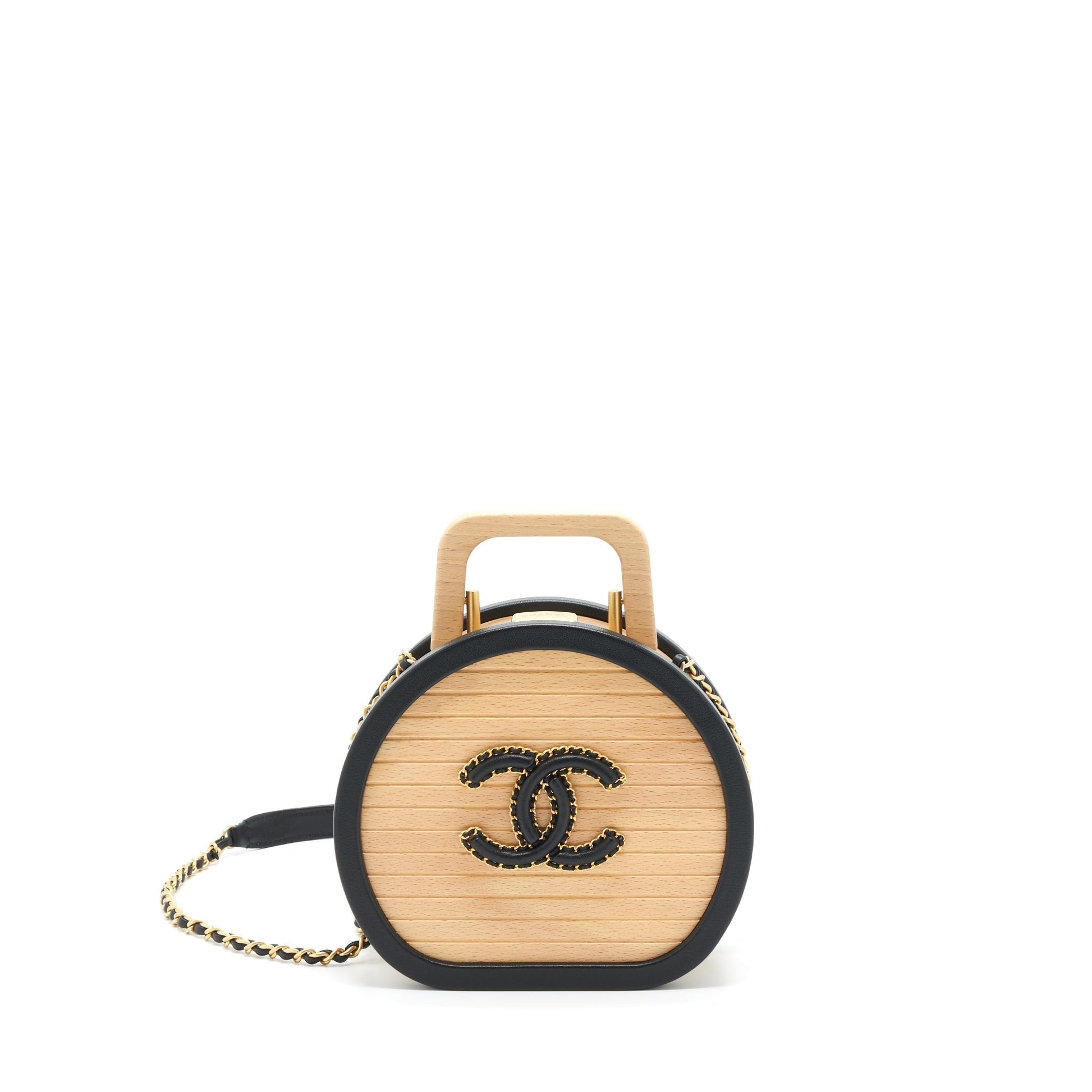 Chanel 22C small vanity case beech wood, calfskin beige / black with GHW