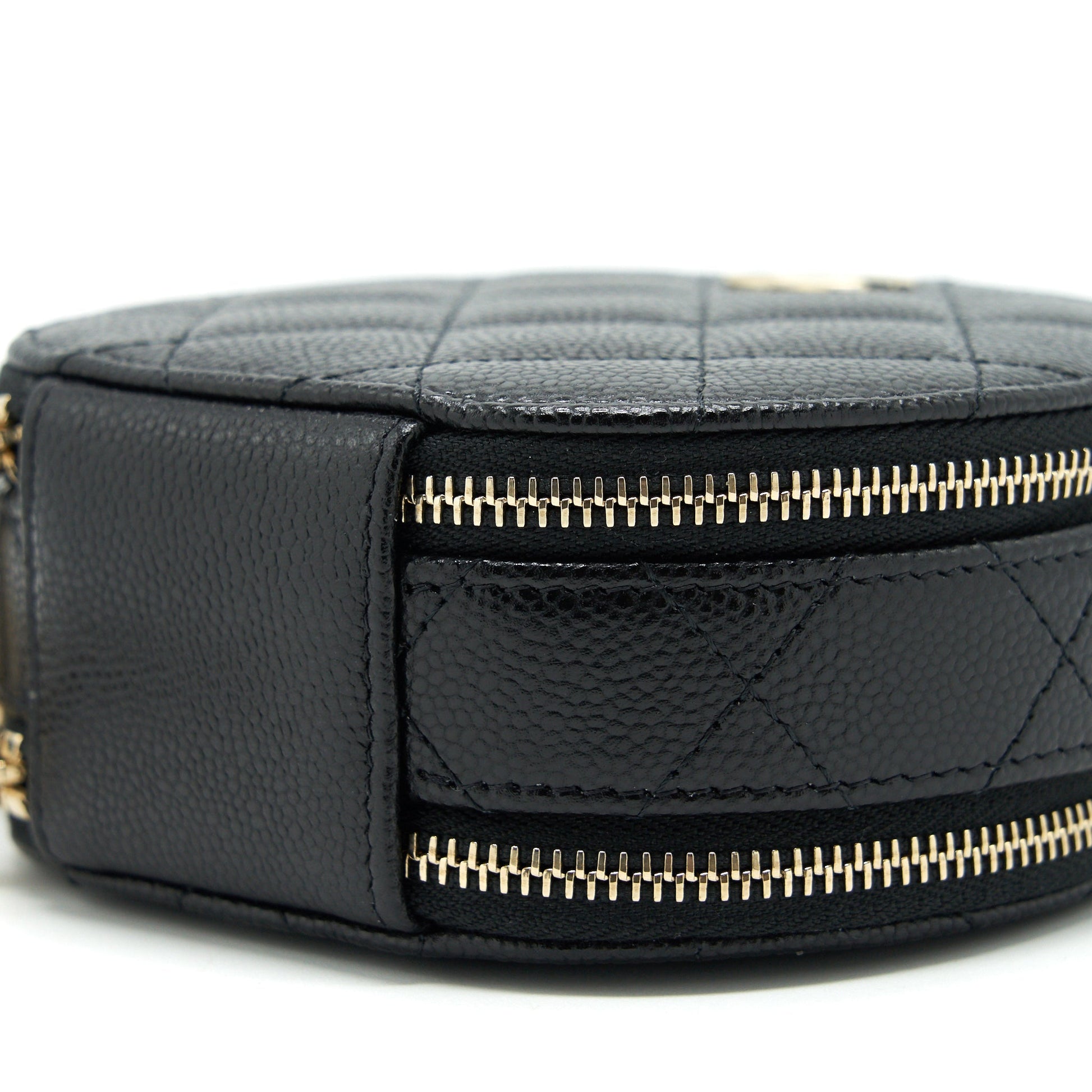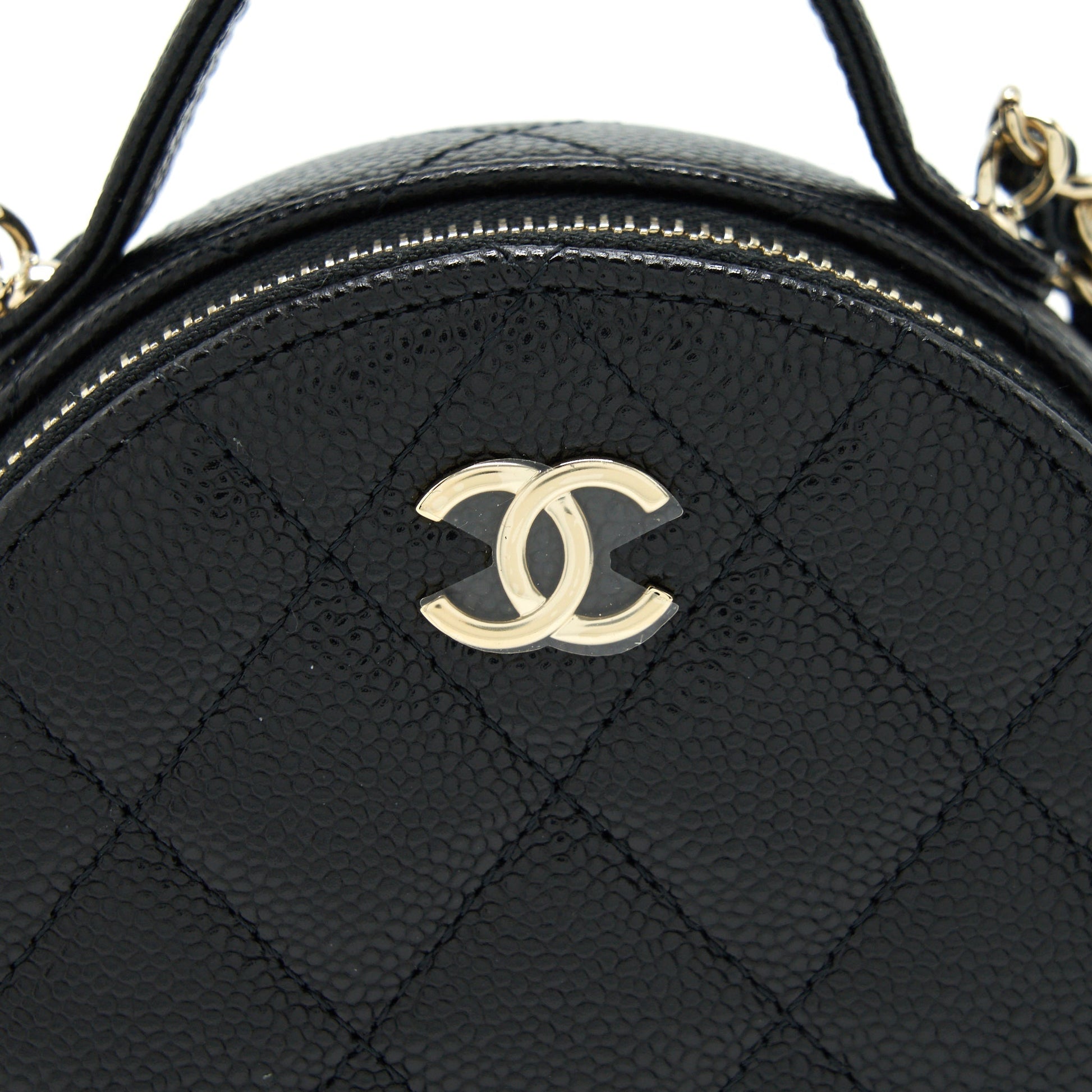 Chanel 22C Top Handle Round Vanity Black With Chain Caviar LGHW