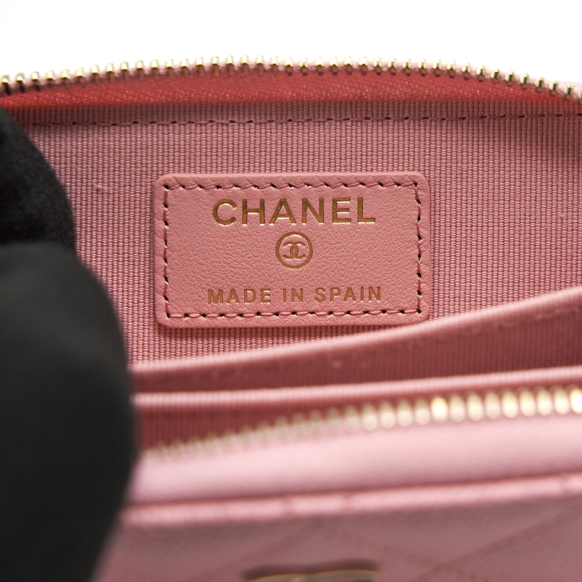 Chanel 22C Zip Cardholder Pink Caviar LGHW