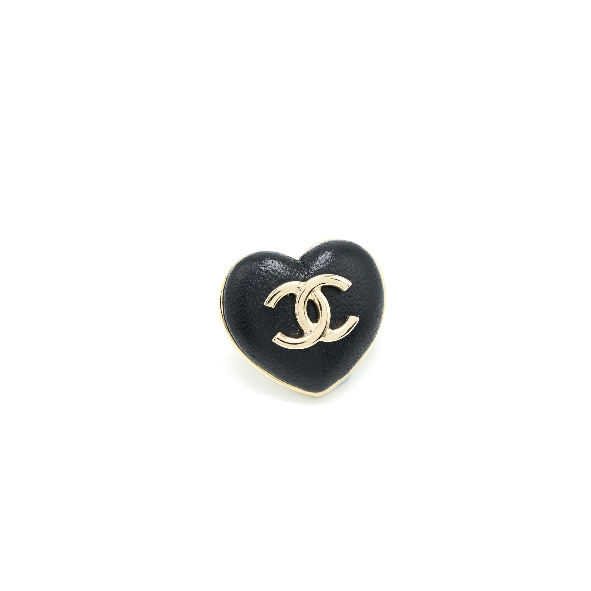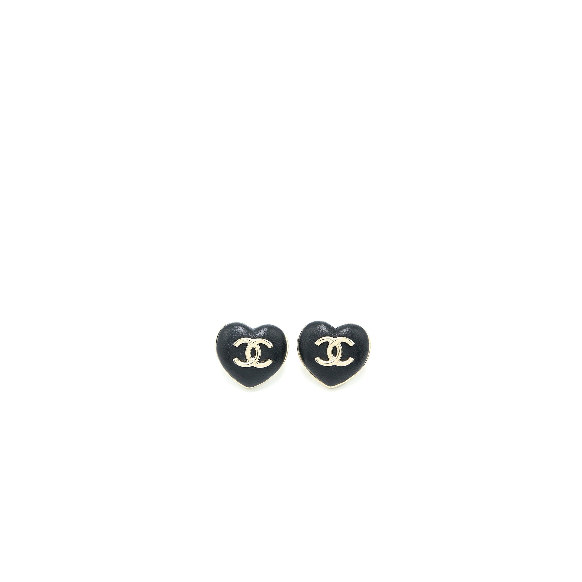 Chanel 22K CC Logo Heart Earrings Lambskin Light Gold Tone