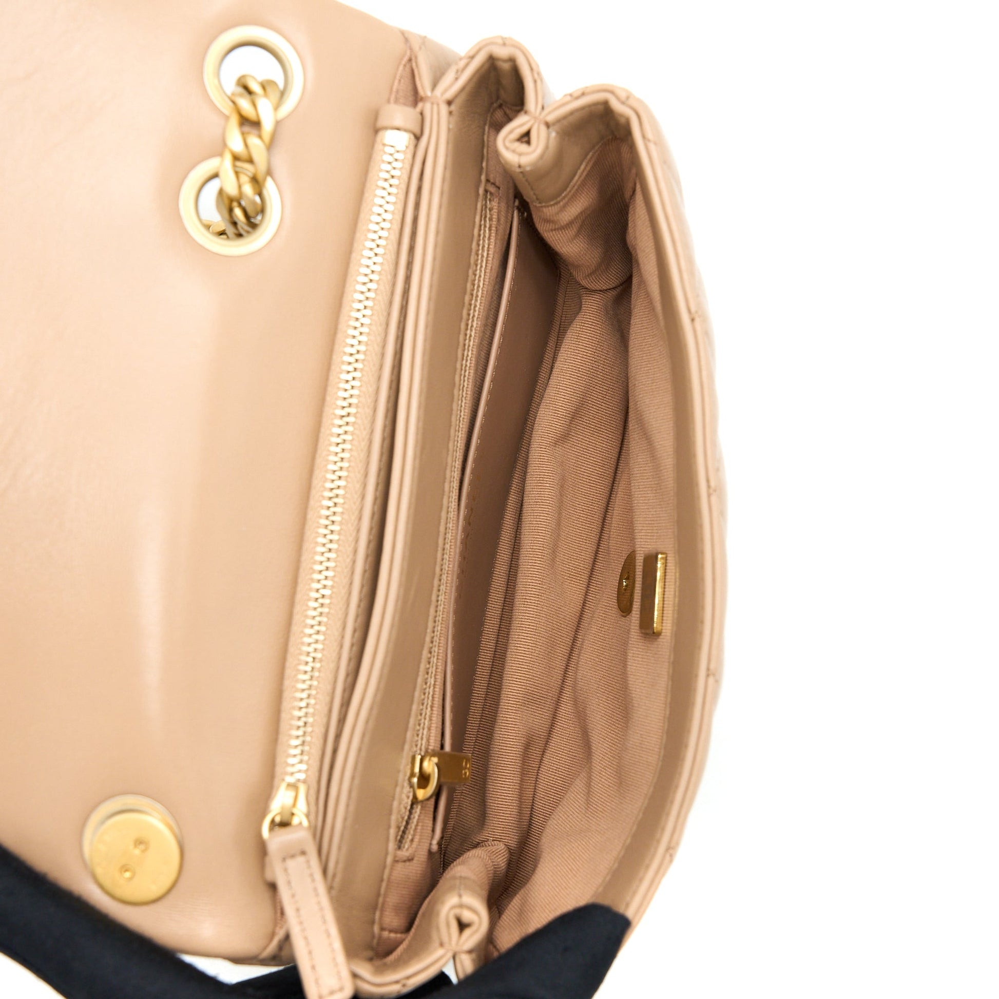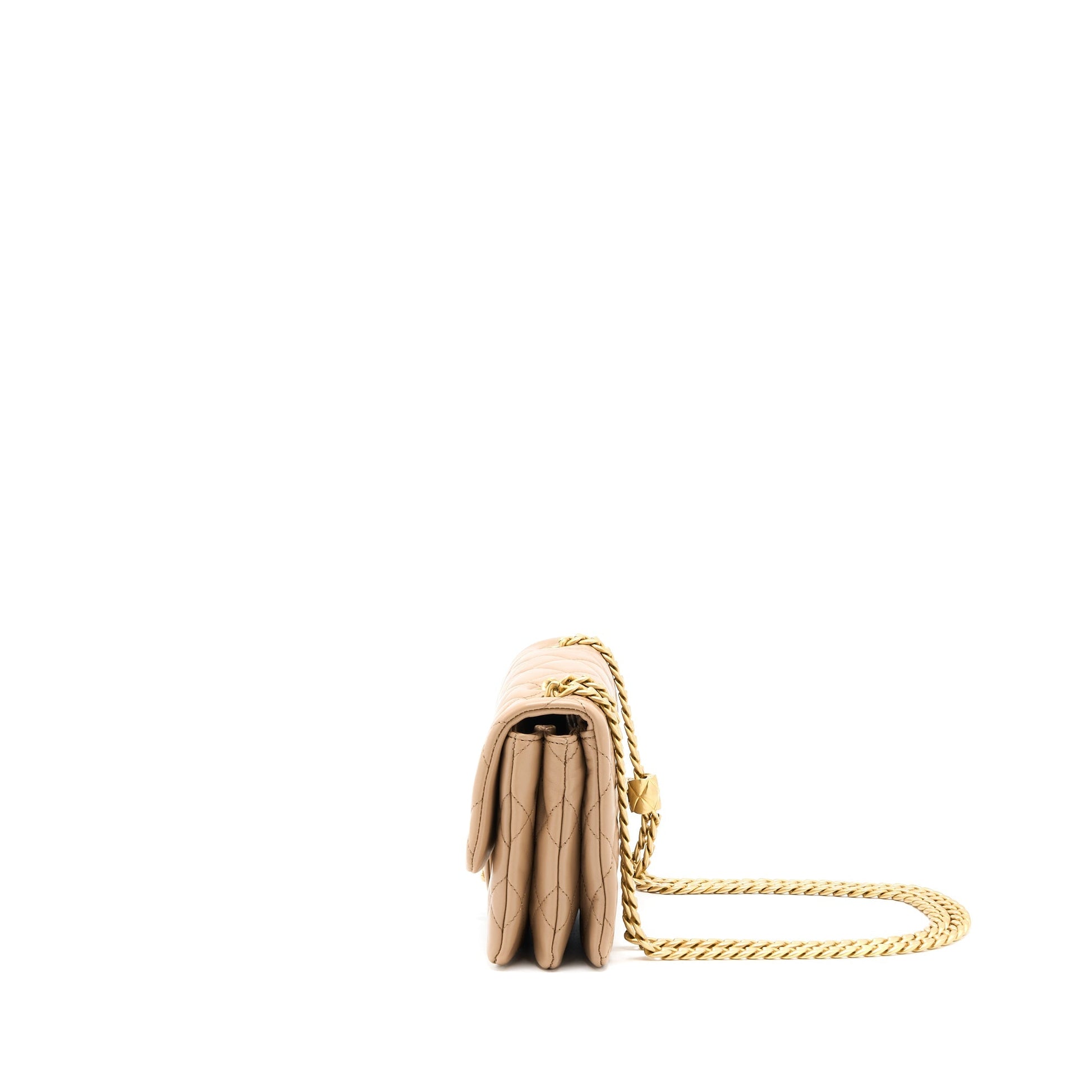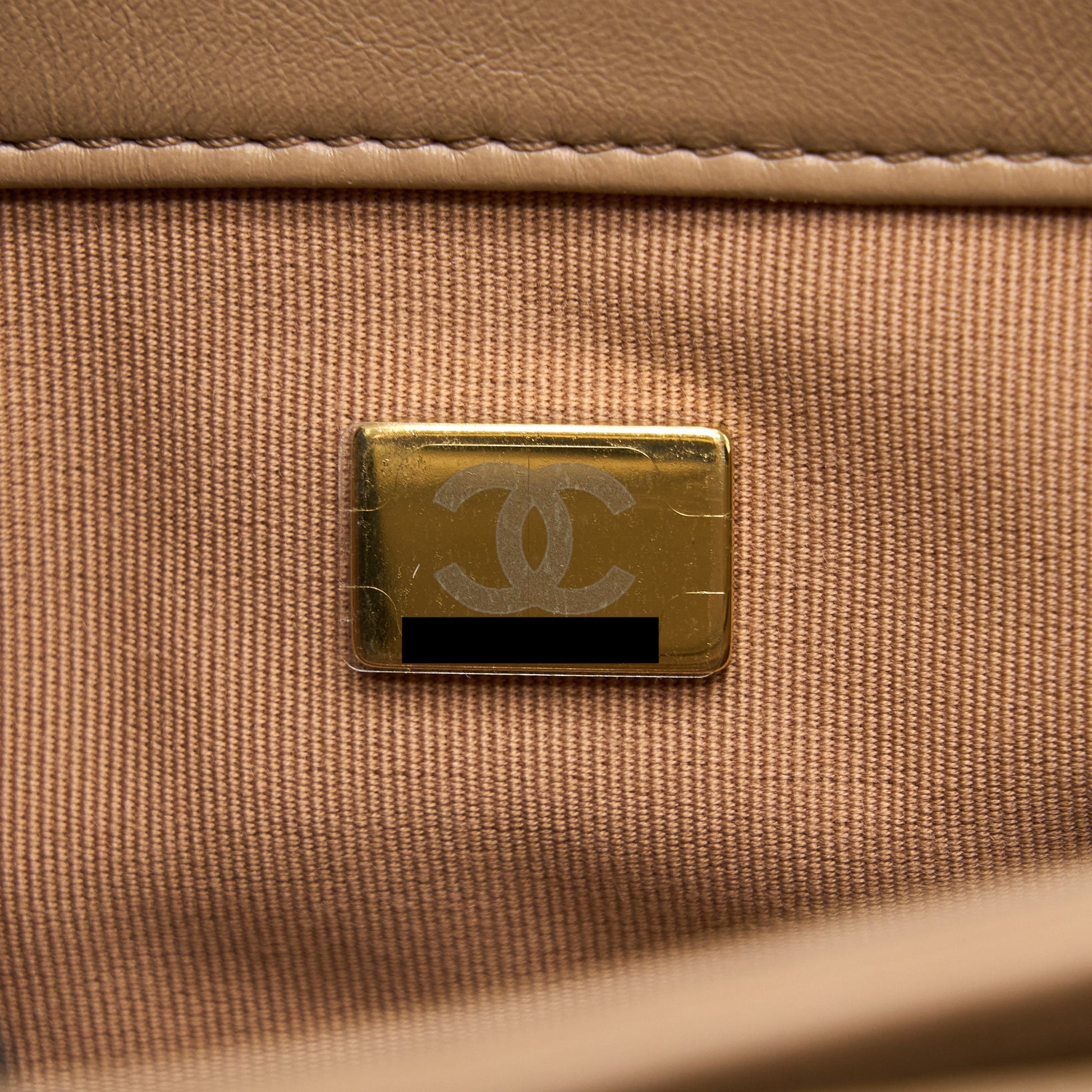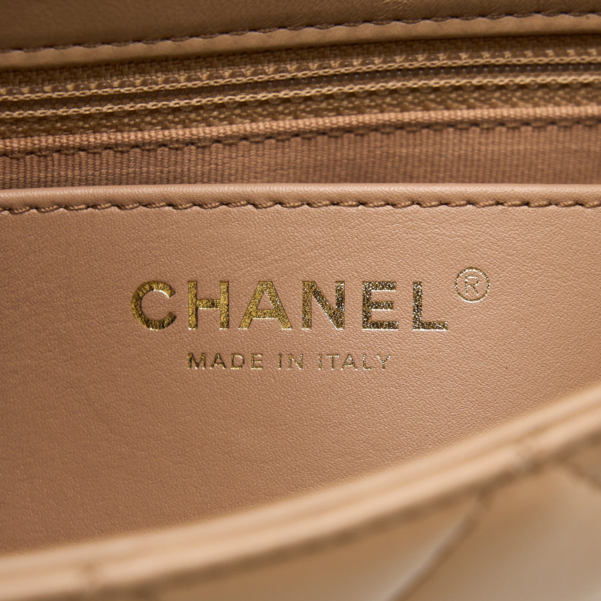 Chanel 22K Gold Pillar Adjustable Chain Flap Bag Lambskin Beige GHW (Microchip)