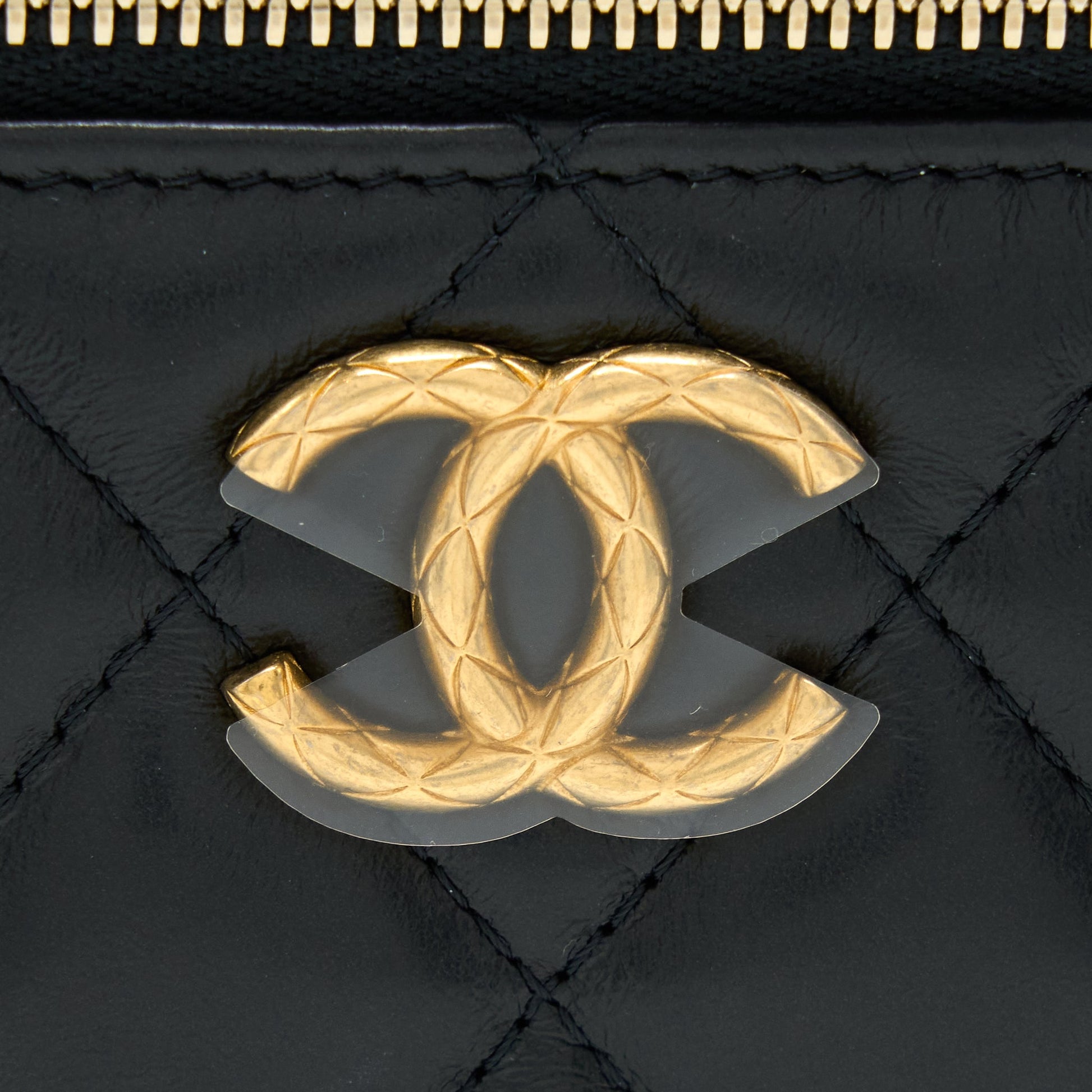 Chanel 22K Gold Pillar Adjustable Chain Long Vanity Lambskin Black GHW (Microchip)