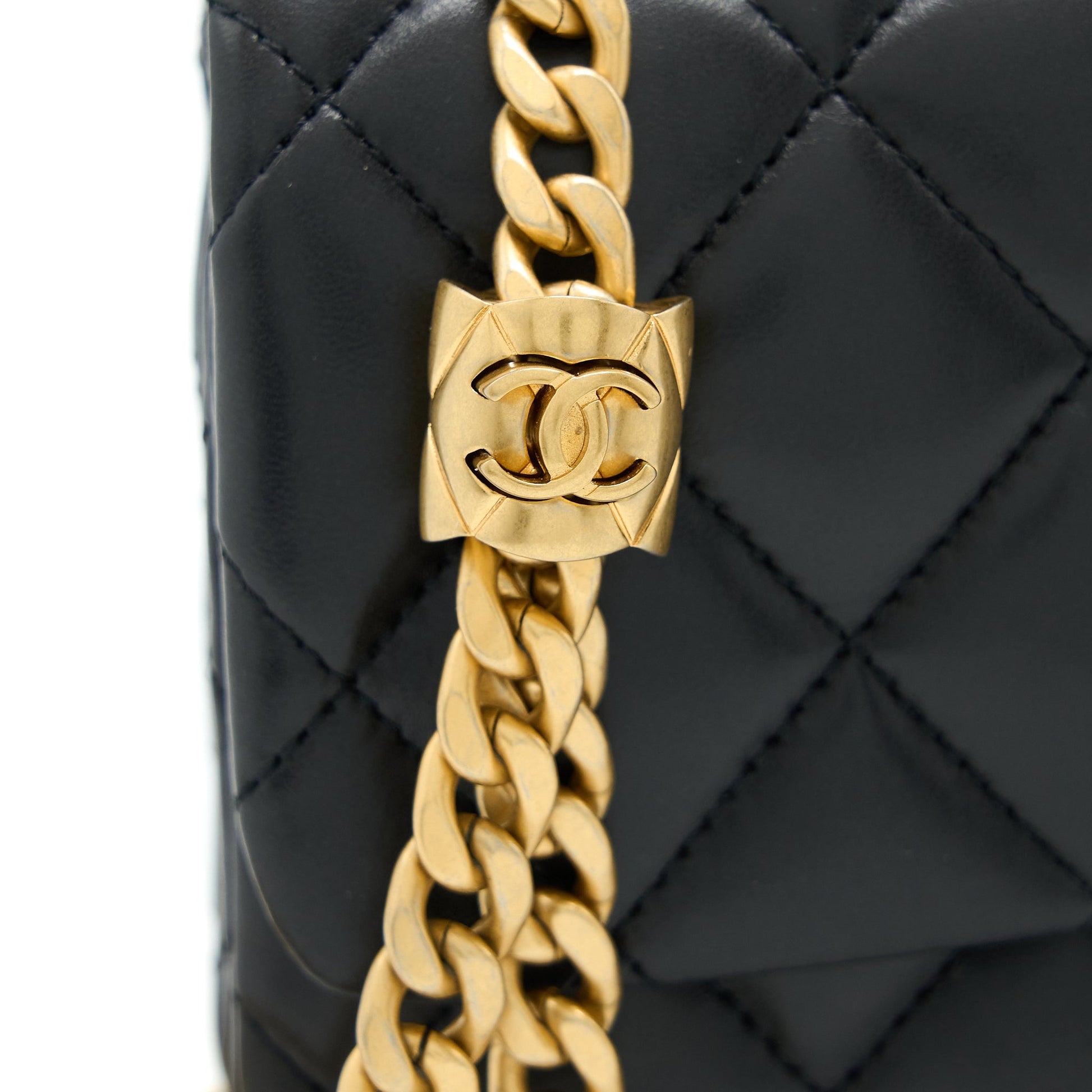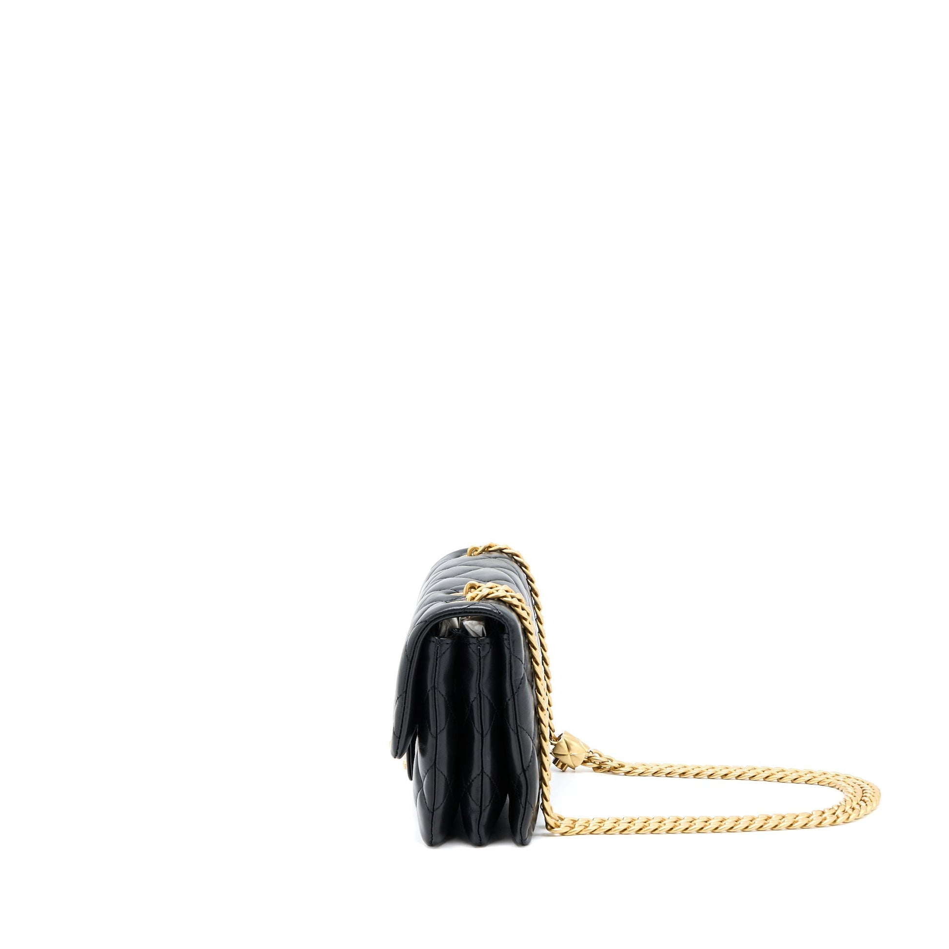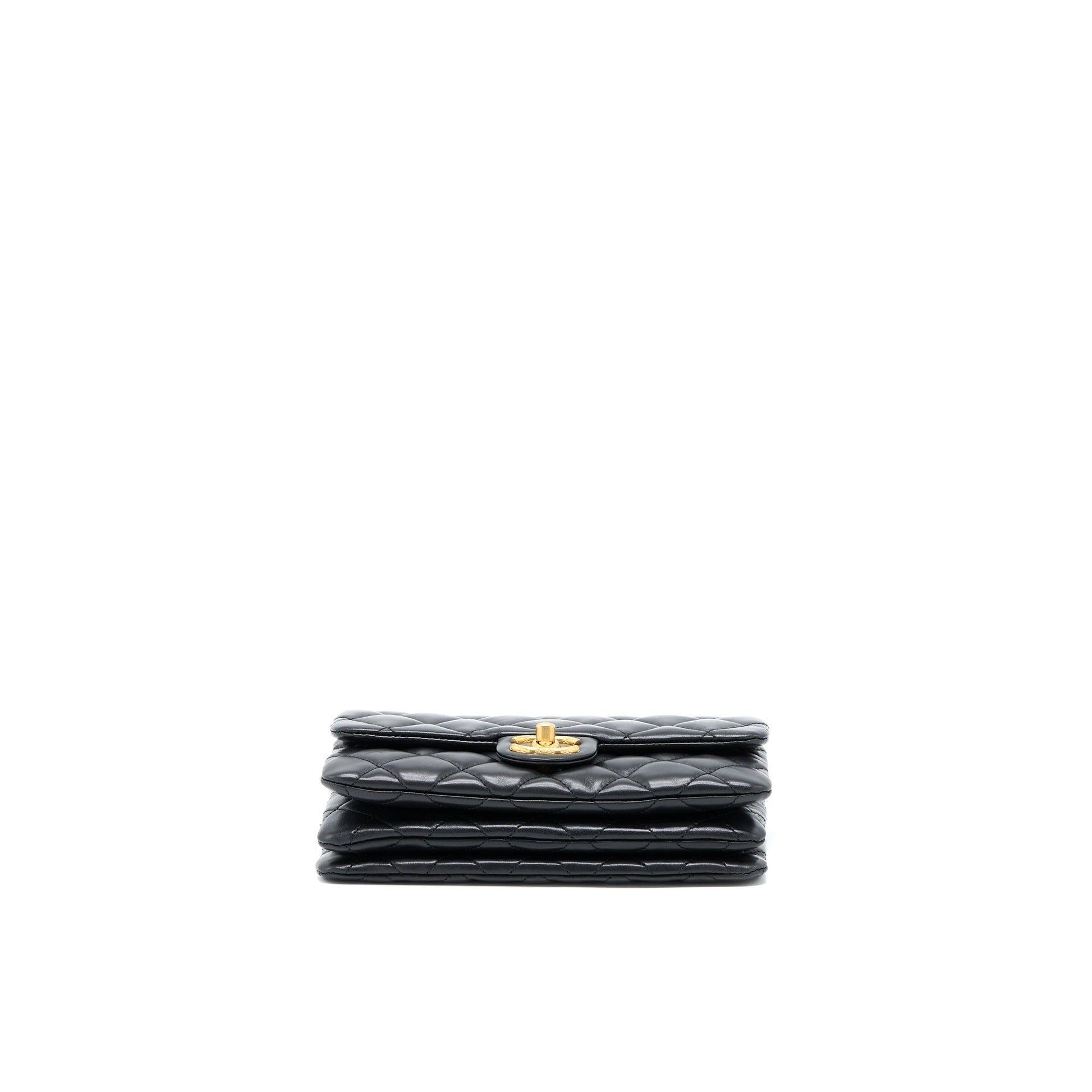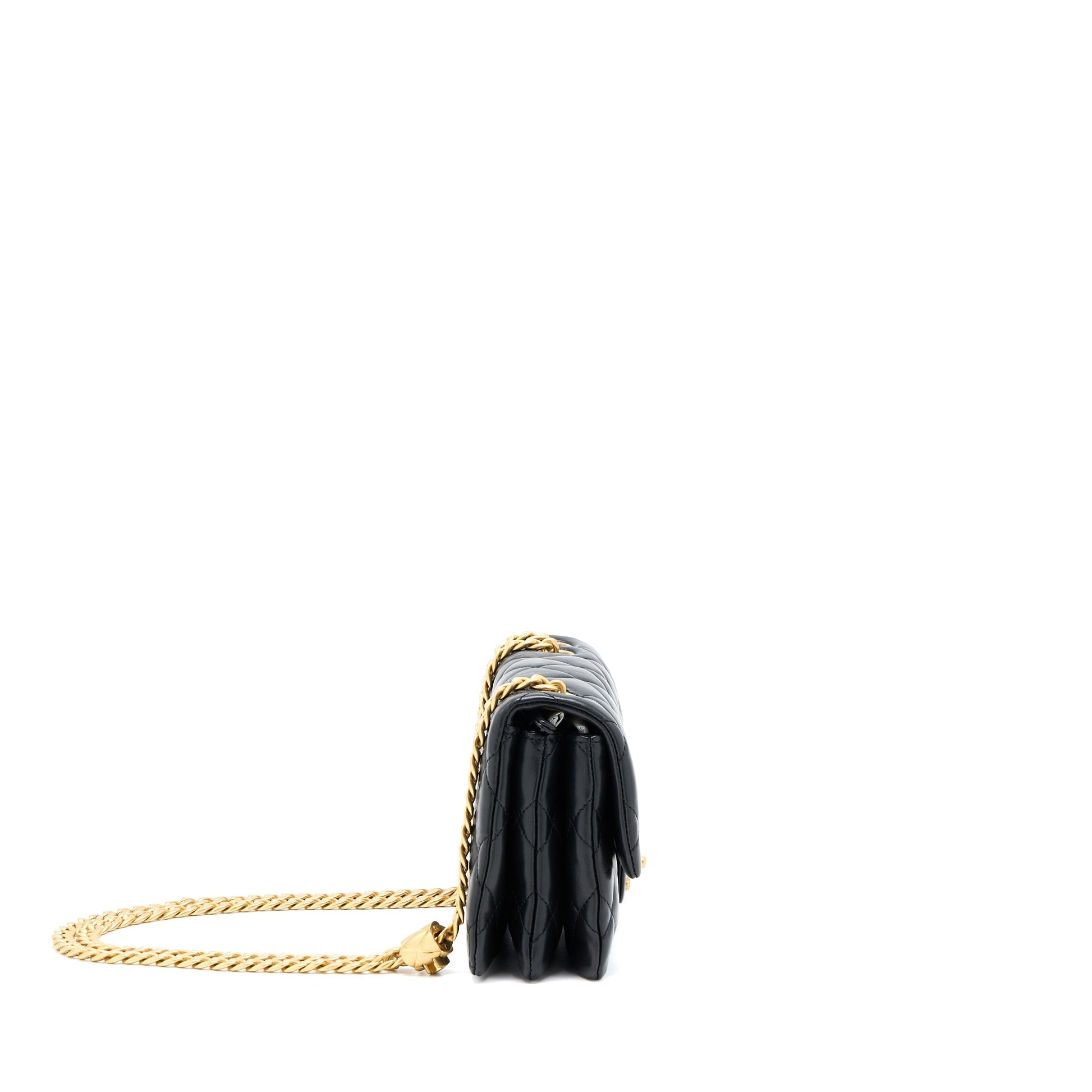 Chanel 22K Gold Pillar Adjustment Chain Flap Bag Lambskin Black GHW (Microchip)