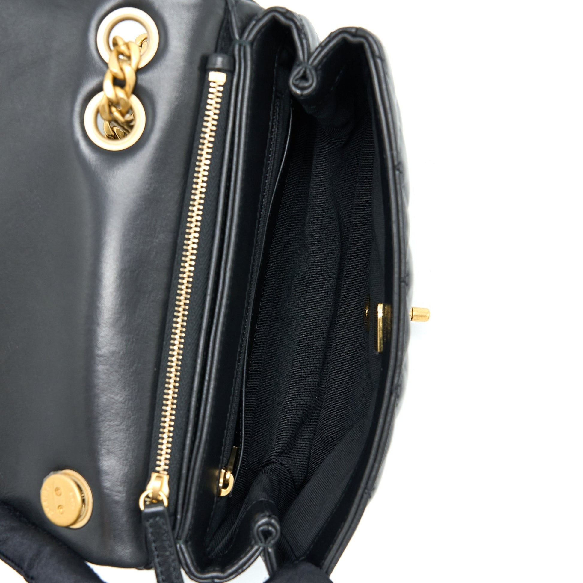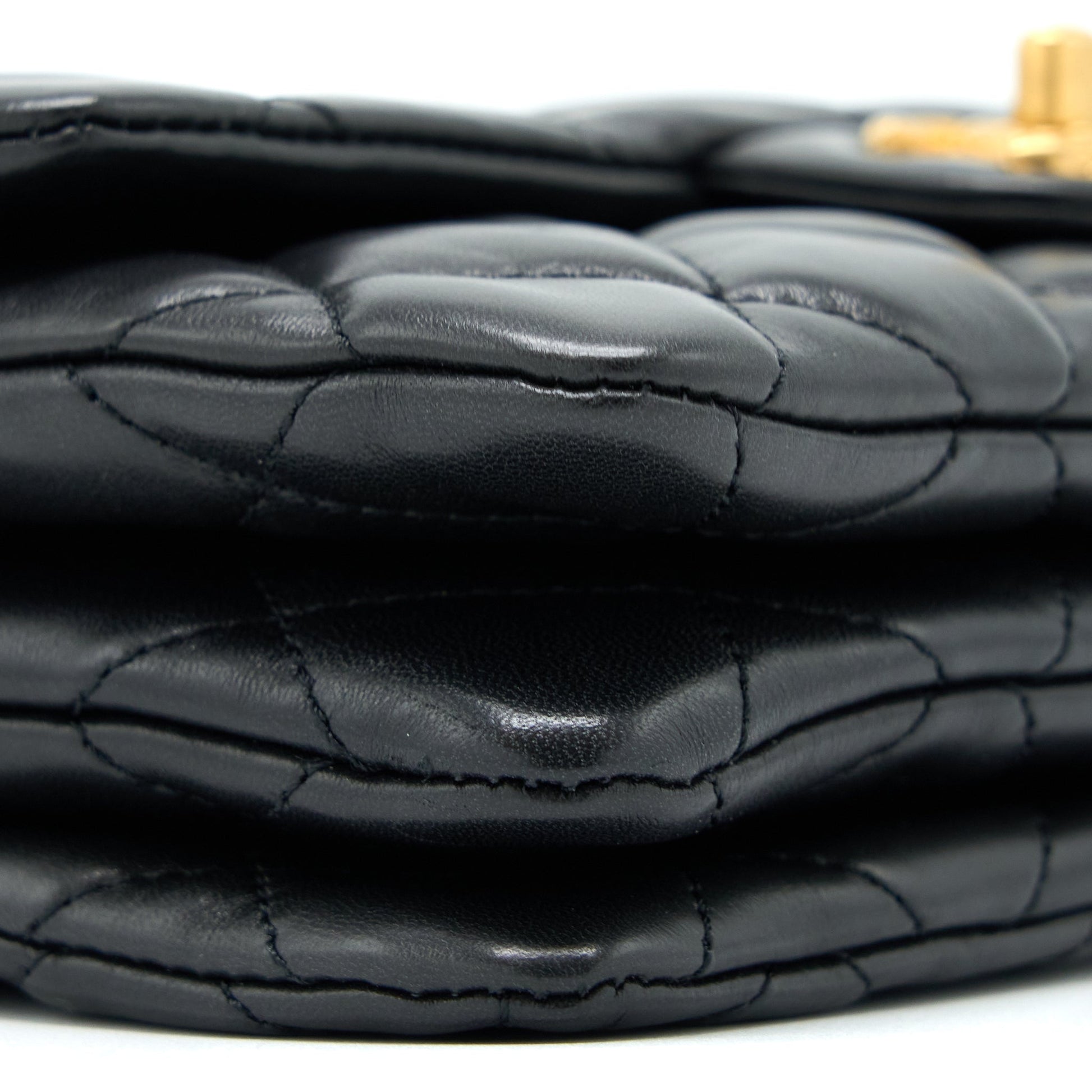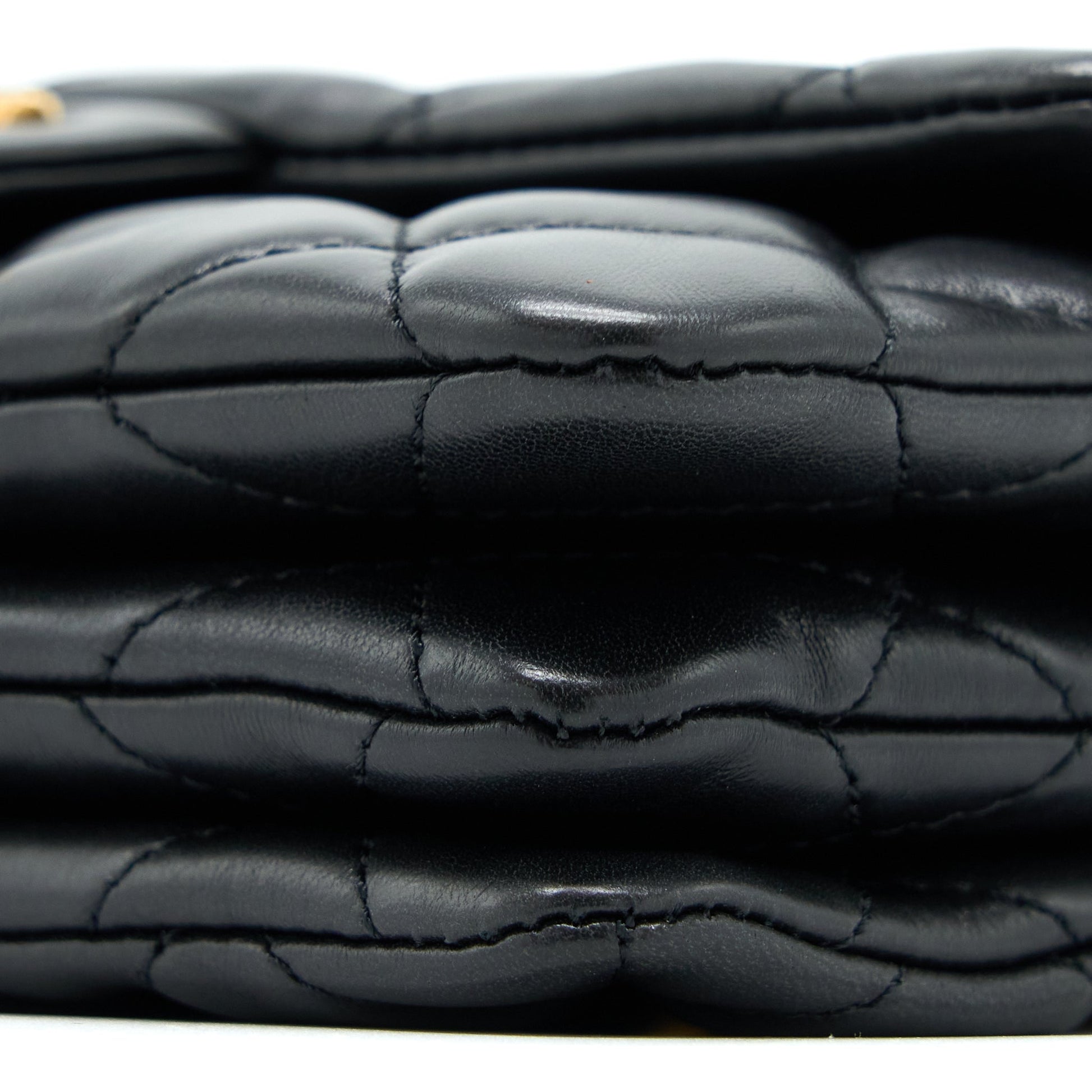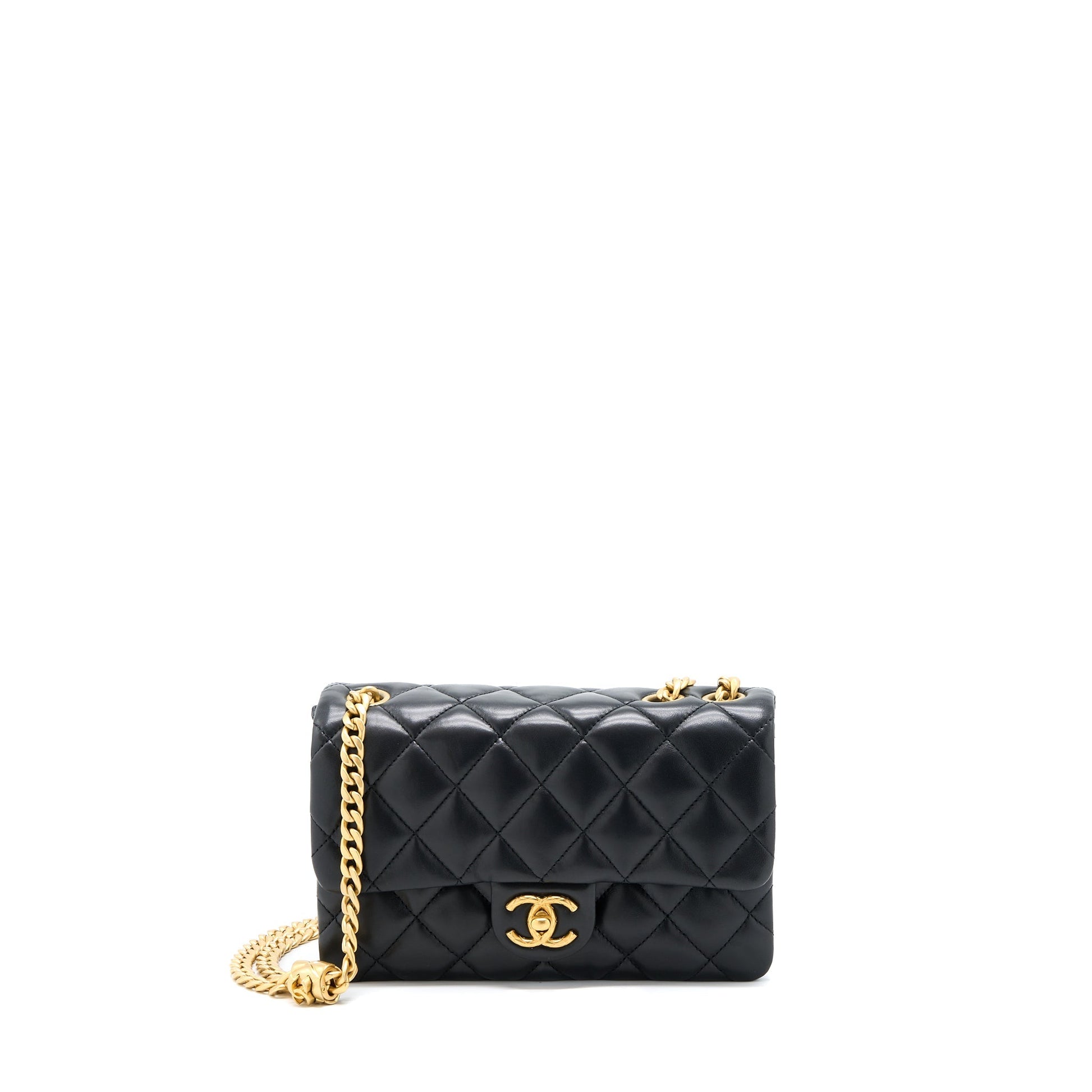 Chanel 22K Gold Pillar Adjustment Chain Flap Bag Lambskin Black GHW (Microchip)