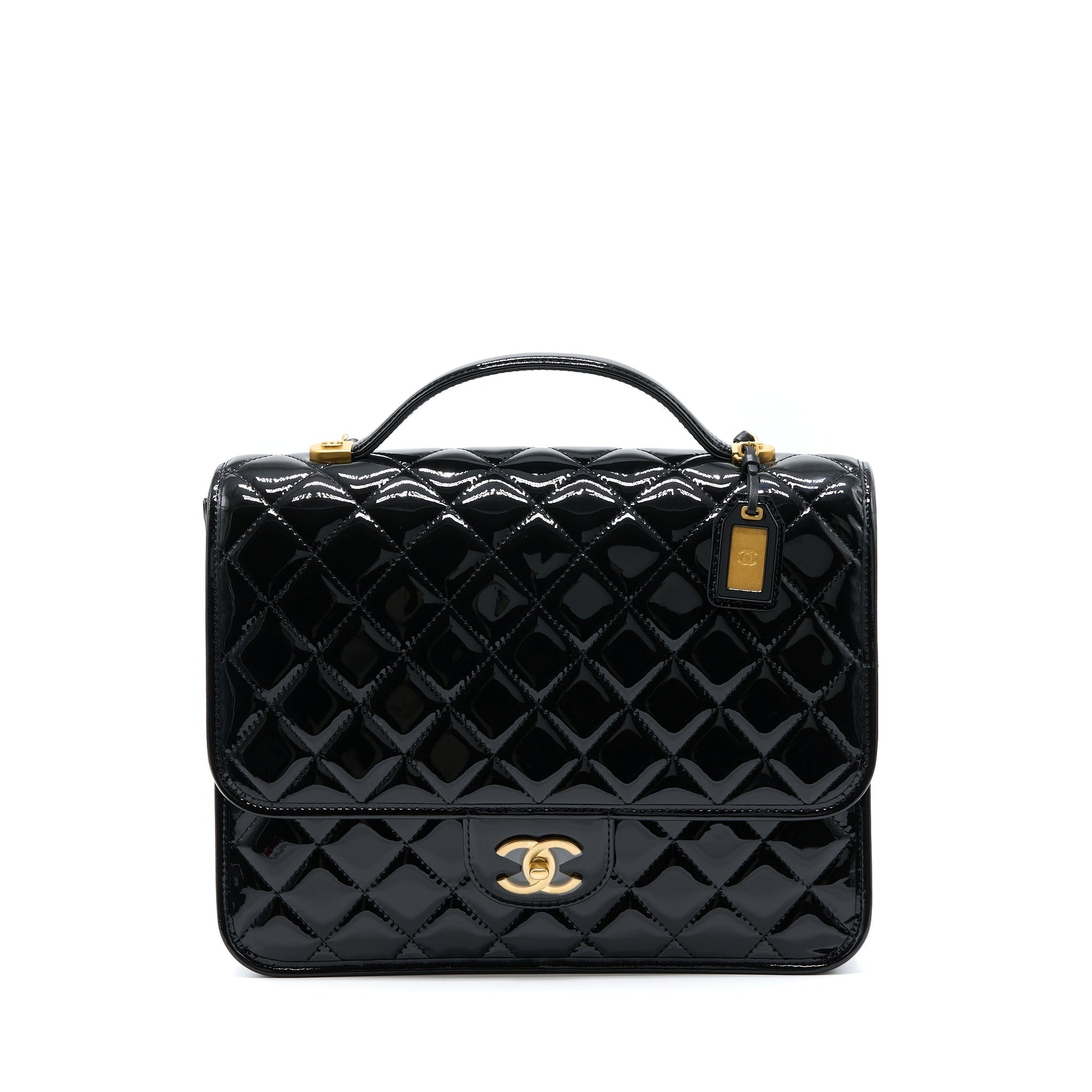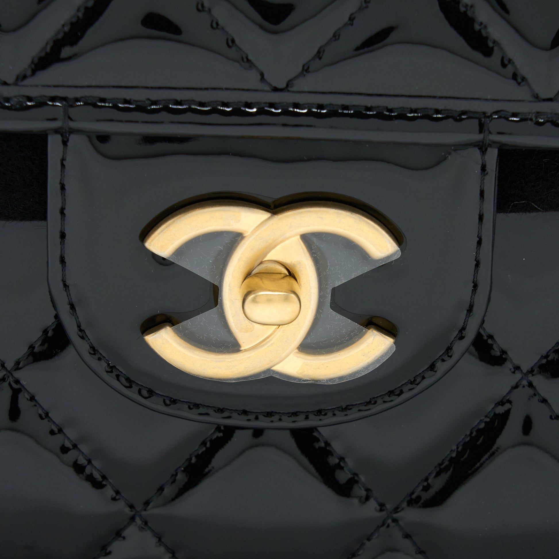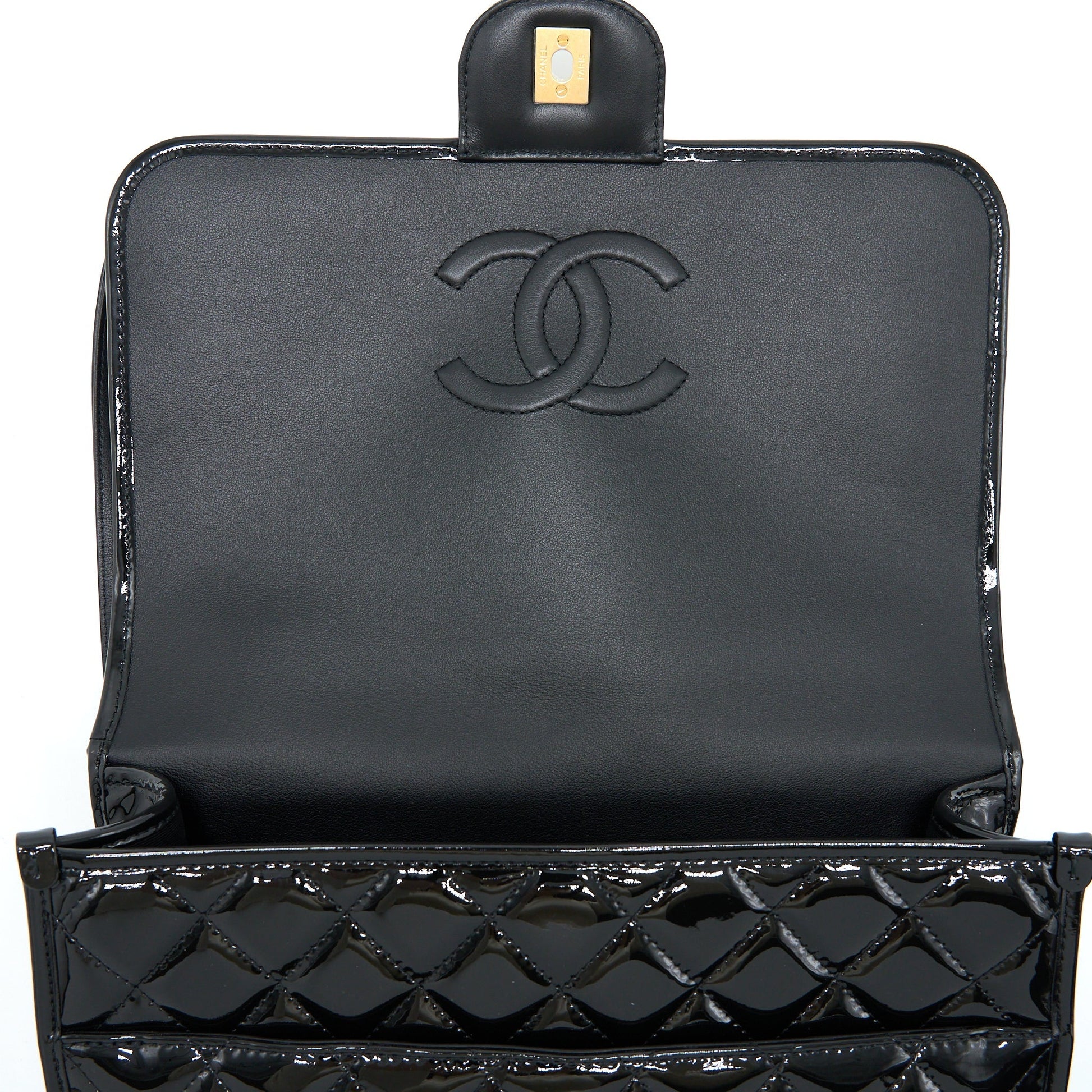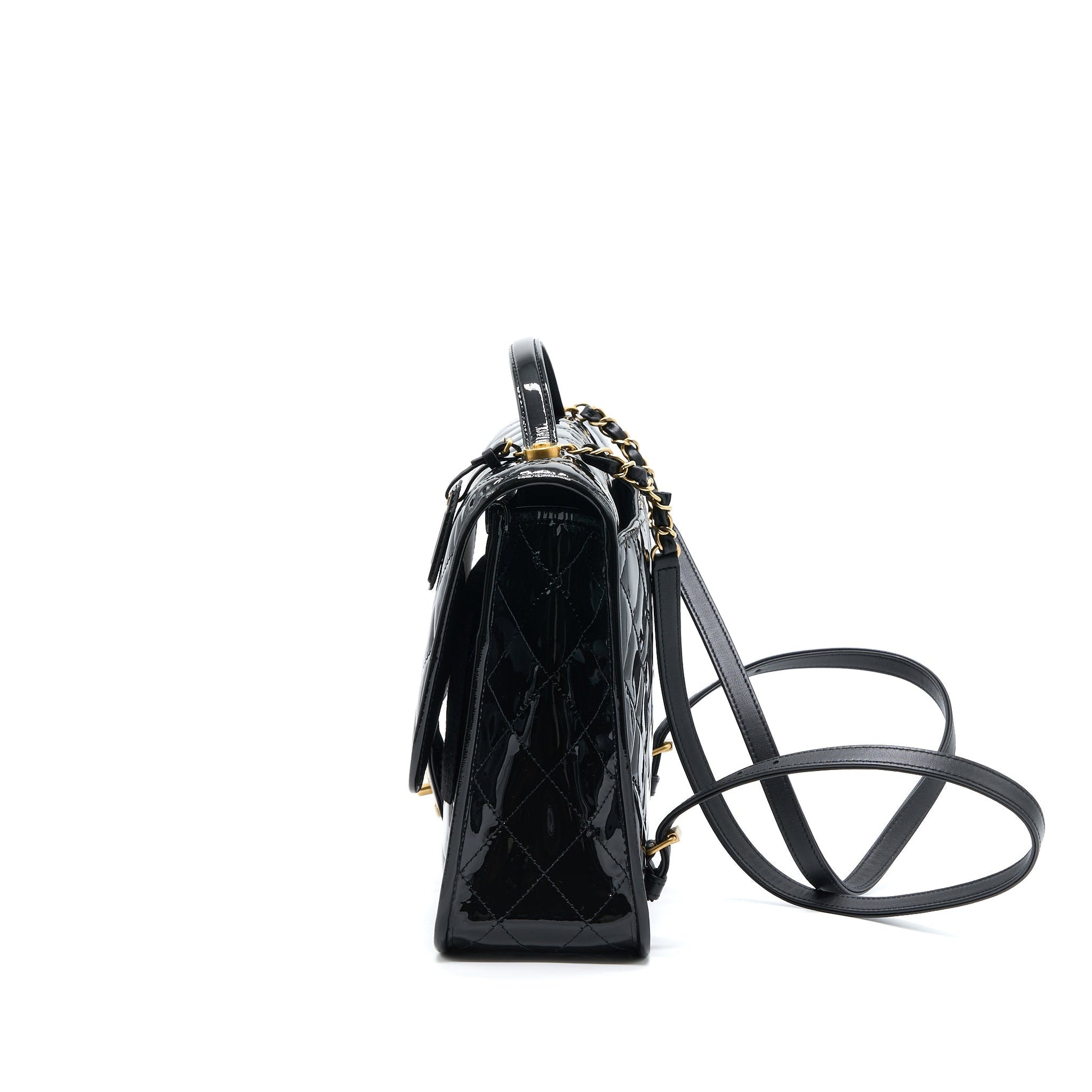 Chanel 22K Large Backpack Patent Black Brushed GHW (Microchip)