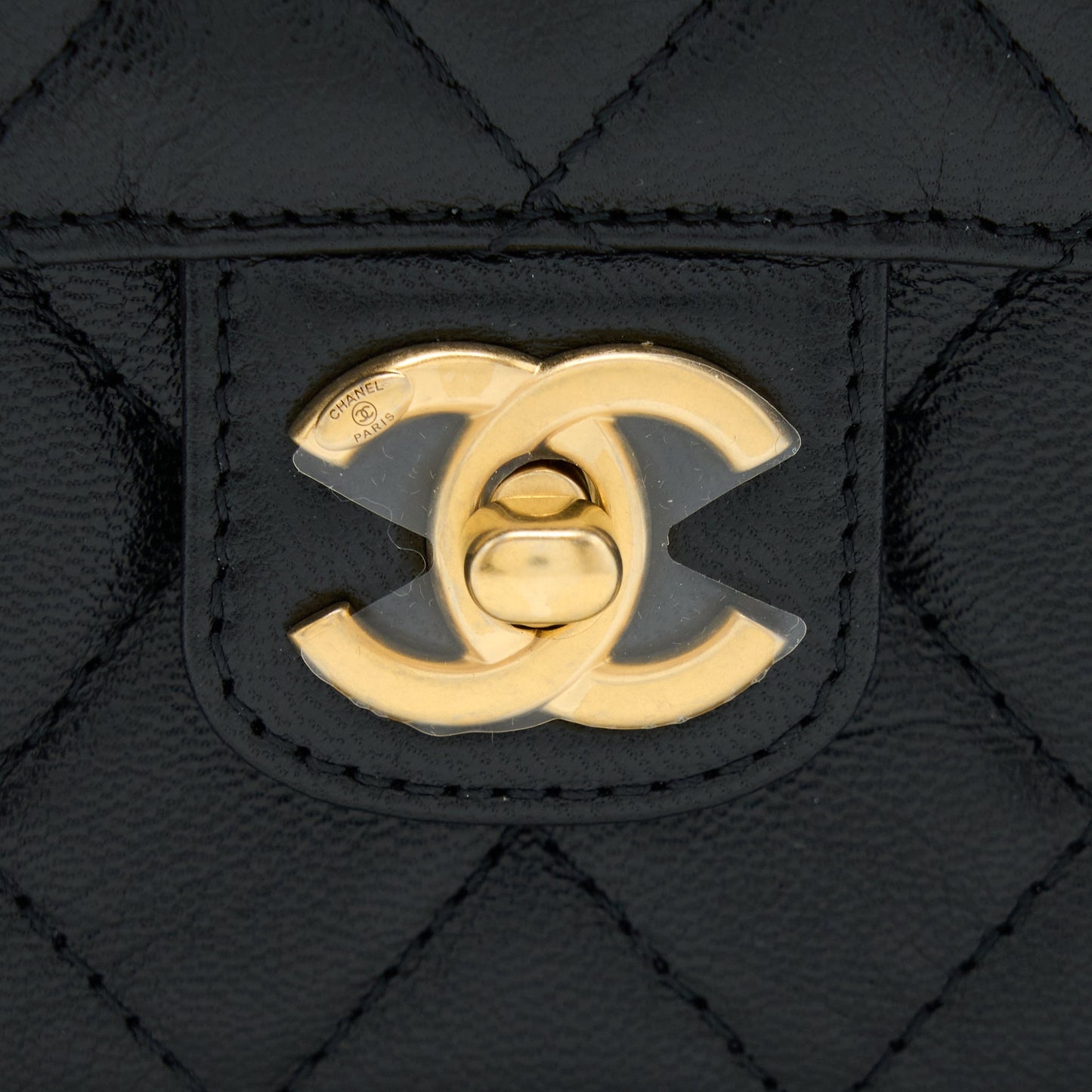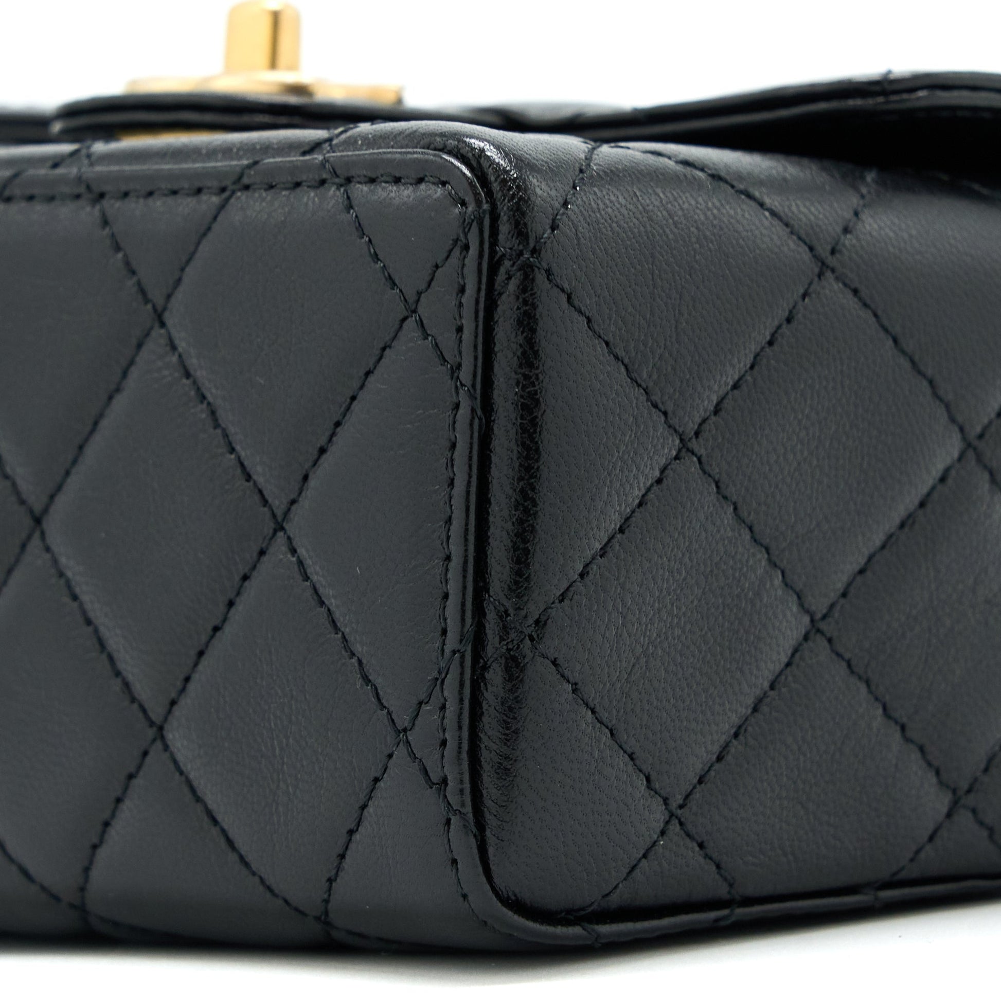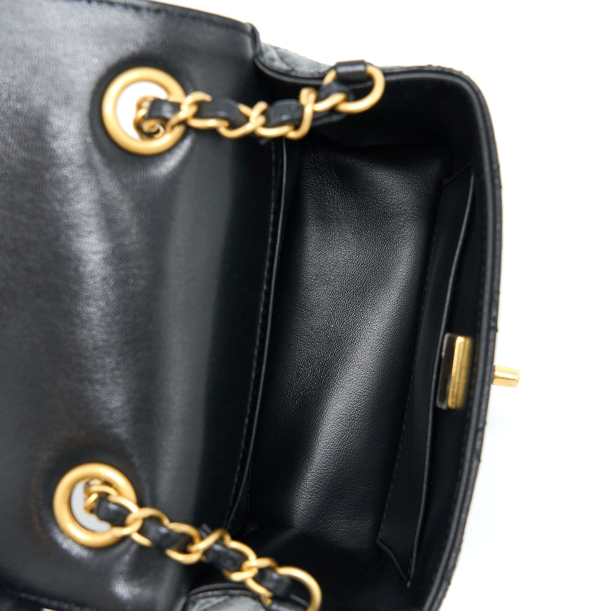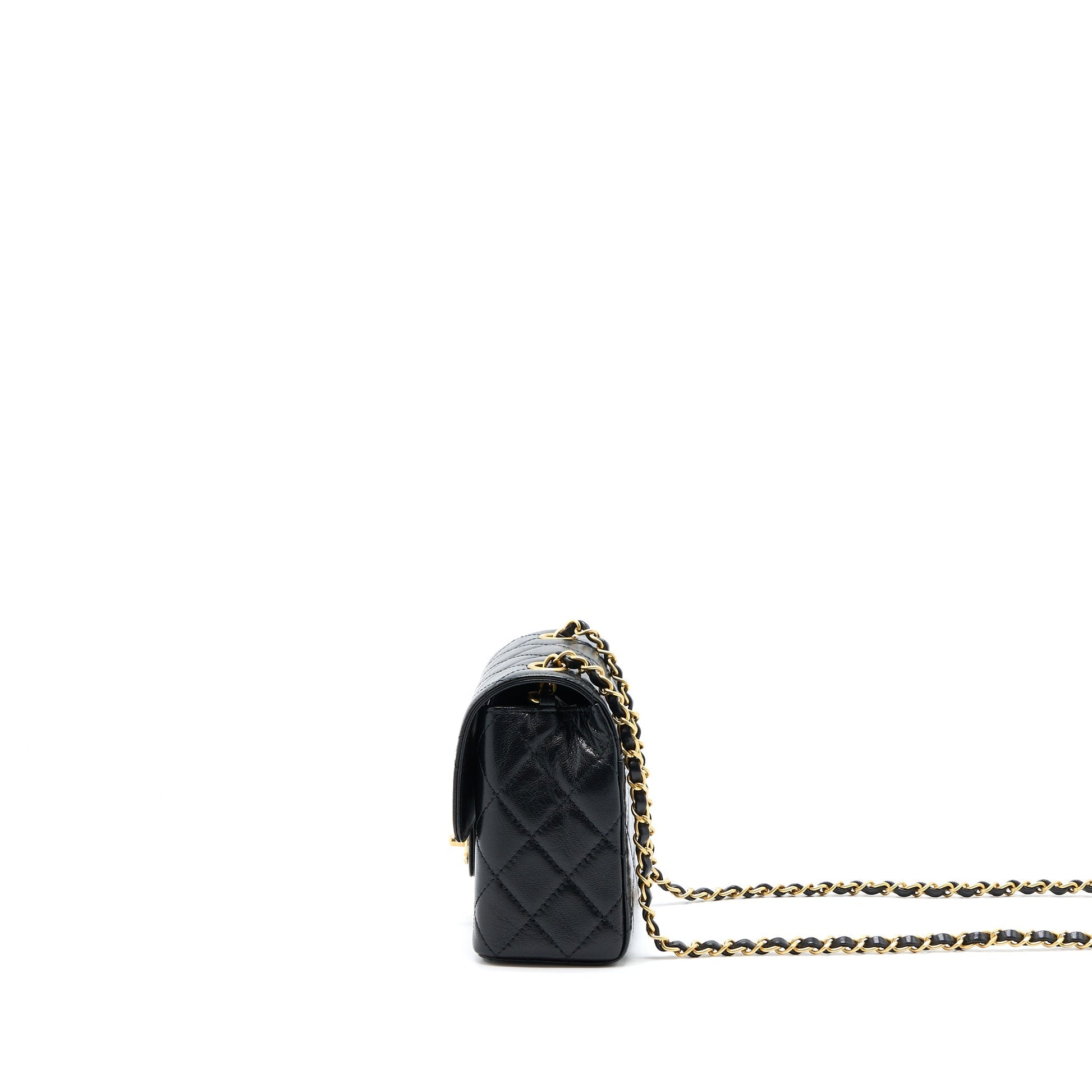 Chanel 22K Retro Classic New Mini Square Flap Bag Goatskin Black GHW(Microchip)