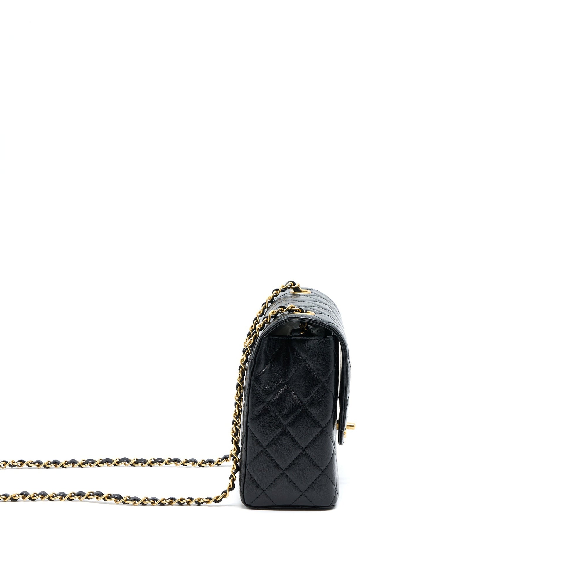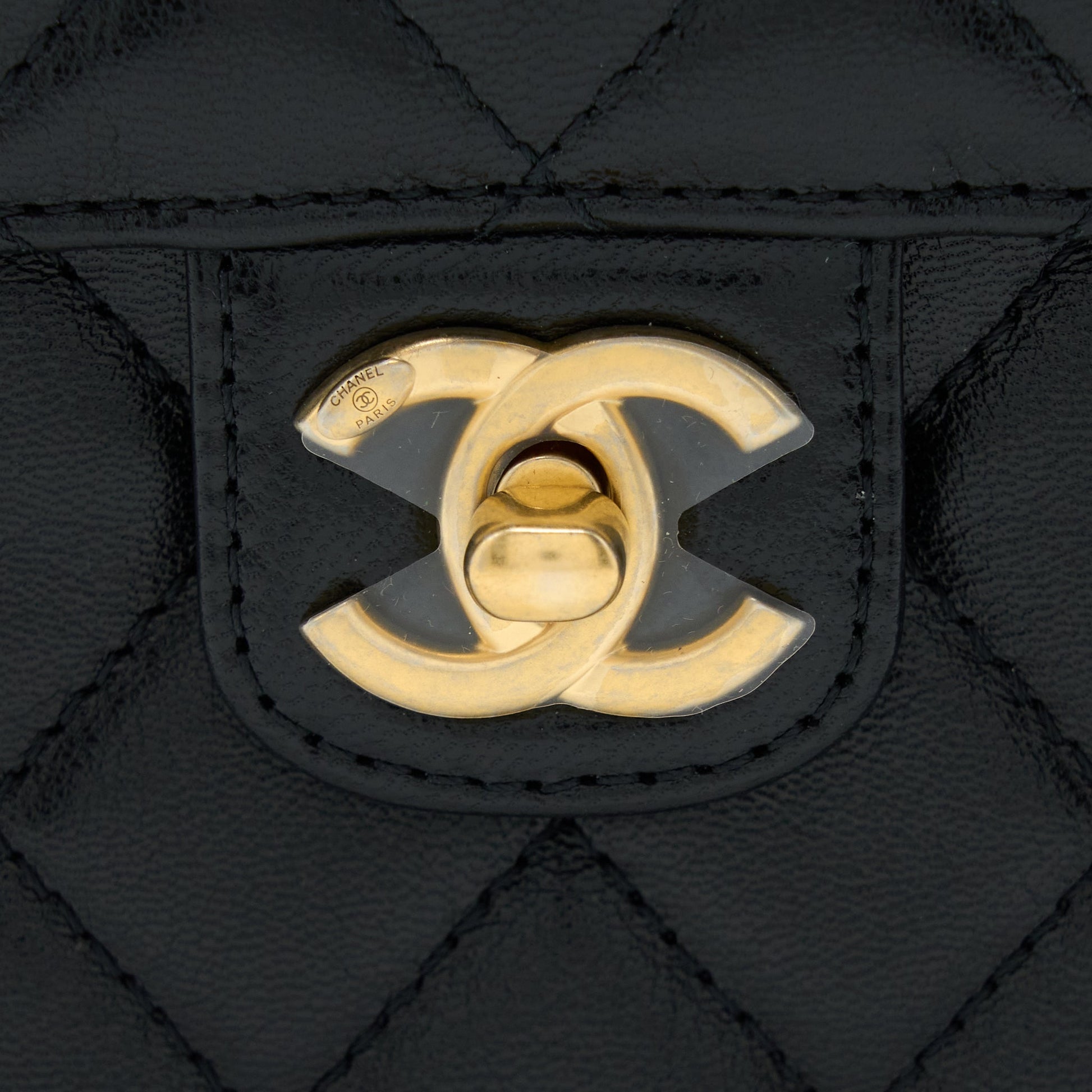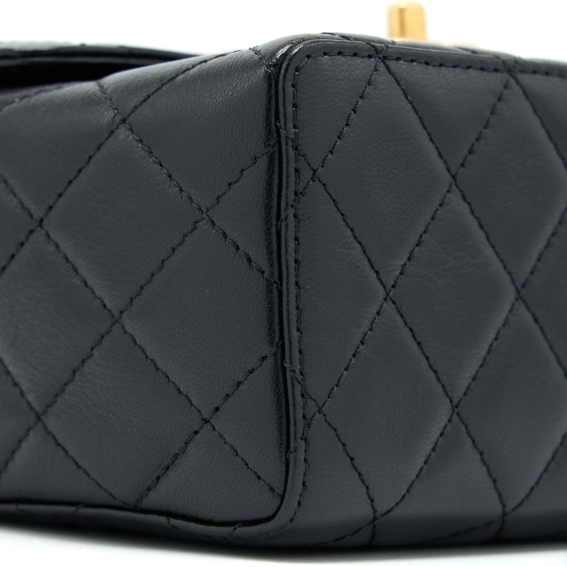 Chanel 22K Retro Classic New Square Flap Bag Goatskin Black with GHW (Microchip)