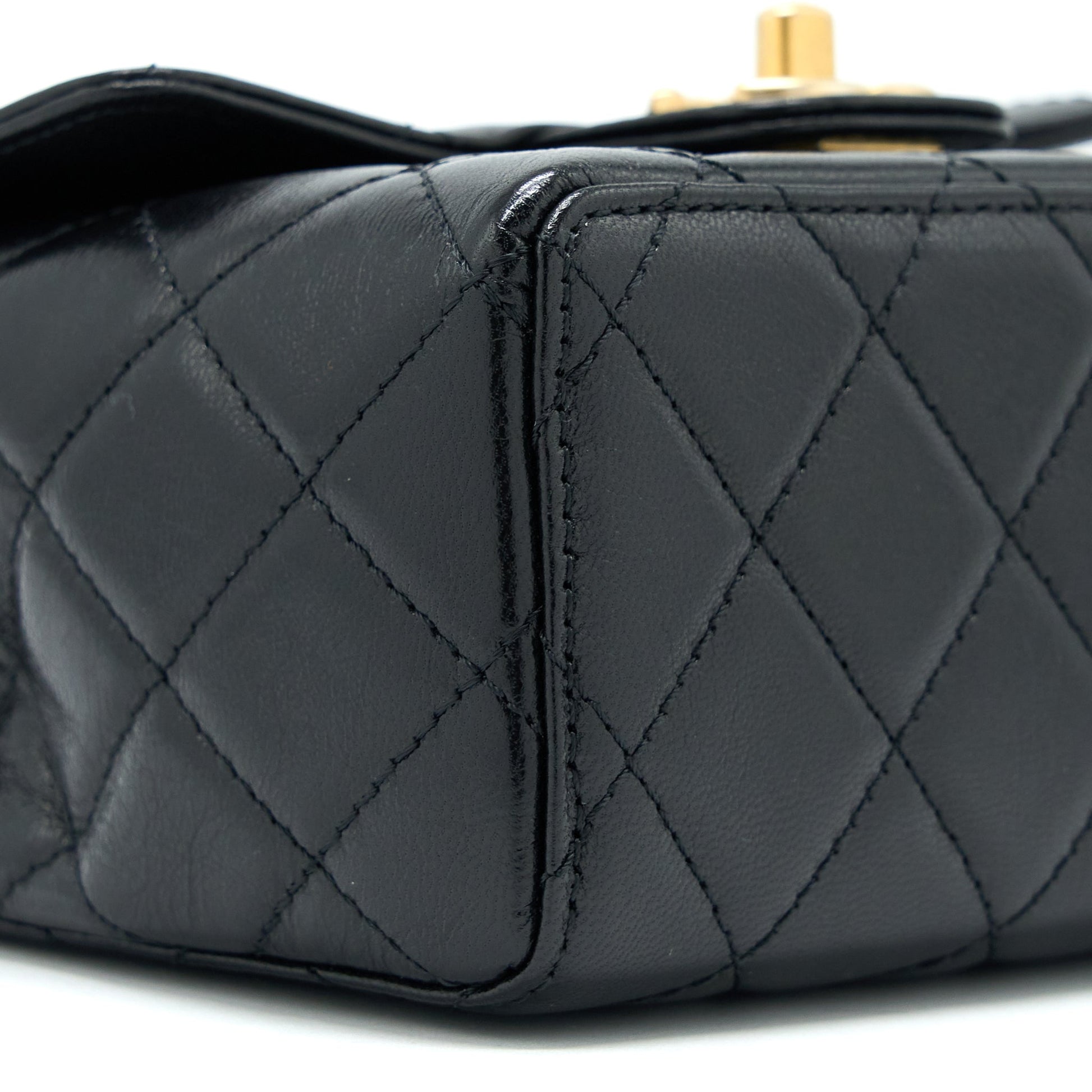 Chanel 22K Retro Classic New Square Mini Flap Bag Goatskin Black GHW (Microchip)