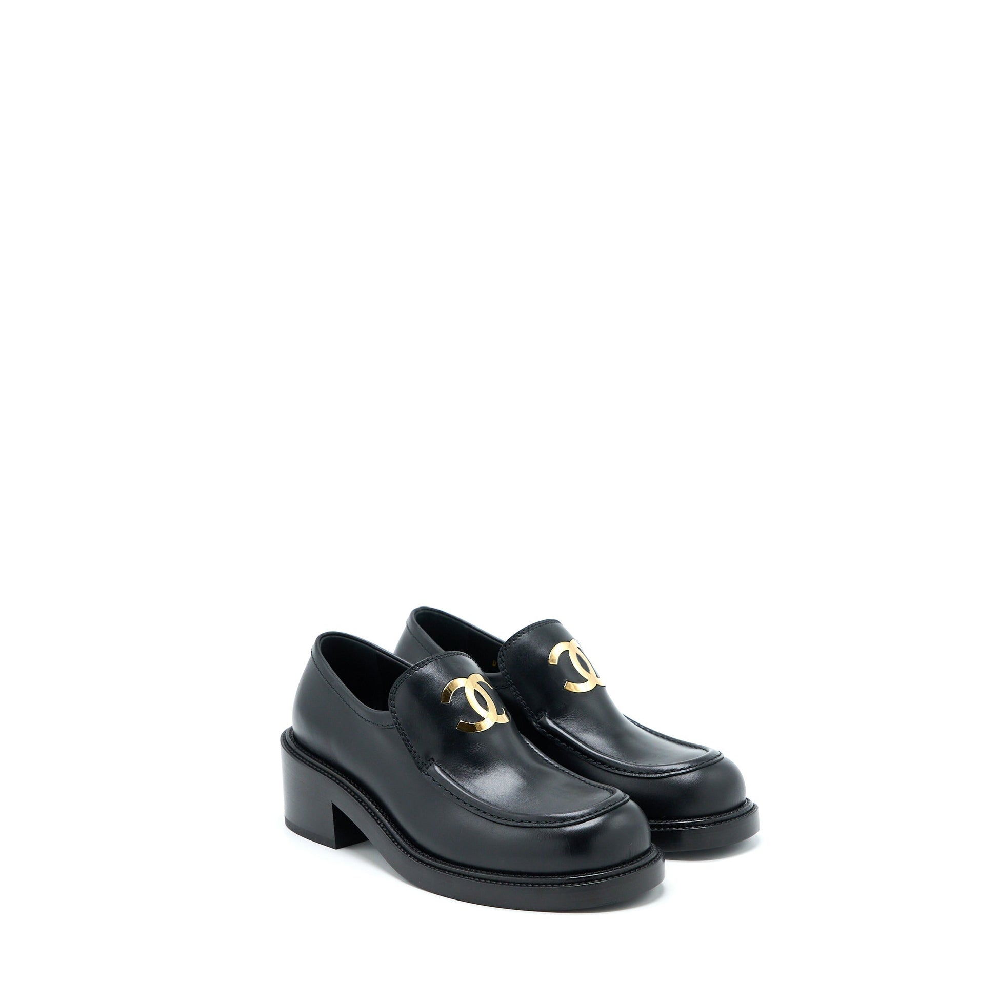 Chanel 22K Size 38 Loafer Leather Black GHW