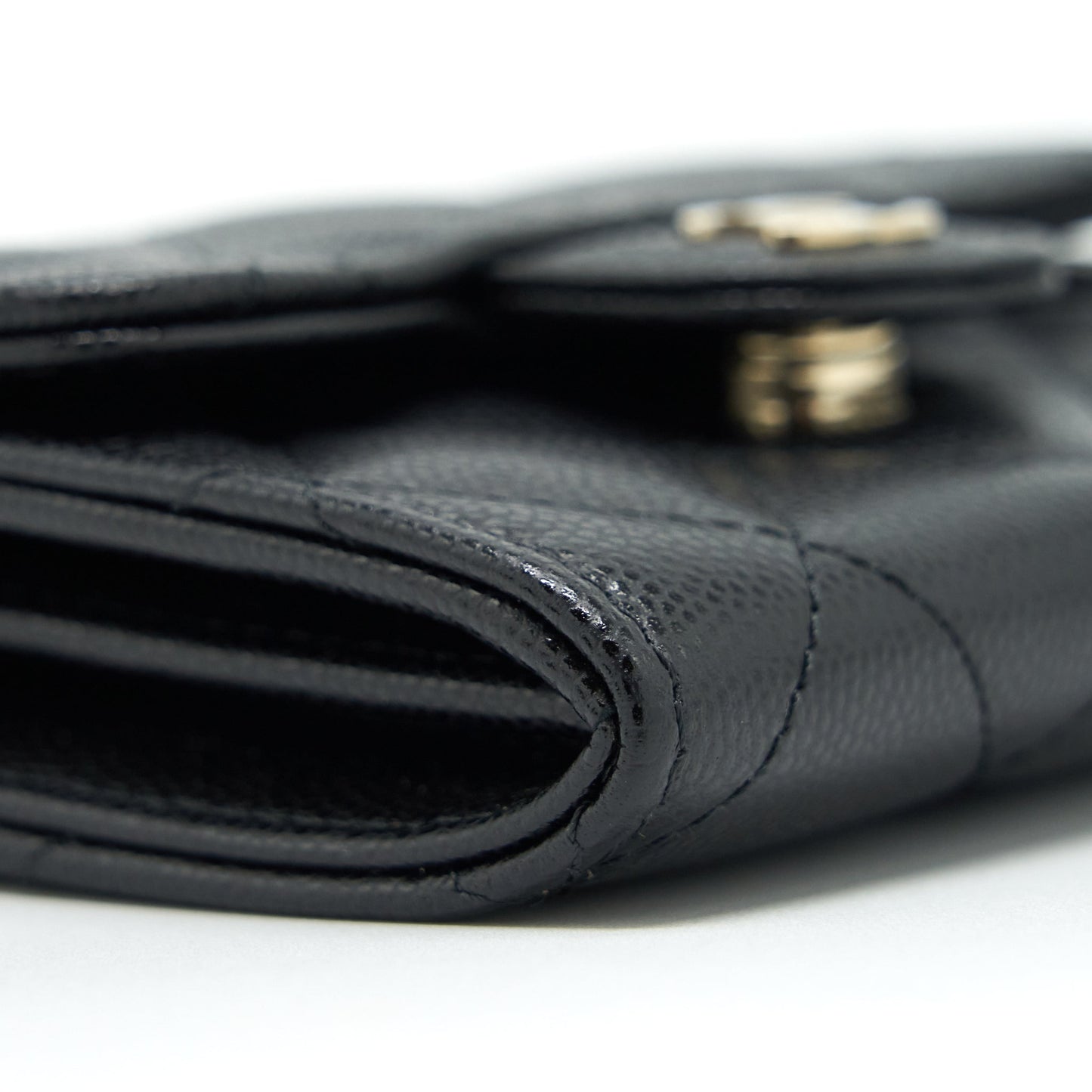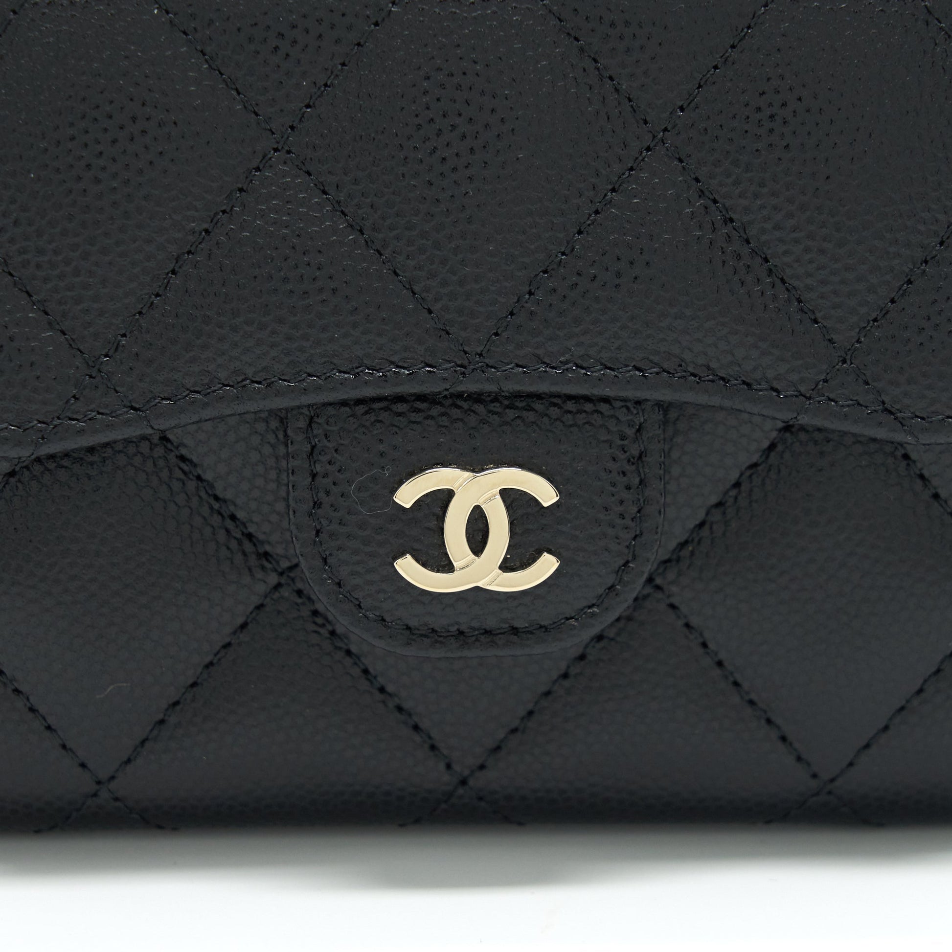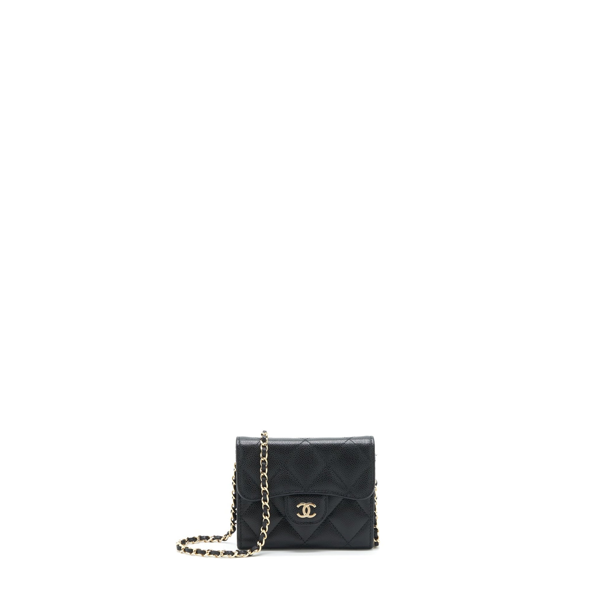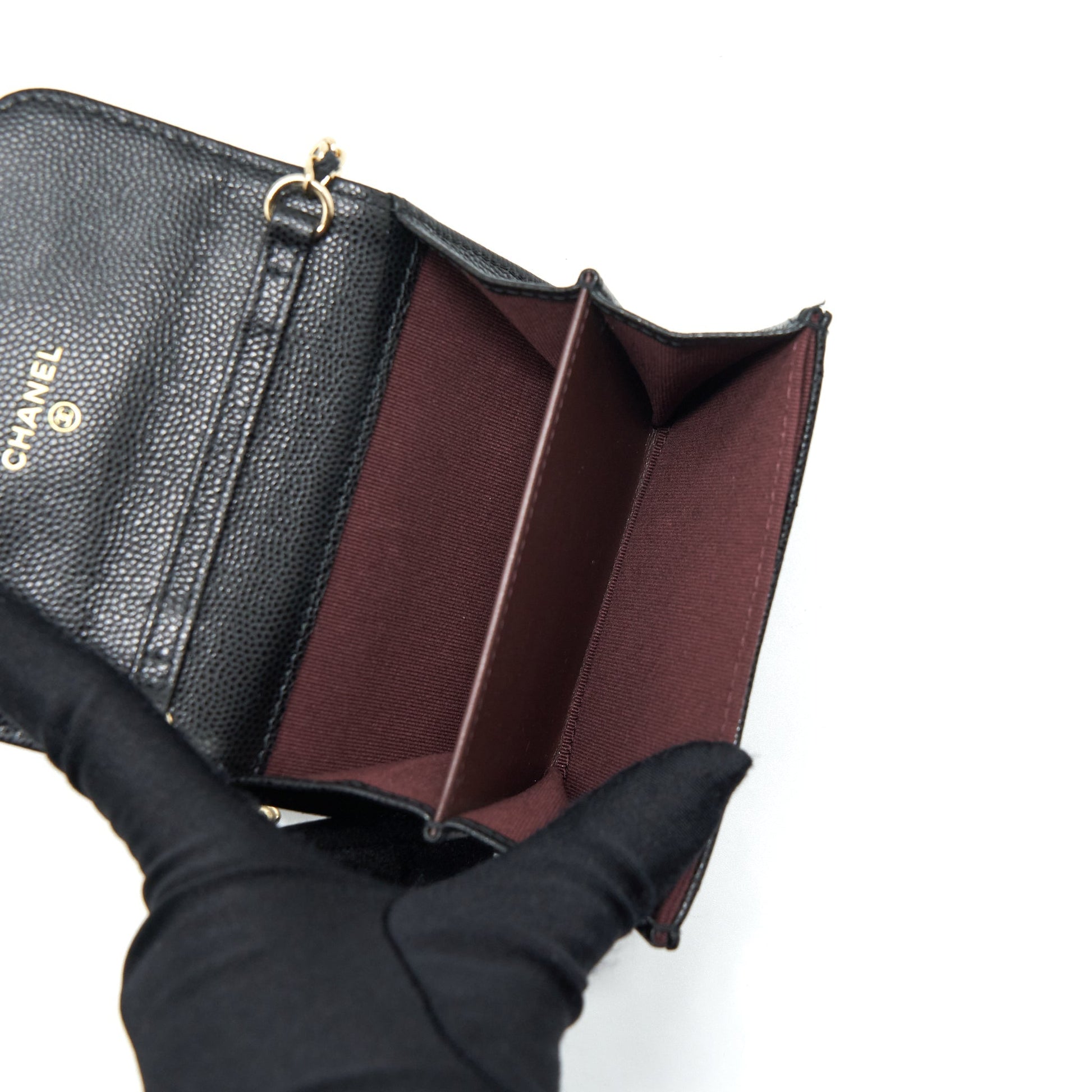 Chanel 22P Card Holder With Chains Caviar Black LGHW