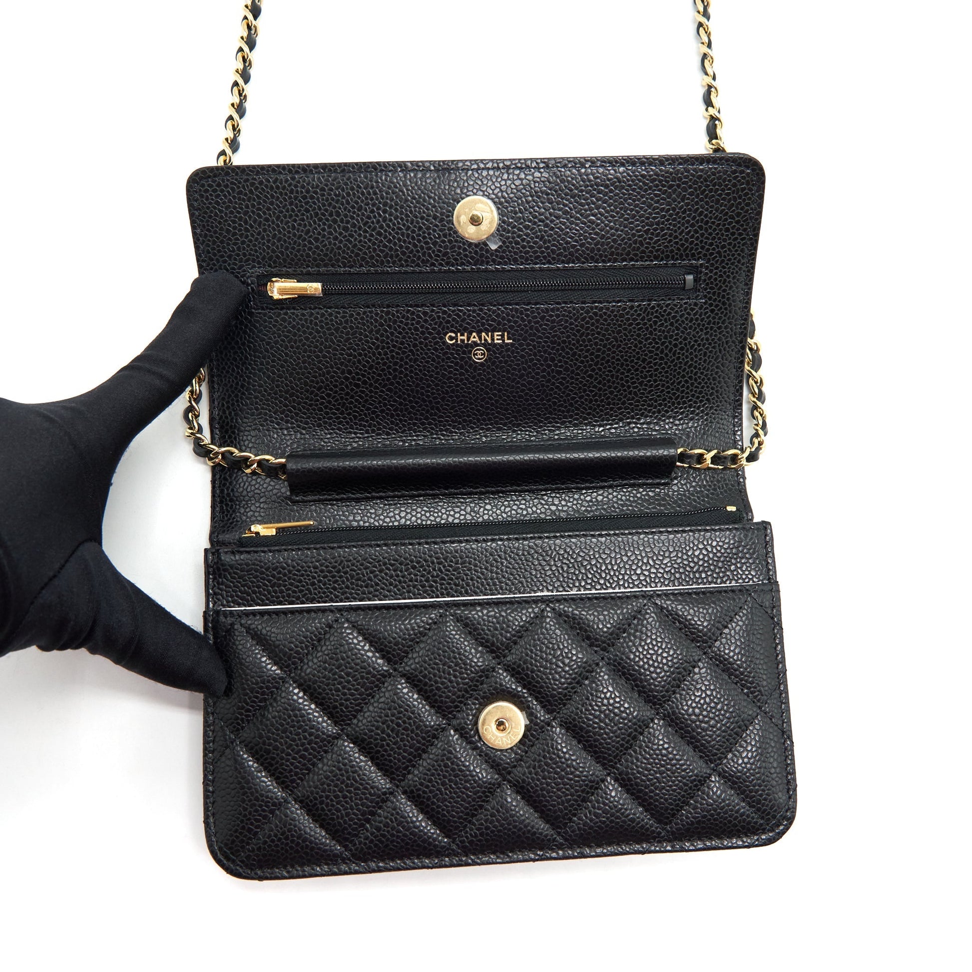 Chanel 22P Classic Wallet On Chain Caviar Black LGHW (Microchip)