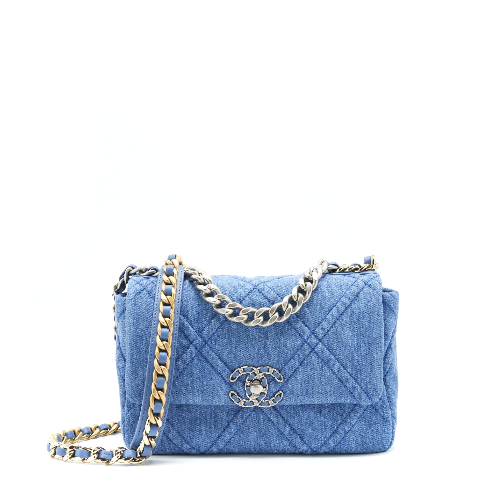 Chanel 22P Denim Small 19 Bag light blue Gold/Sliver Hardware