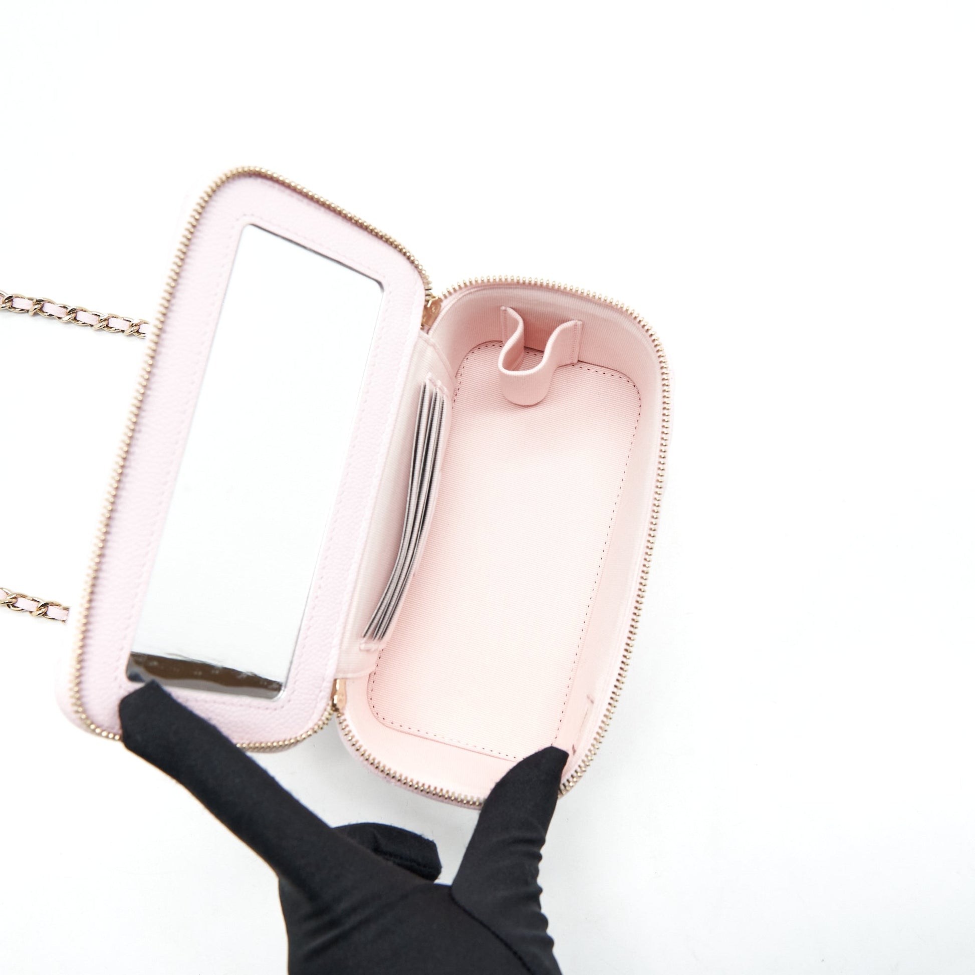 Chanel 22P Long Vanity Case With Logo Chain Caviar Light Pink LGHW