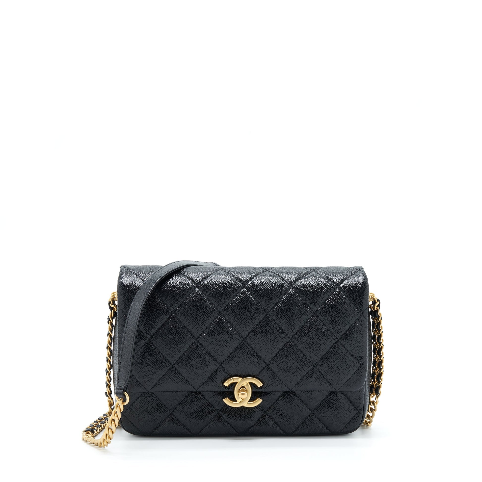 Chanel 22P Medium Melody Bag Grained Calfskin Black GHW (Microchip)