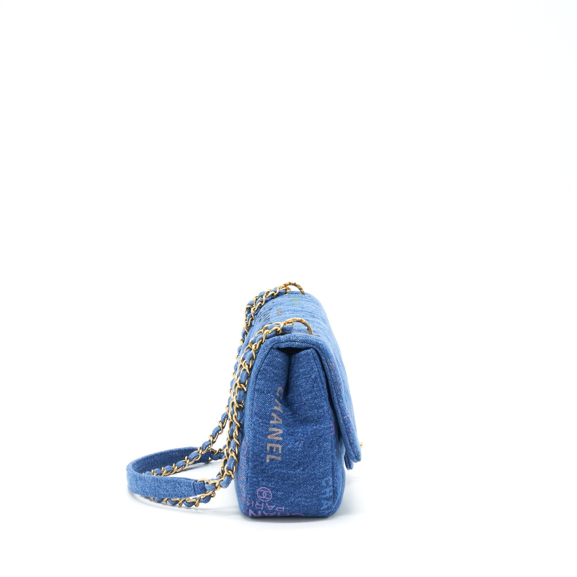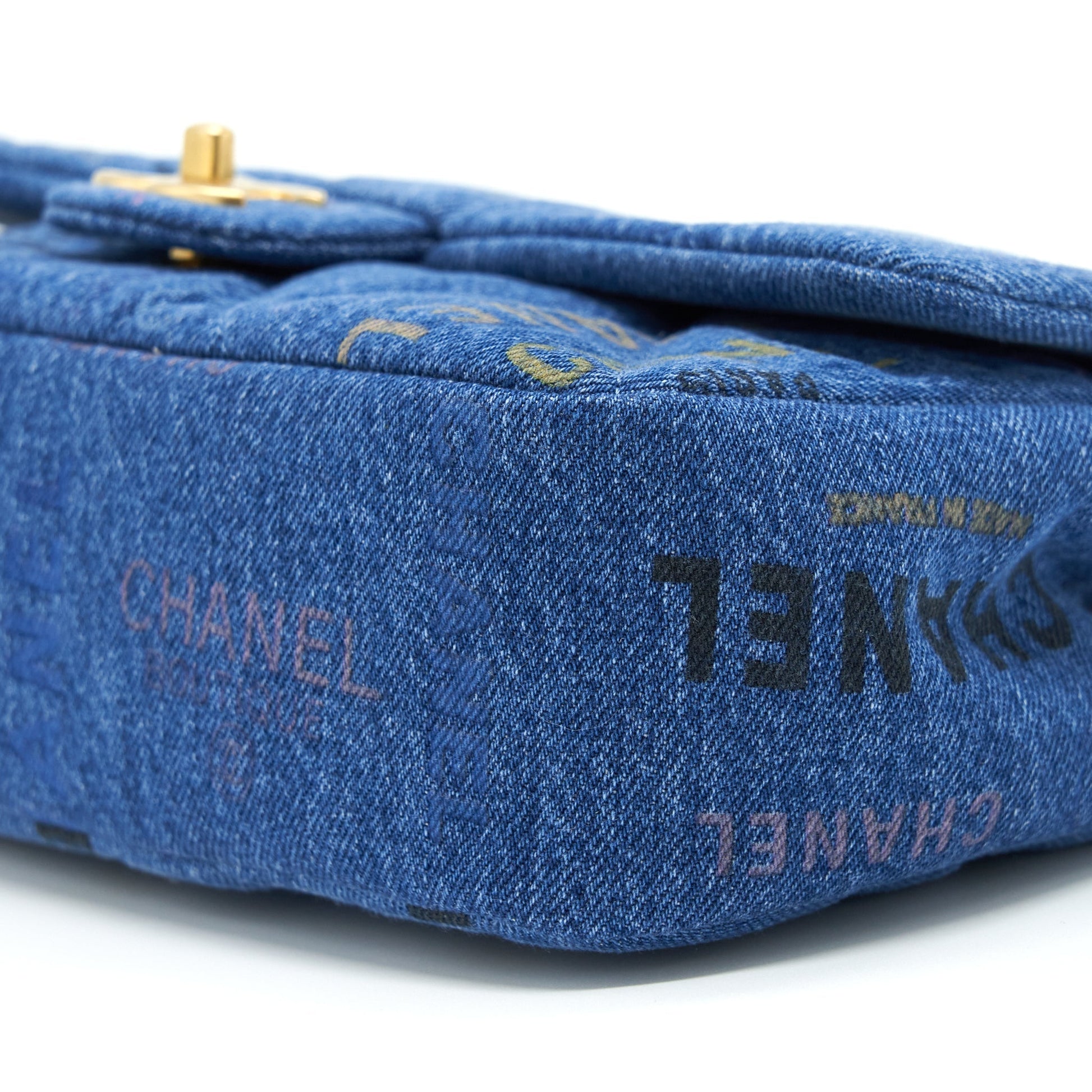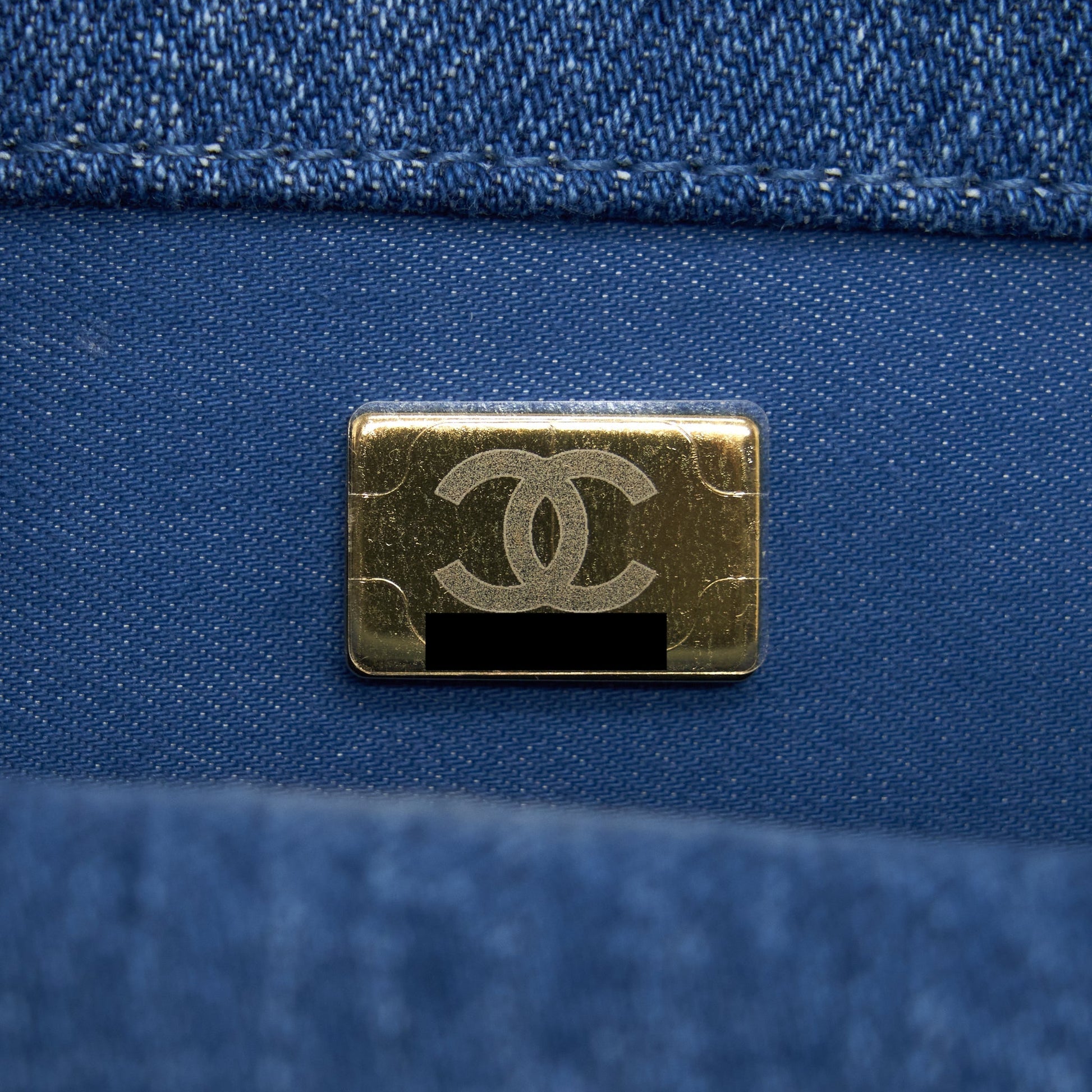 Chanel 22P Multicolor Denim Logo Flap Bag 28cm Blue GHW (Microchip)