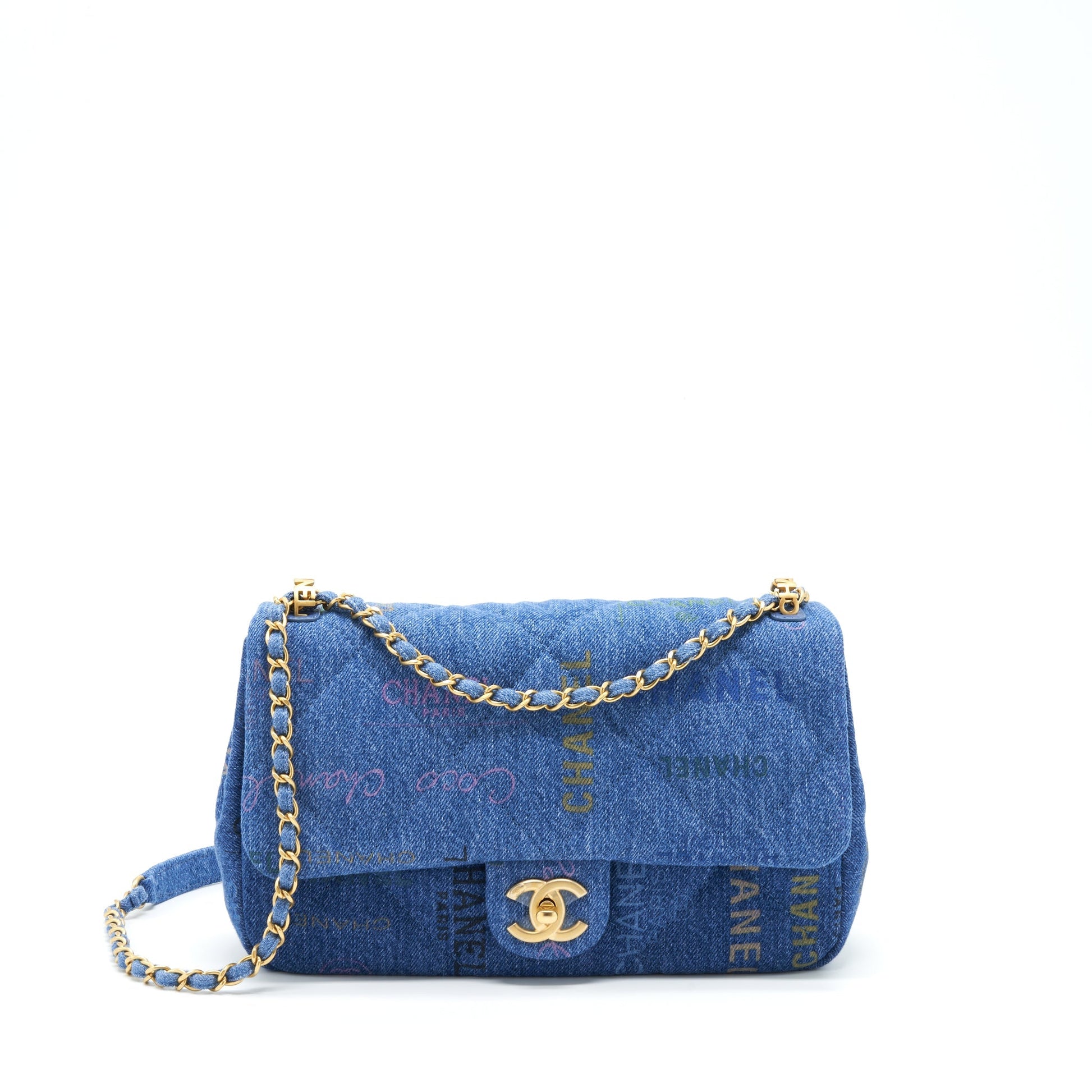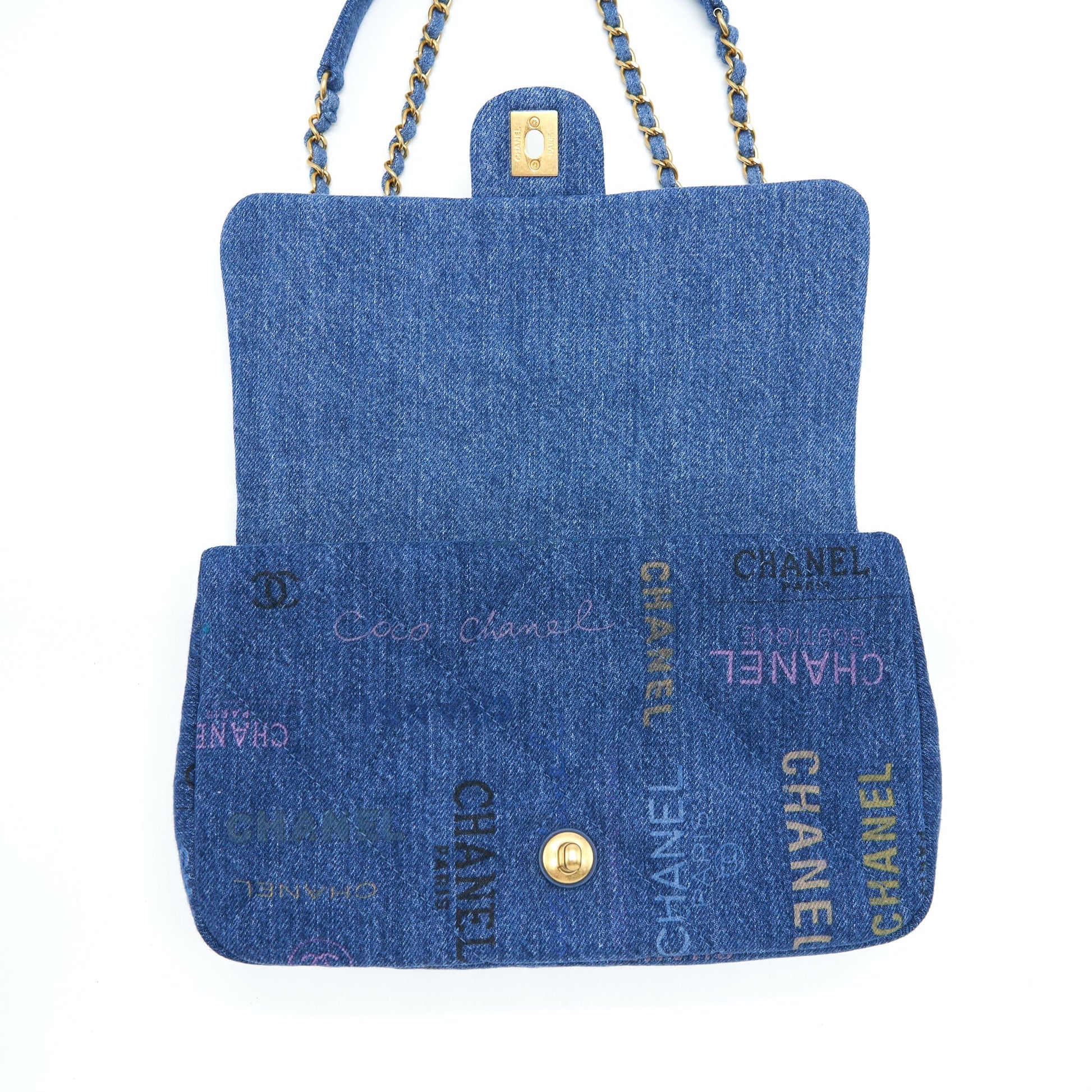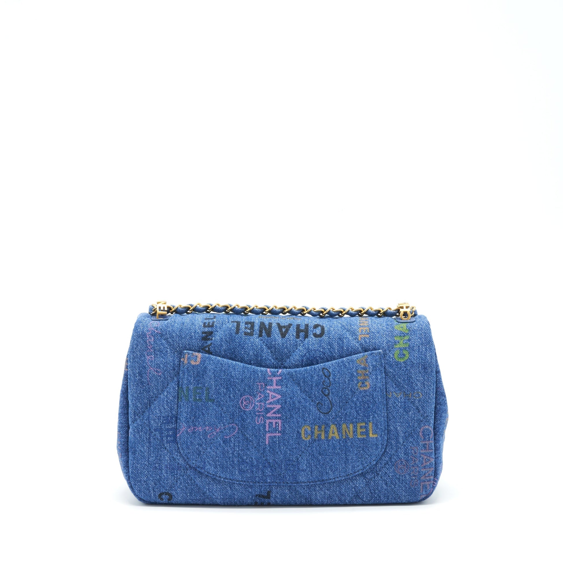 Chanel 22P Multicolor Denim Logo Flap Bag 28cm Blue GHW (Microchip)