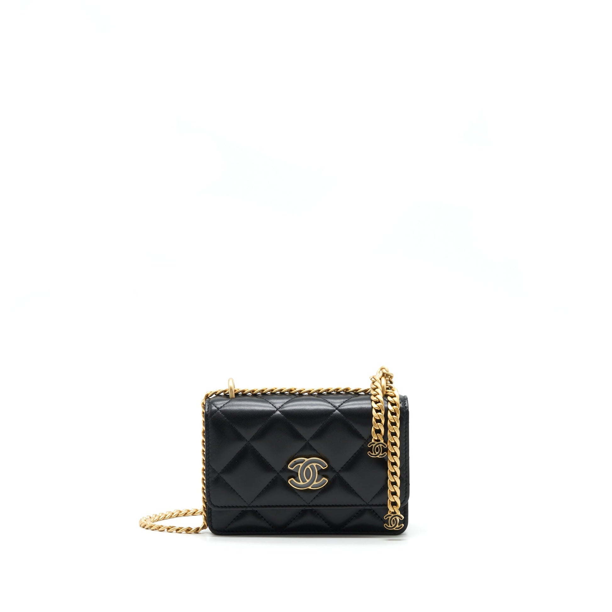 Chanel 22P Seasonal Mini Flap Bag Lambskin Black With Gold/ Black Hardware
