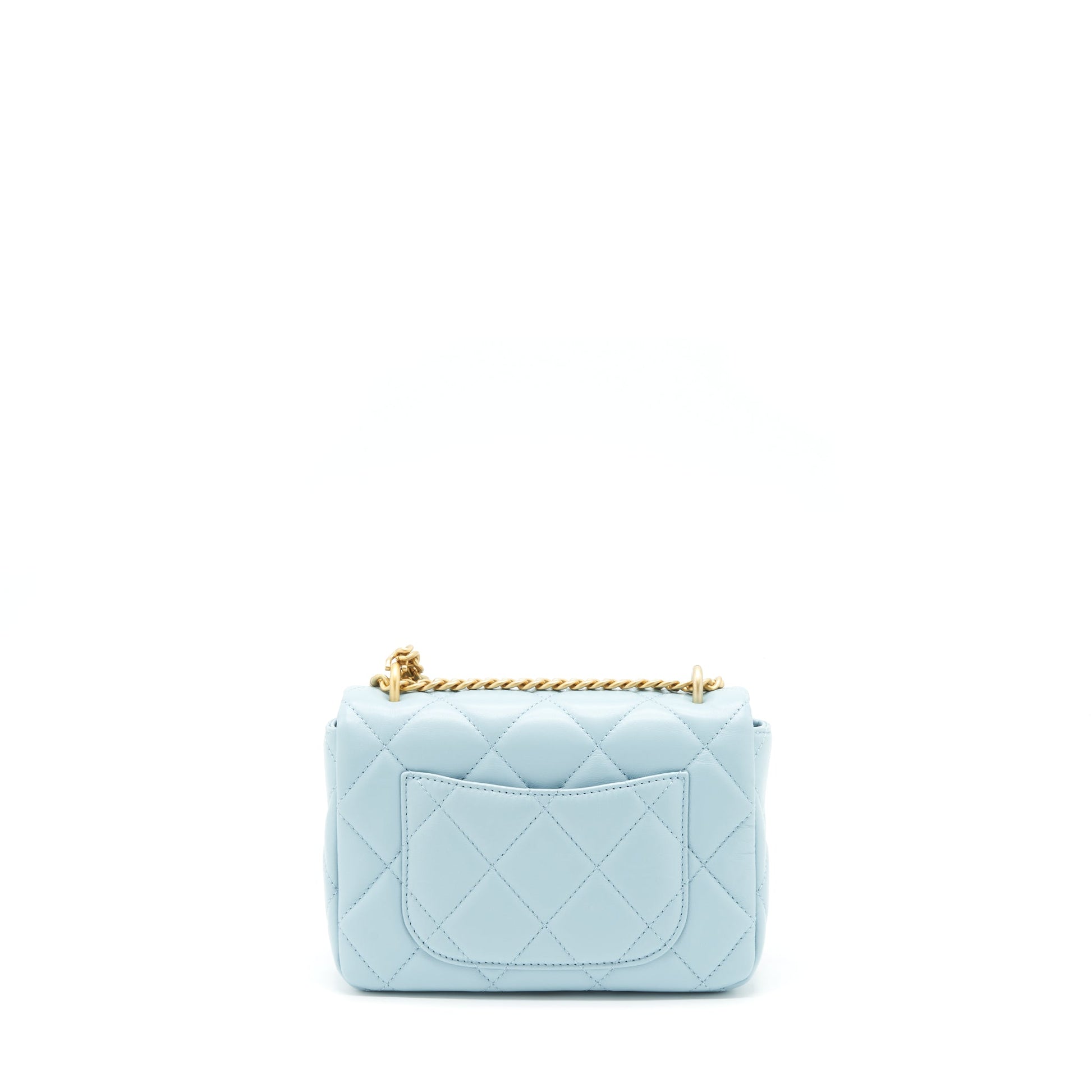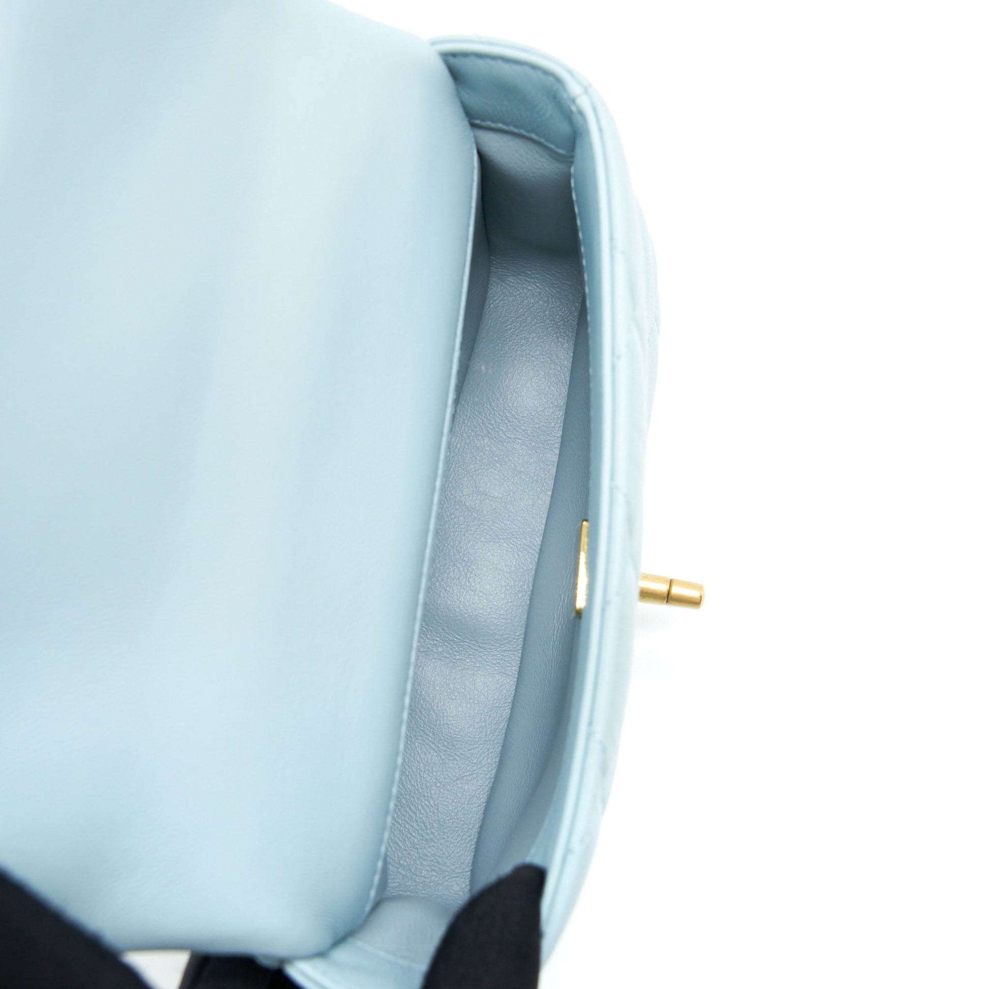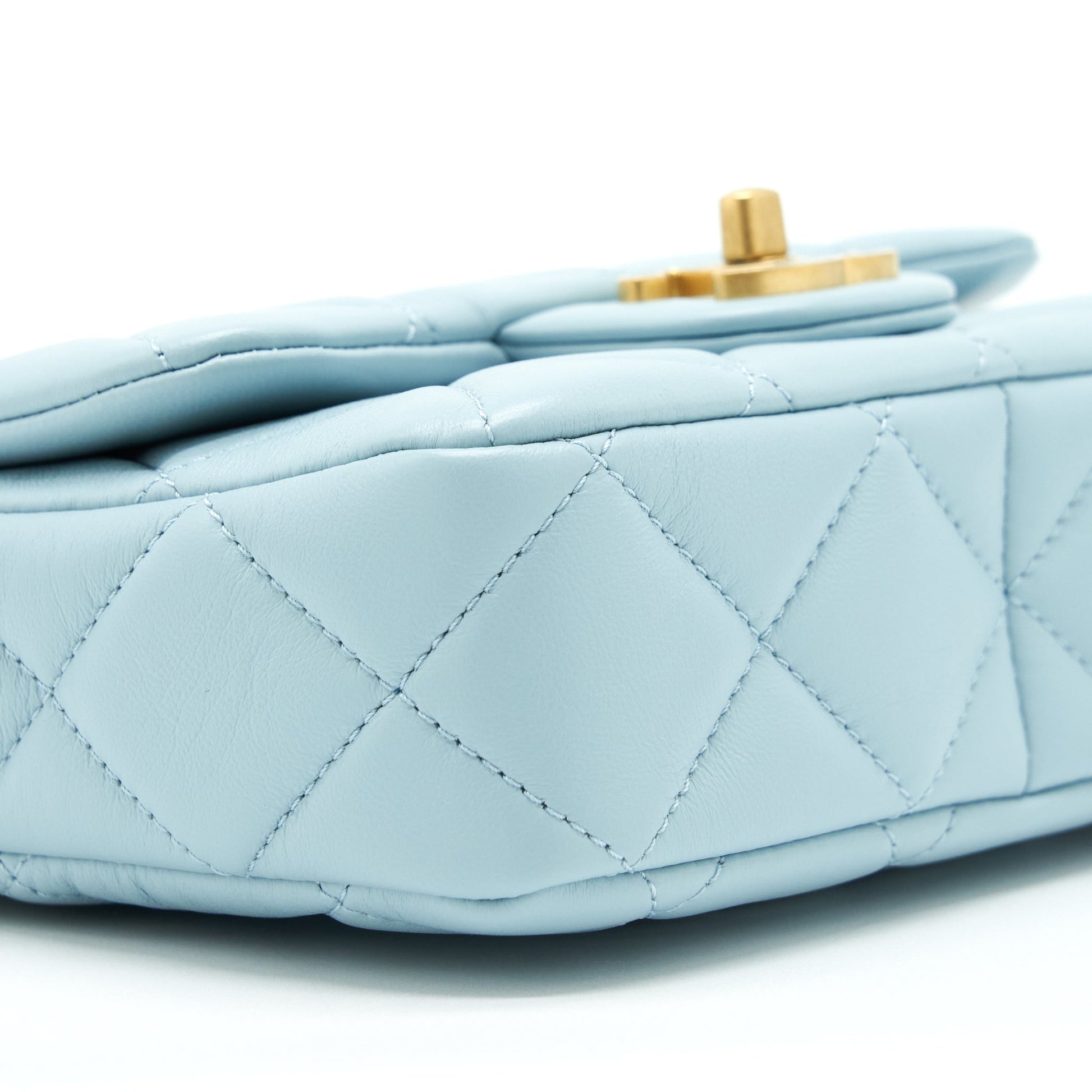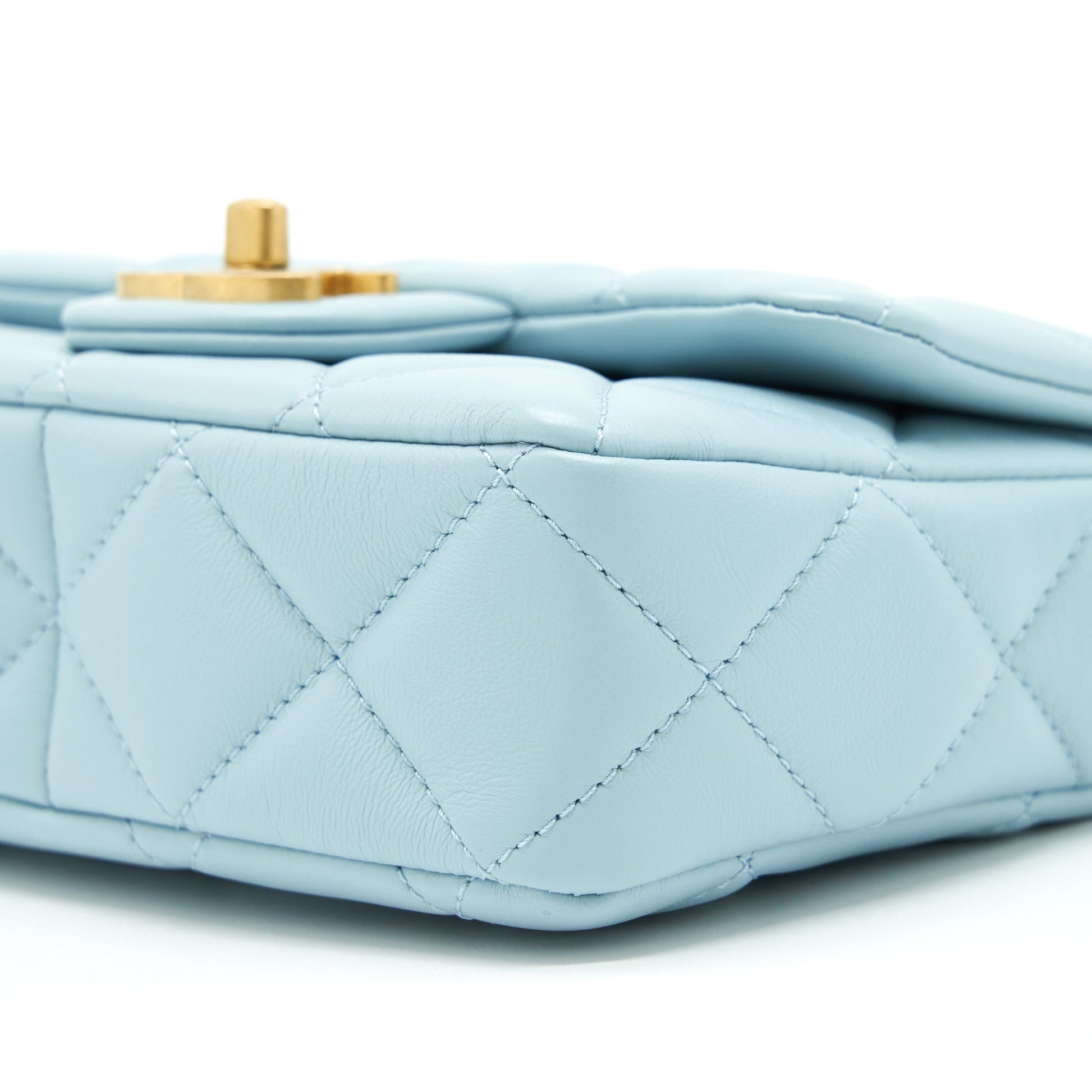 Chanel 22P Seasonal Mini Square Flap Bag Lambskin Light Blue GHW