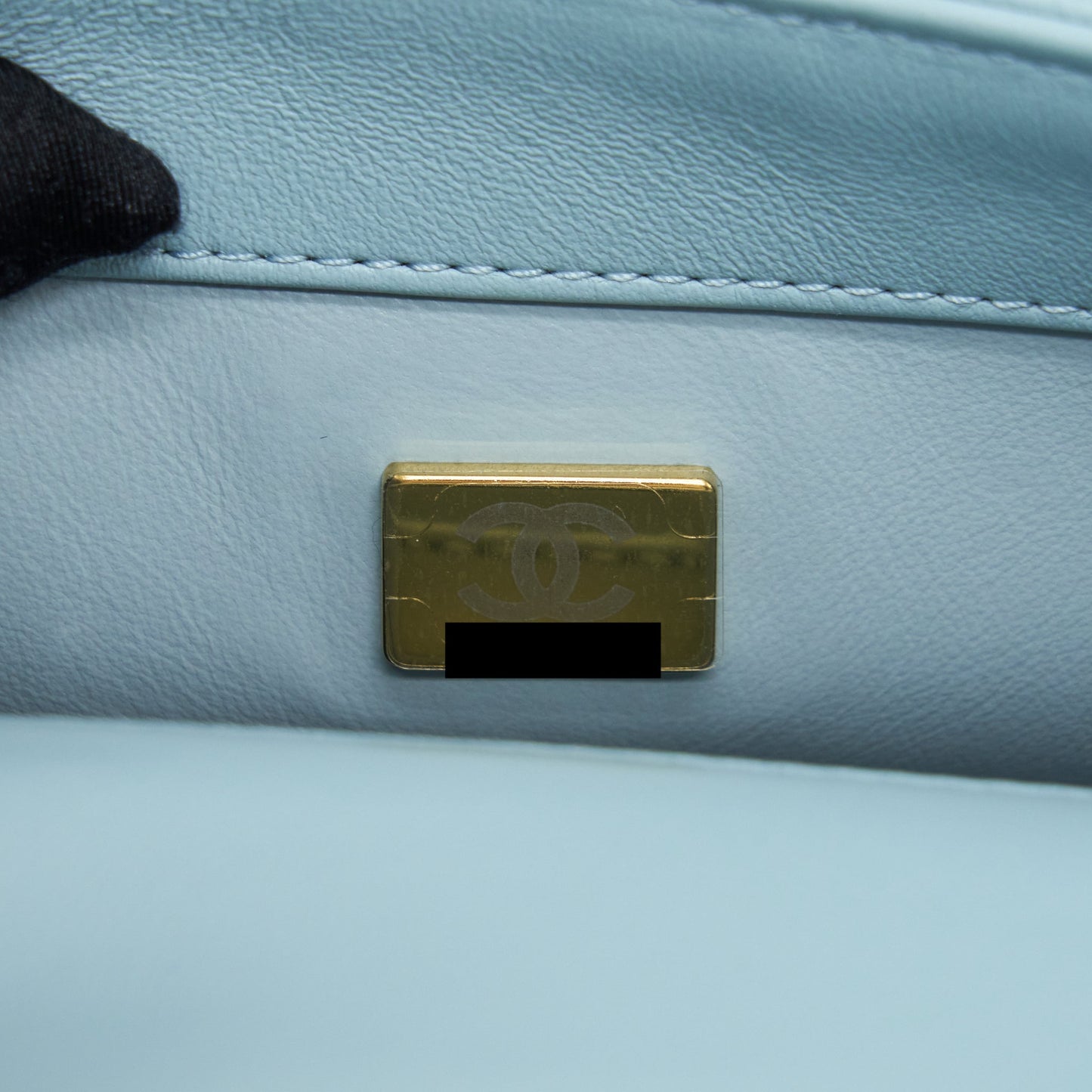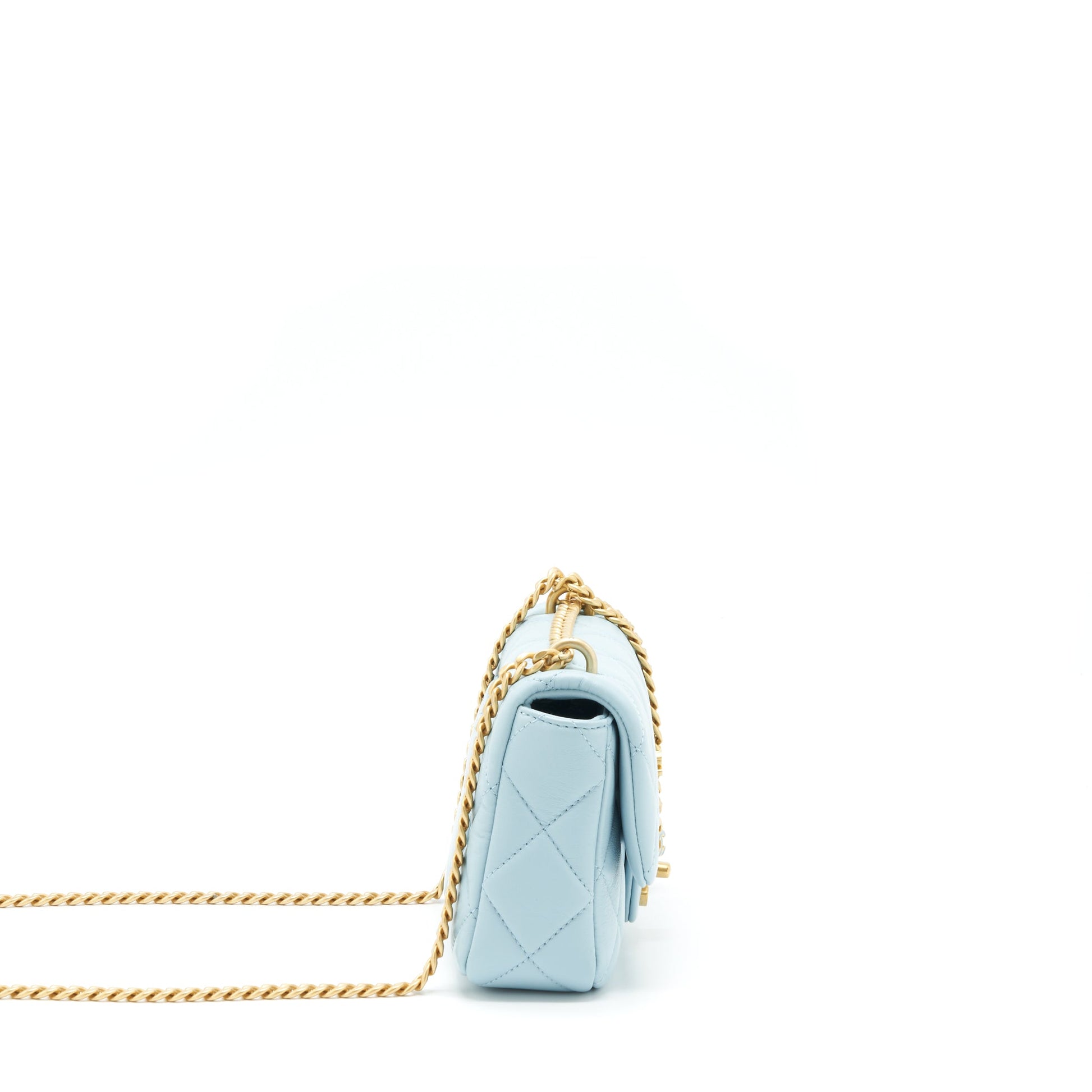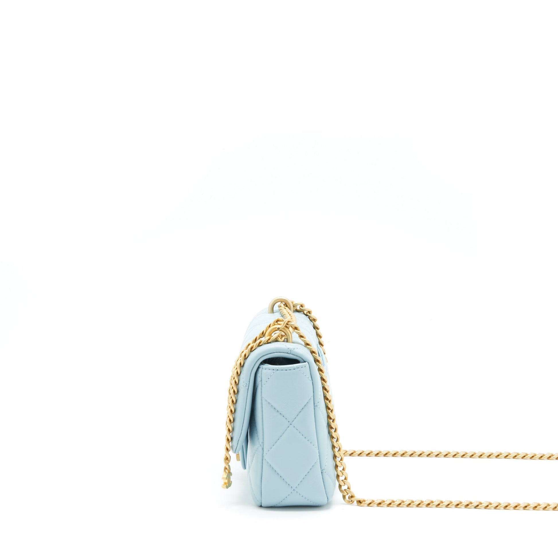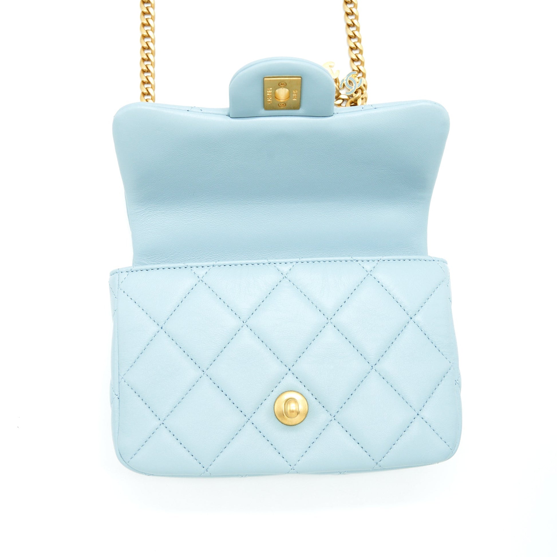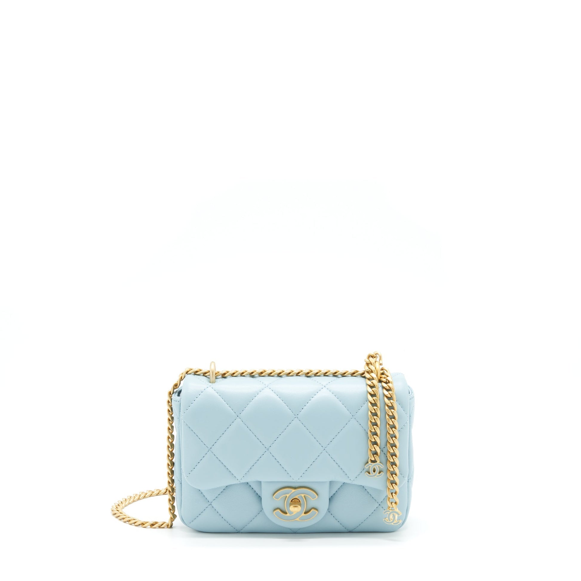 Chanel 22P Seasonal Mini Square Flap Bag Lambskin Light Blue GHW