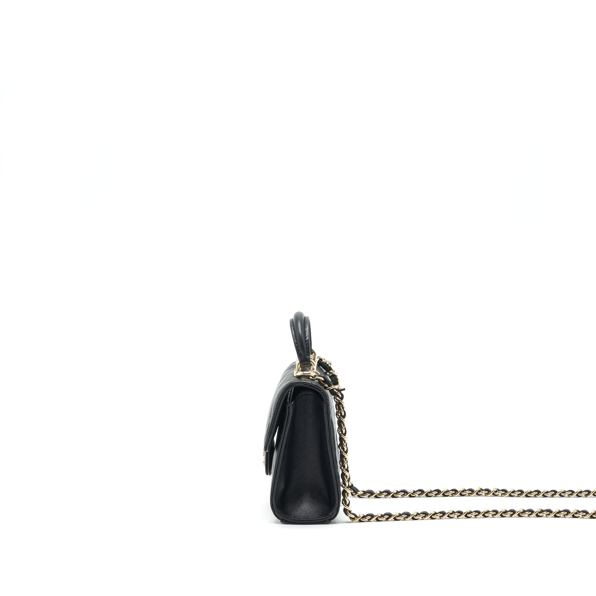 Chanel 22P Top Handle Mini Flap Bag With Chain Lambskin Black LGHW