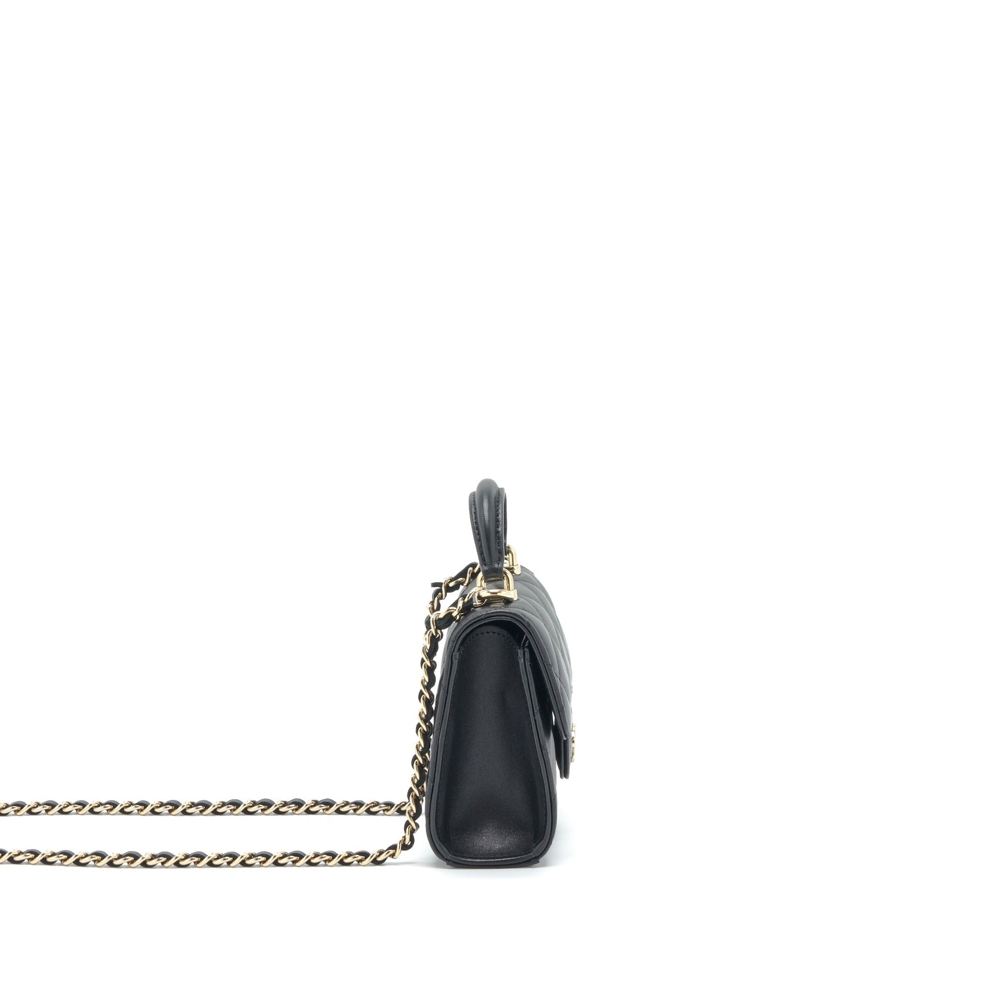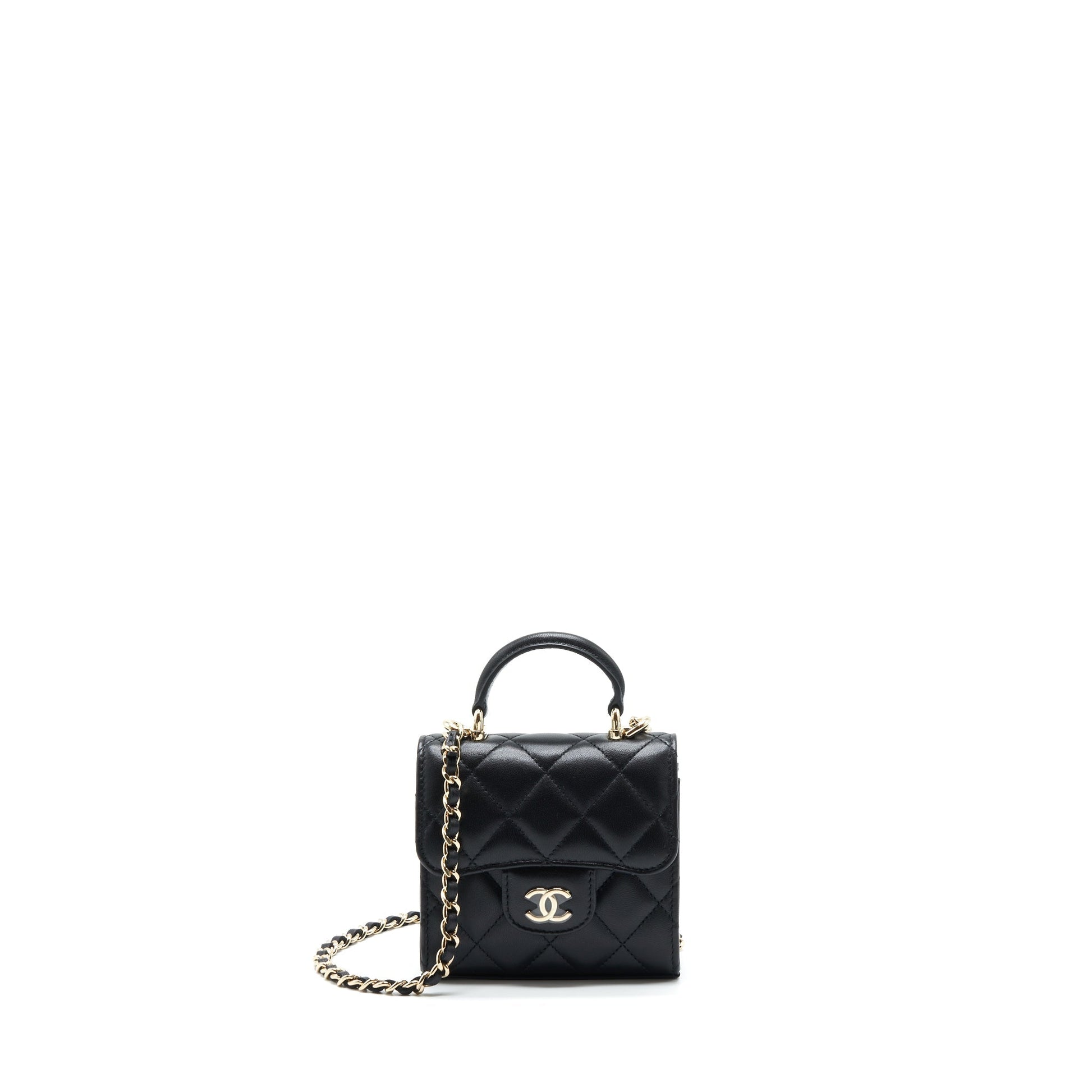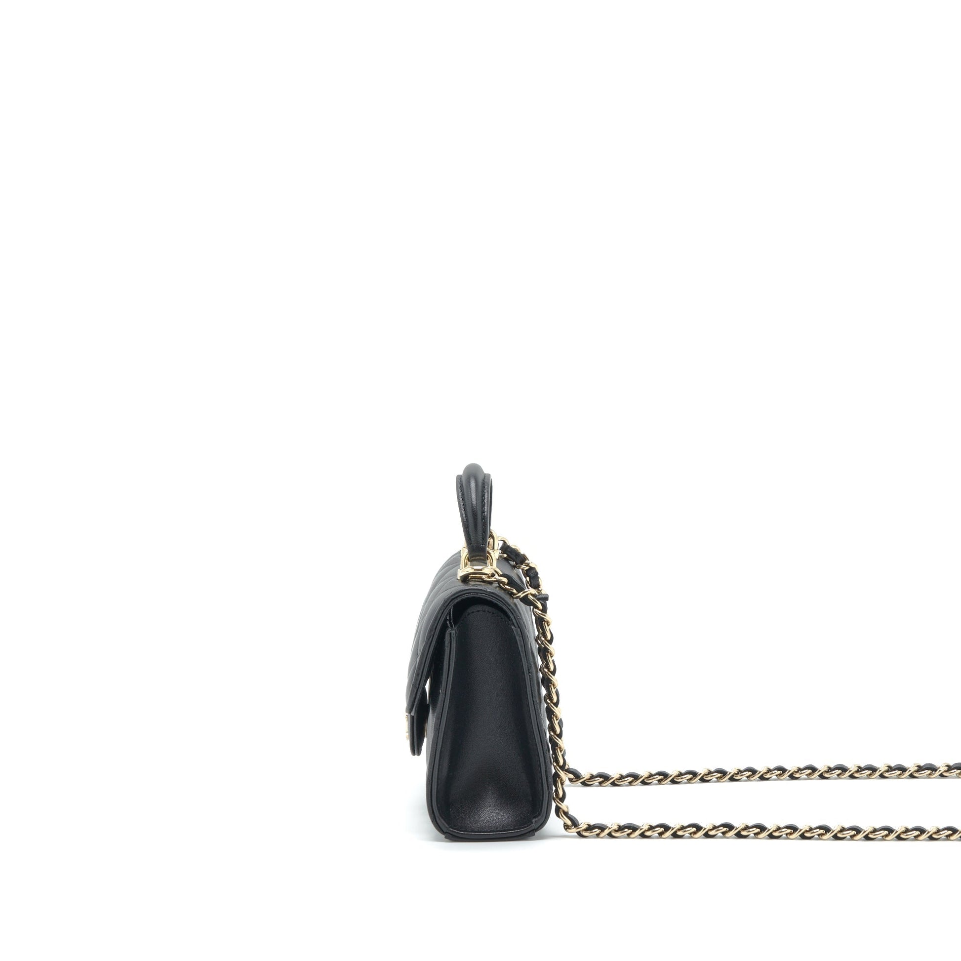 Chanel 22P Top Handle Mini Flap Bag With Chain Lambskin Black LGHW