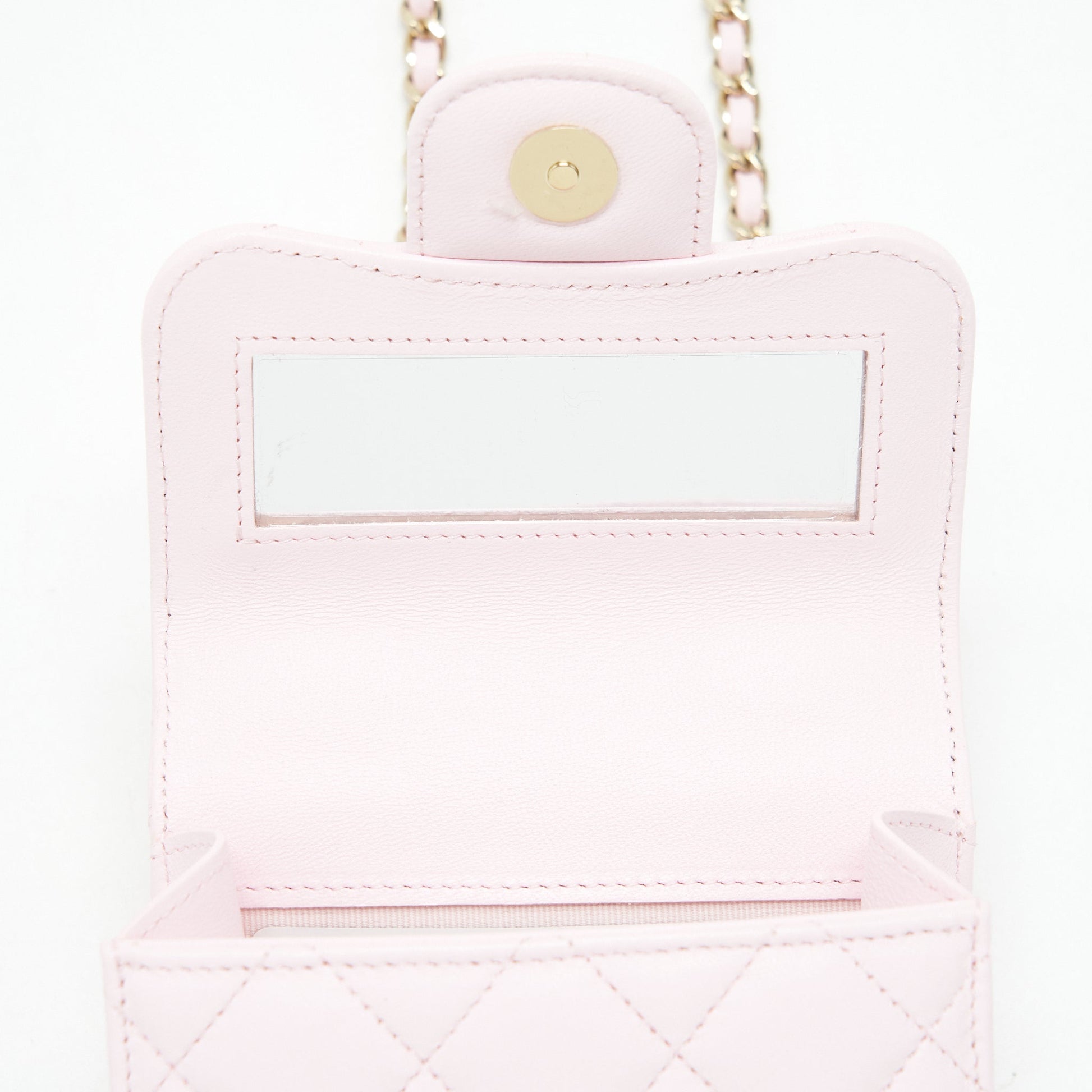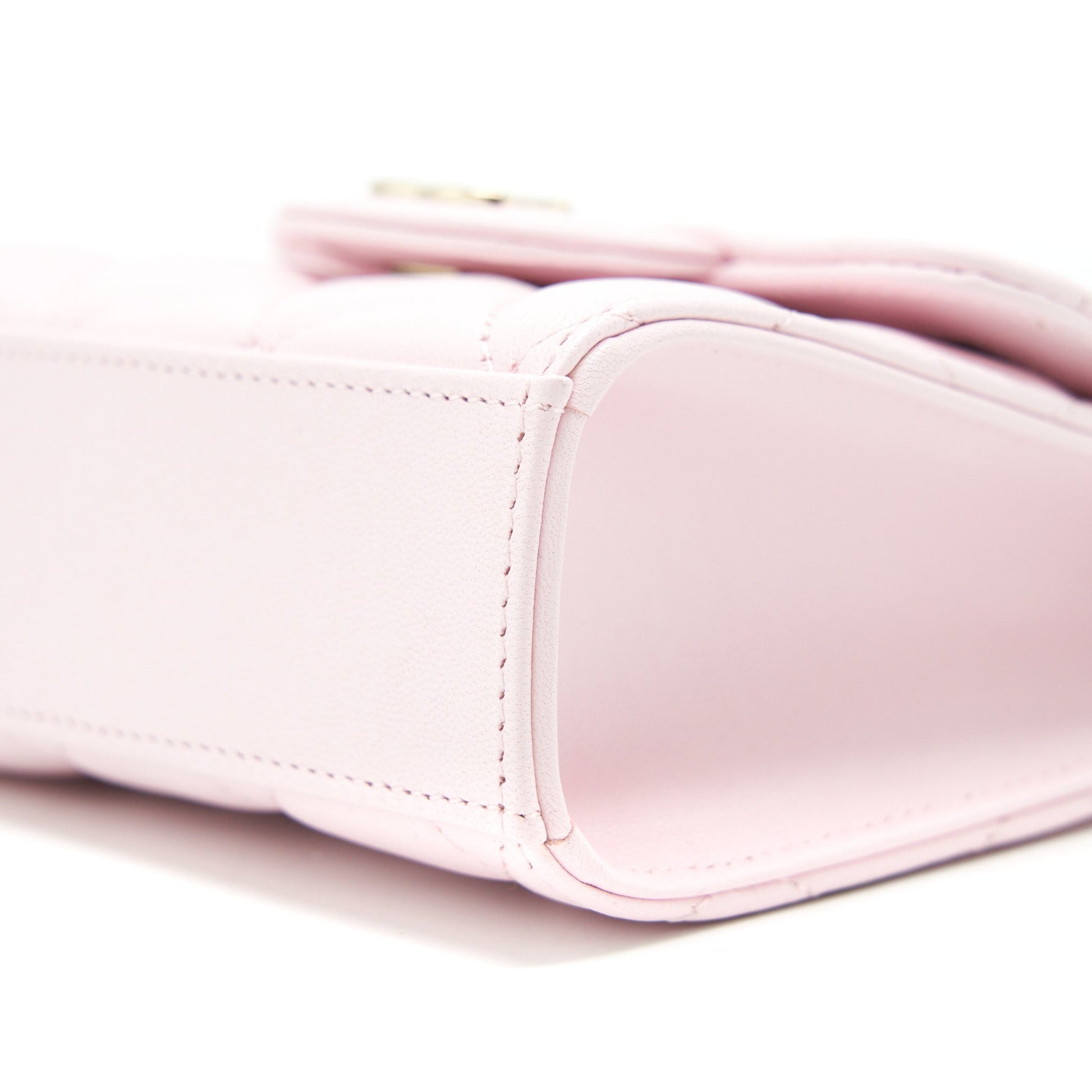Chanel 22P Top Handle Mini Flap Bag With Chain Lambskin Pink LGHW