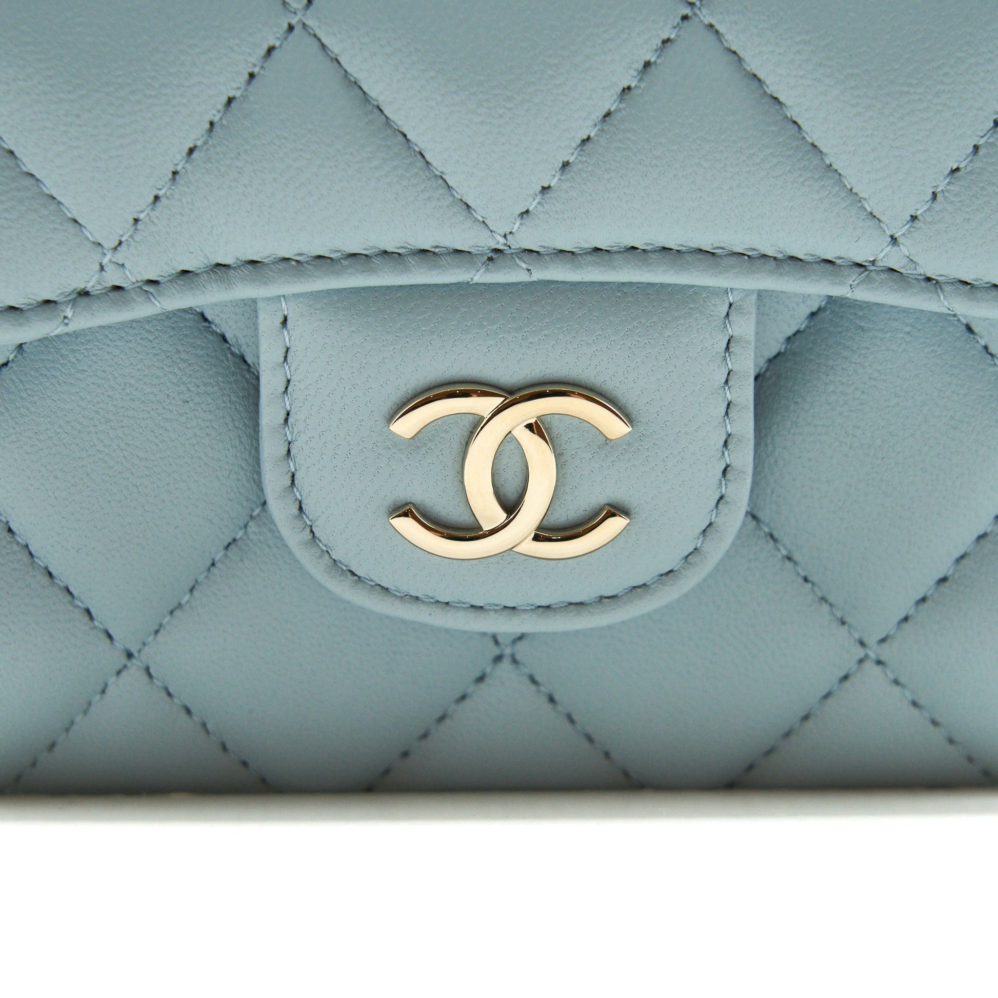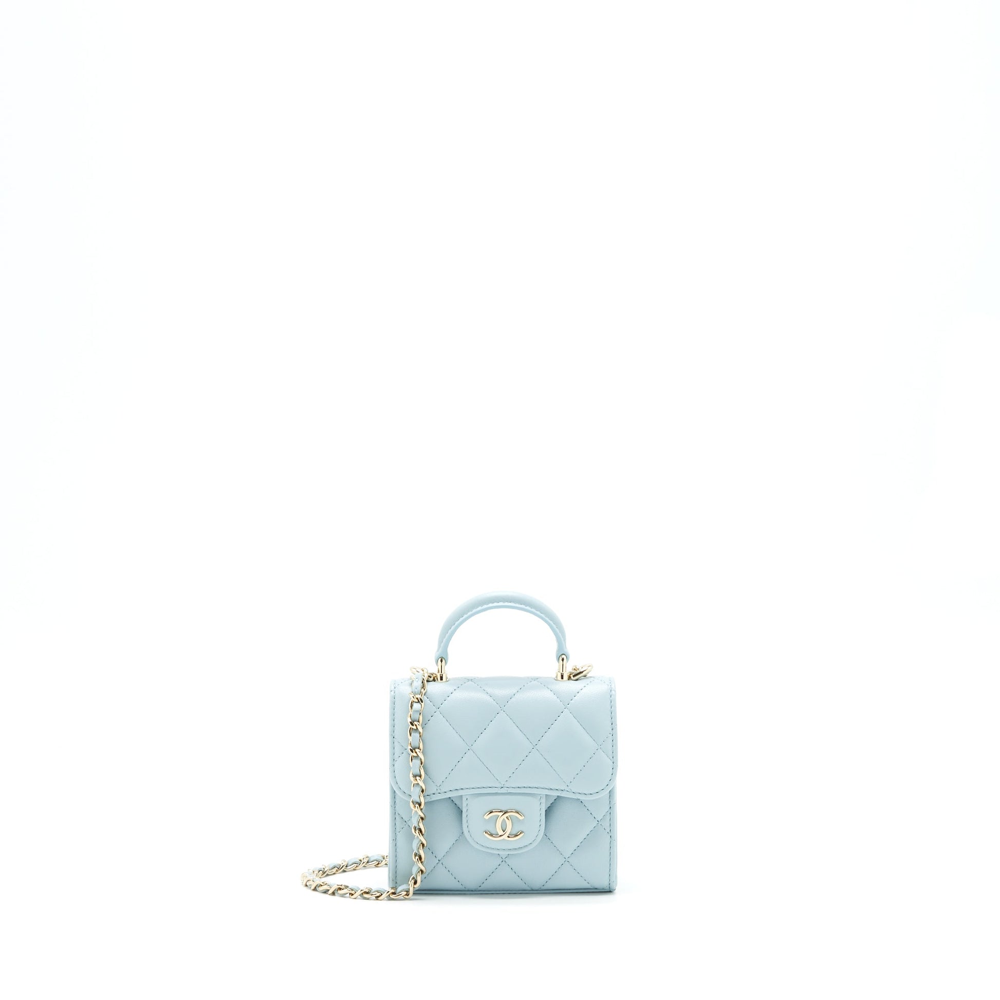 Chanel 22P top Handle Mini Vanity on Chain Lambskin light blue LGHW