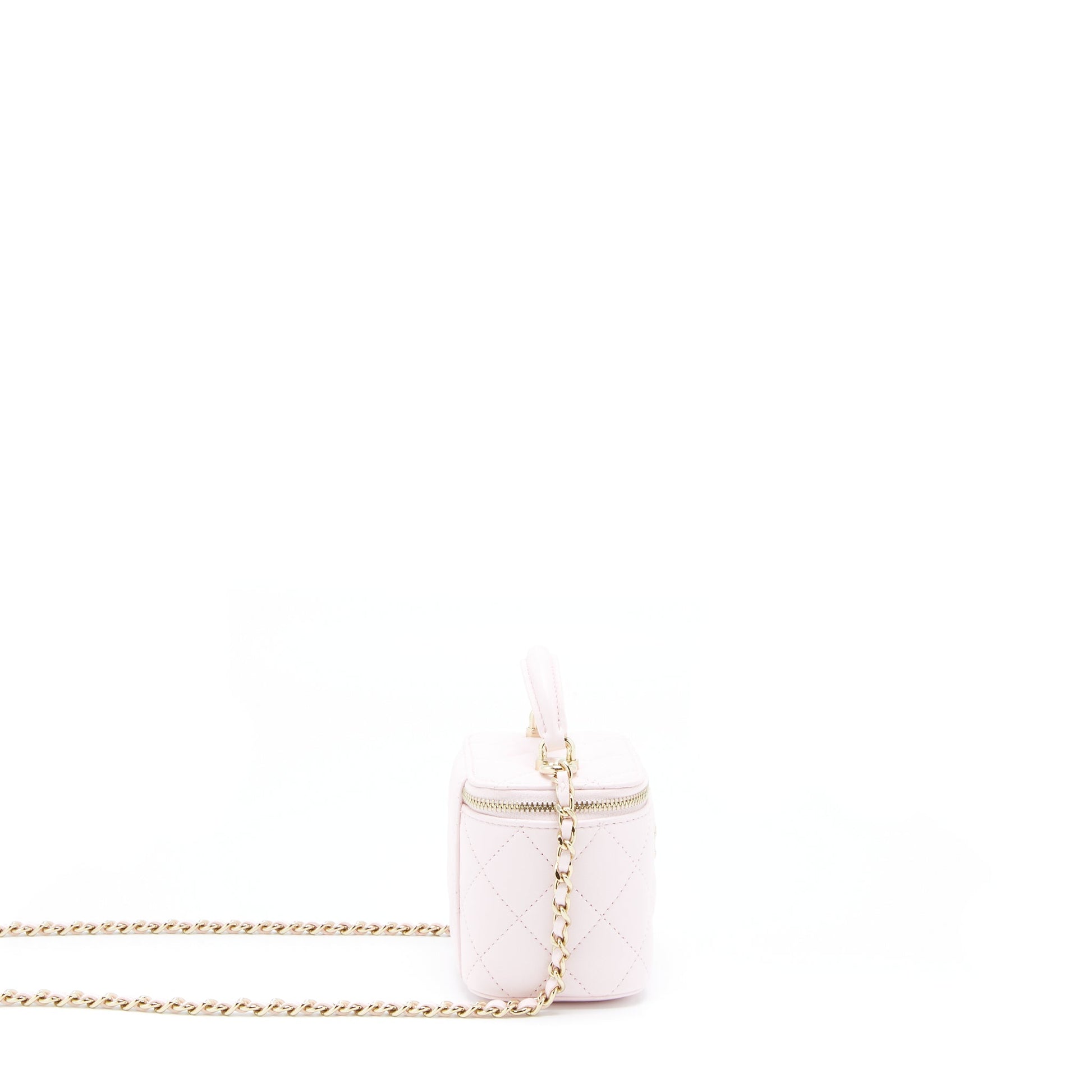Chanel 22P Top Handle Mini Vanity With Chain Lambskin Light Pink LGHW