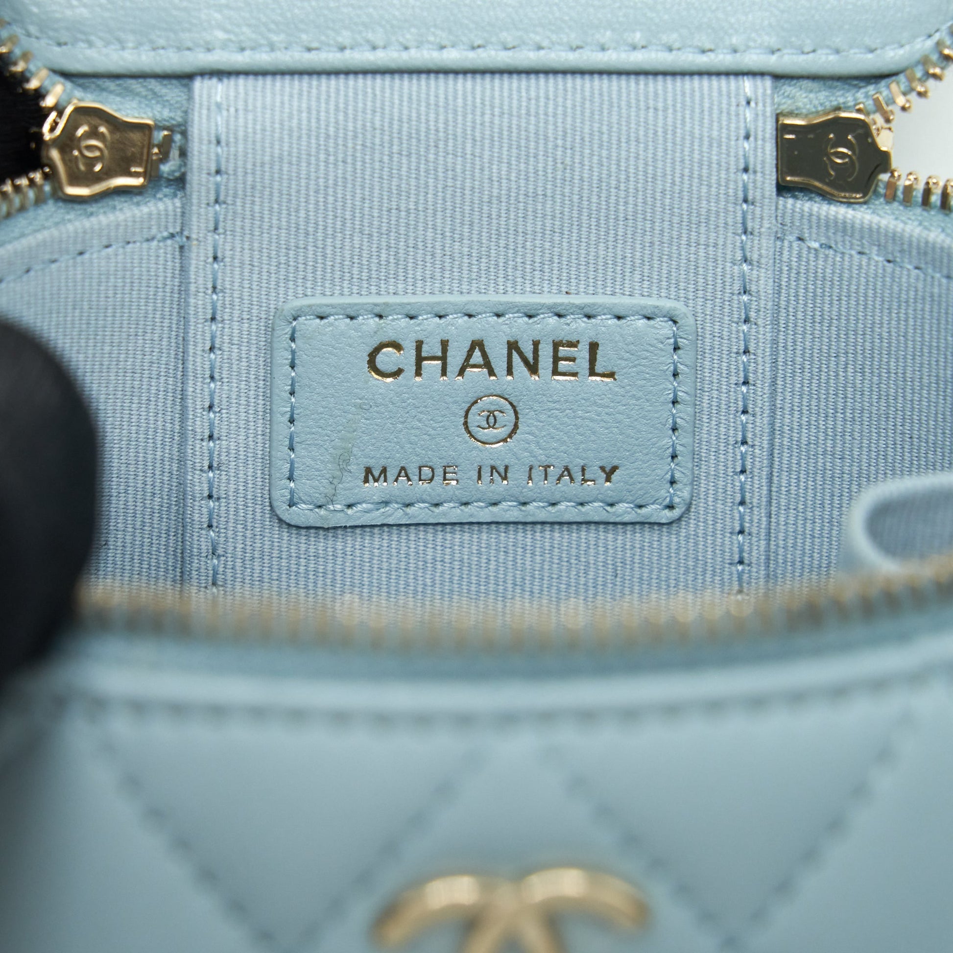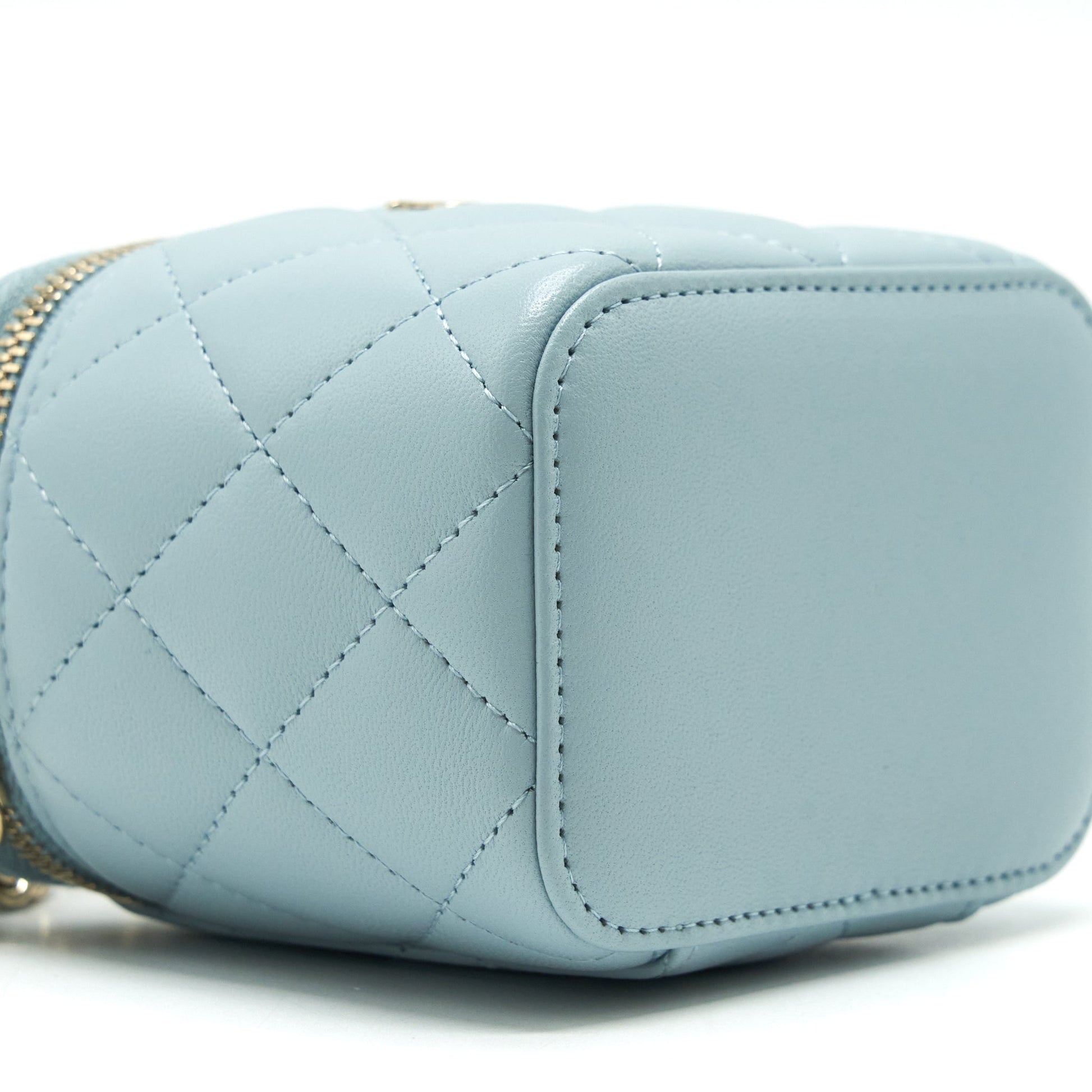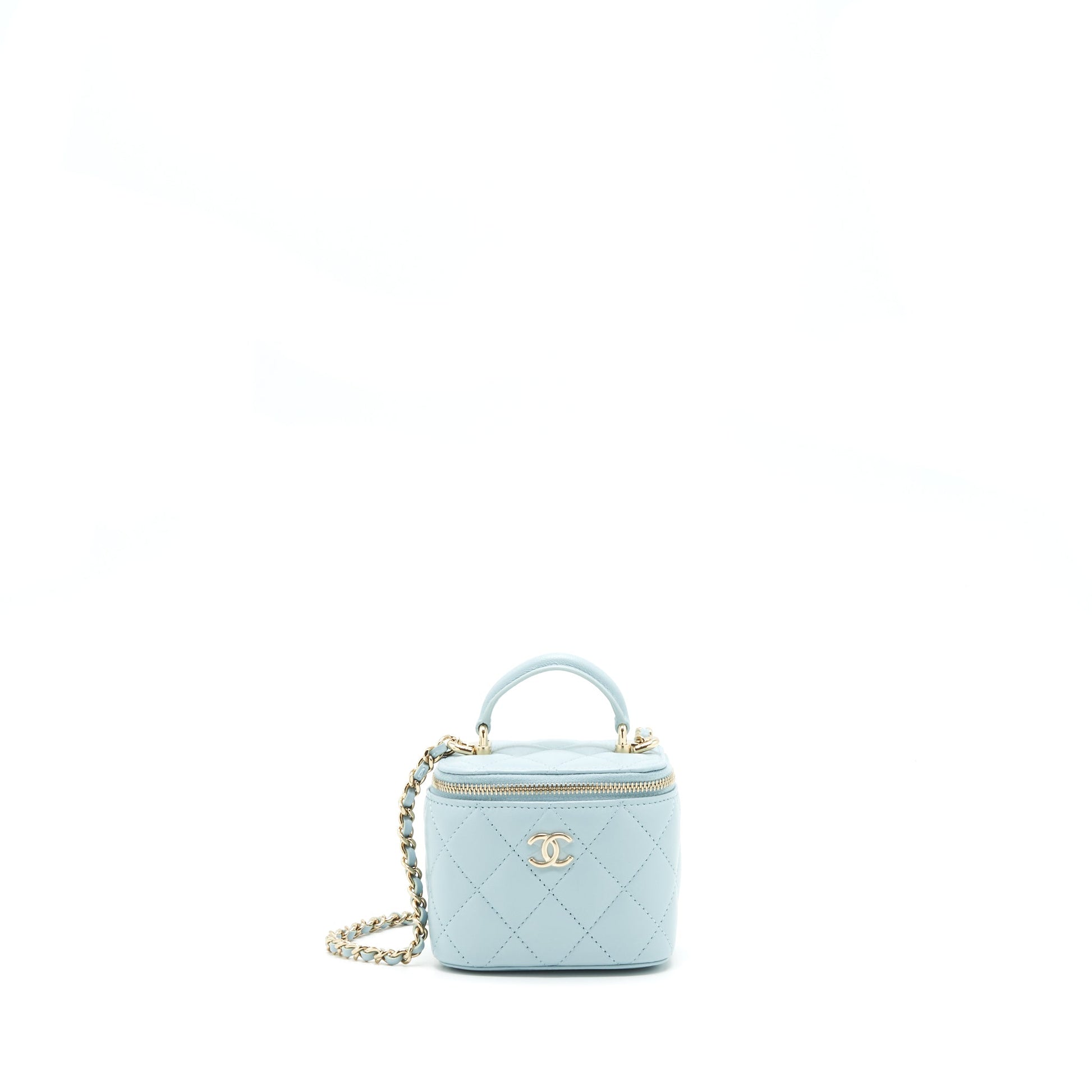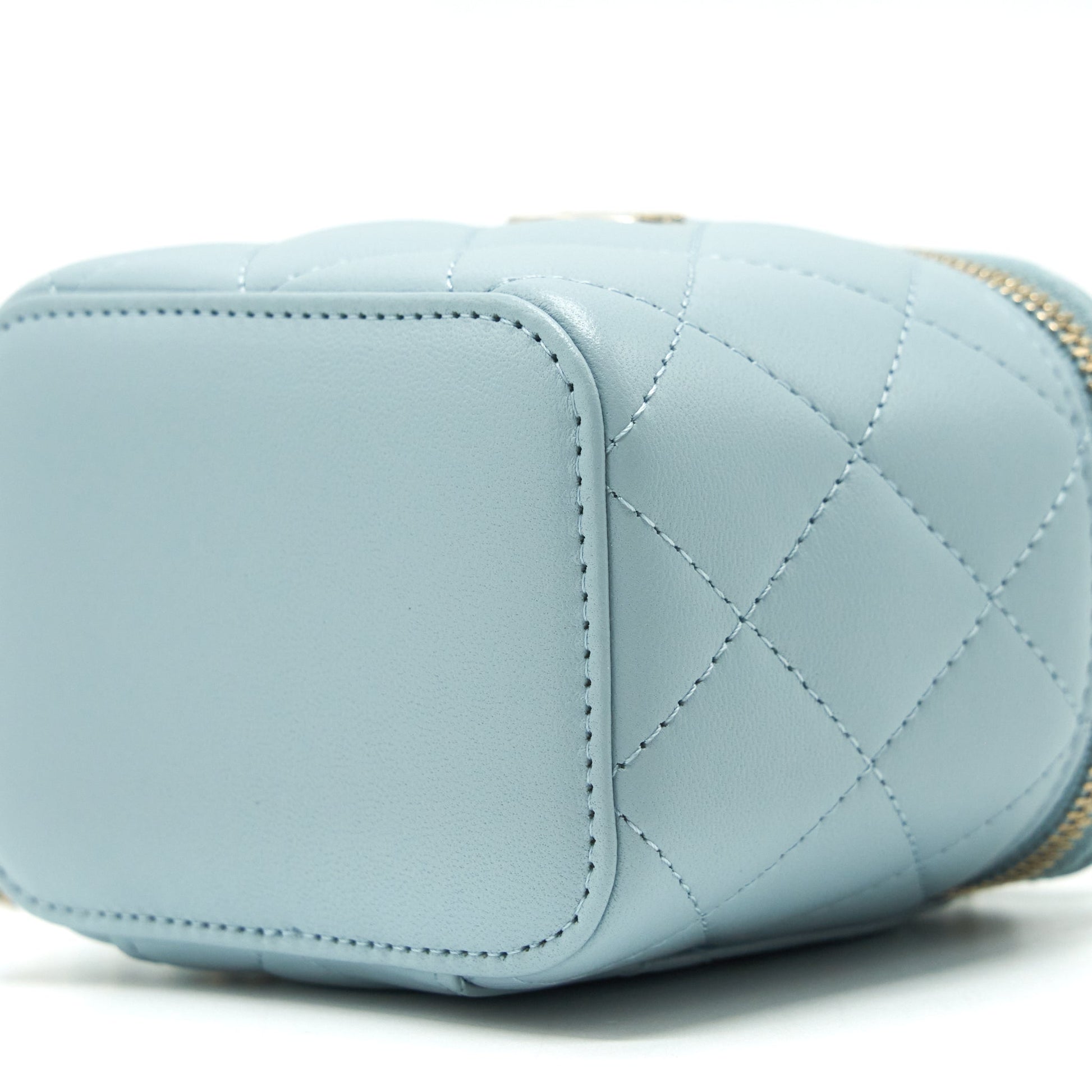 Chanel 22P Top Handle Mini Vanity With Chain Lambskin NG752 Light Blue LGHW